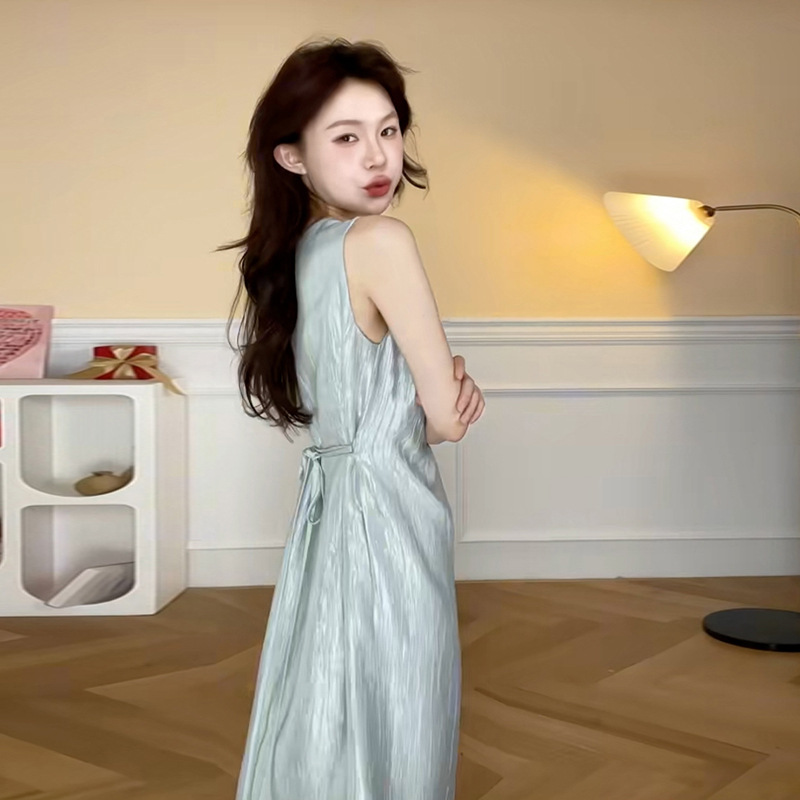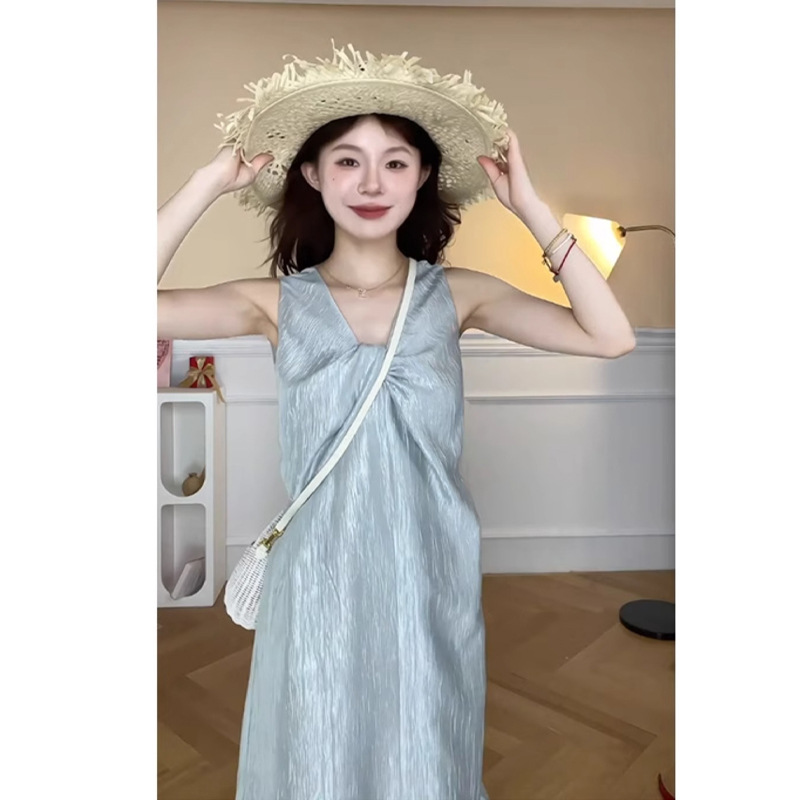 Женское платье-камзол без рукавов в французском стиле, новинка лета 2025 года, длинное платье для миниатюрных размеров, пляжный отдых.