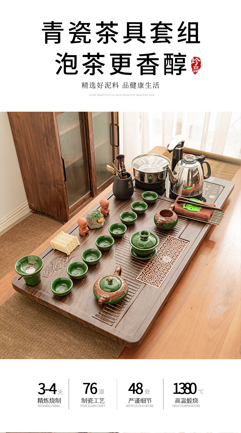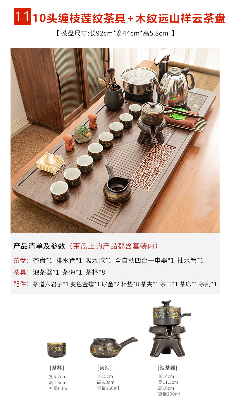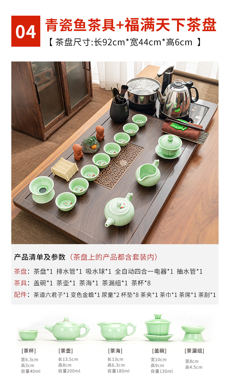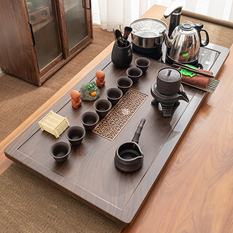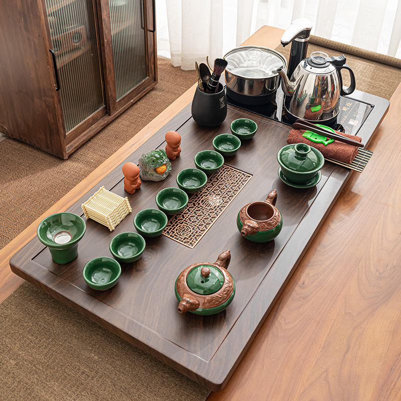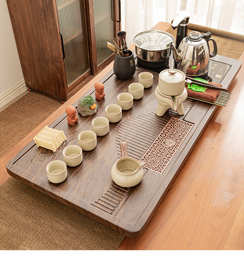 Полный набор полностью автоматического чайного сервиза кунг-фу для дома, гостиной, чайный поднос, комбинированный чайный столик «четыре в одном», чайник, плита, чайный столик
