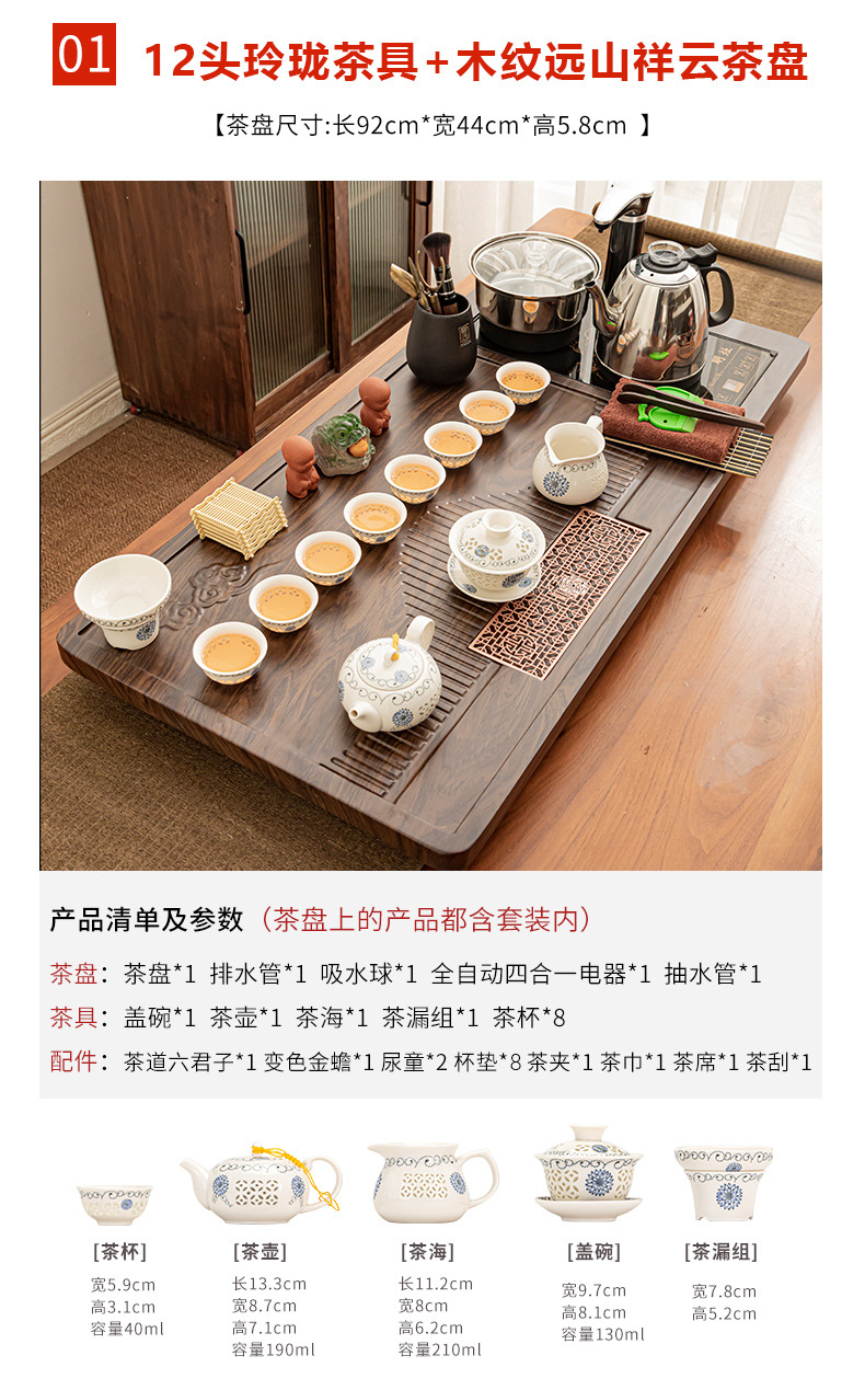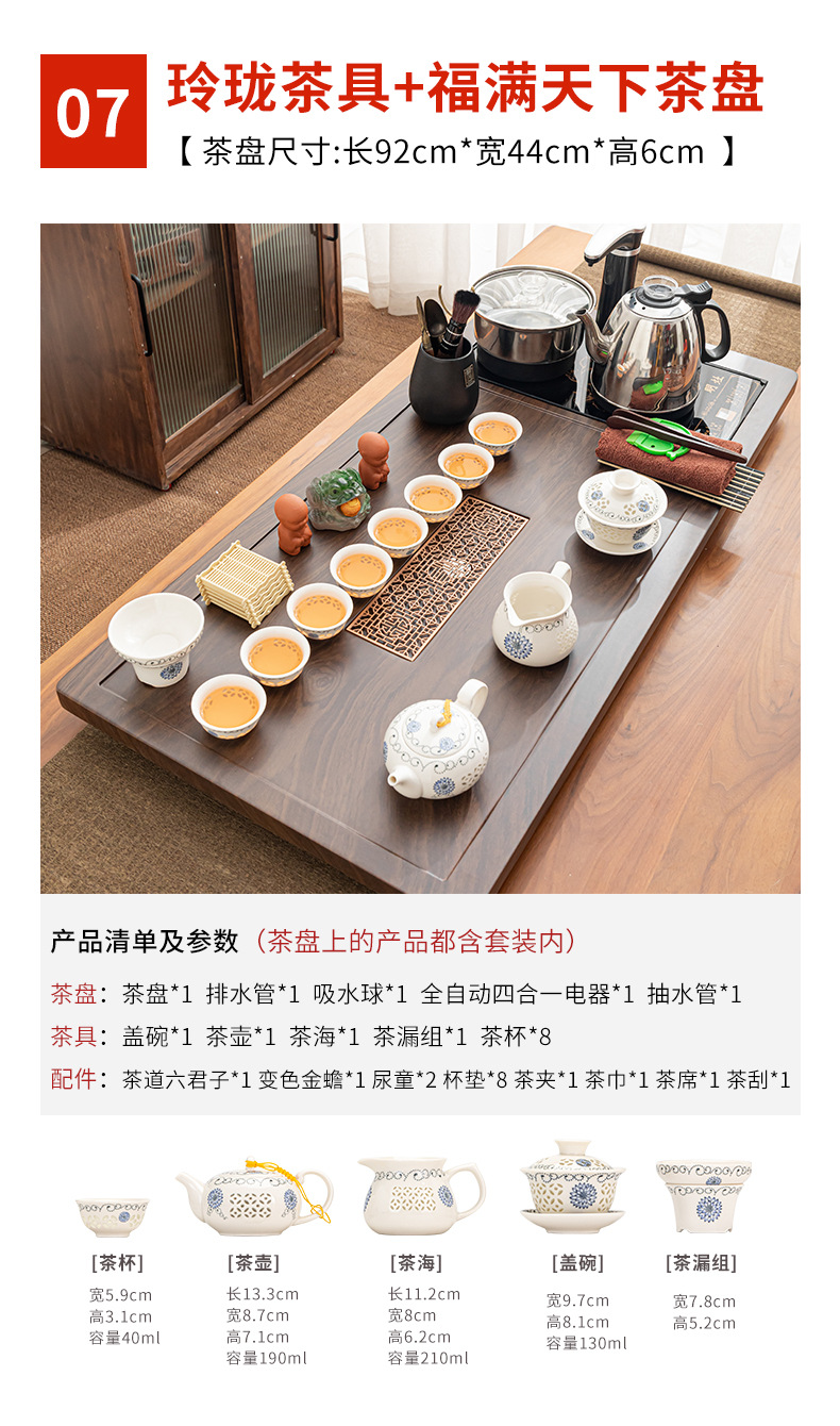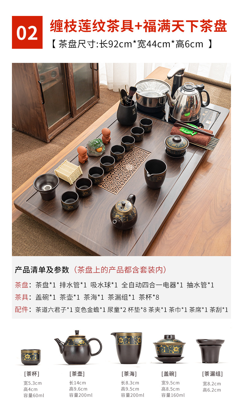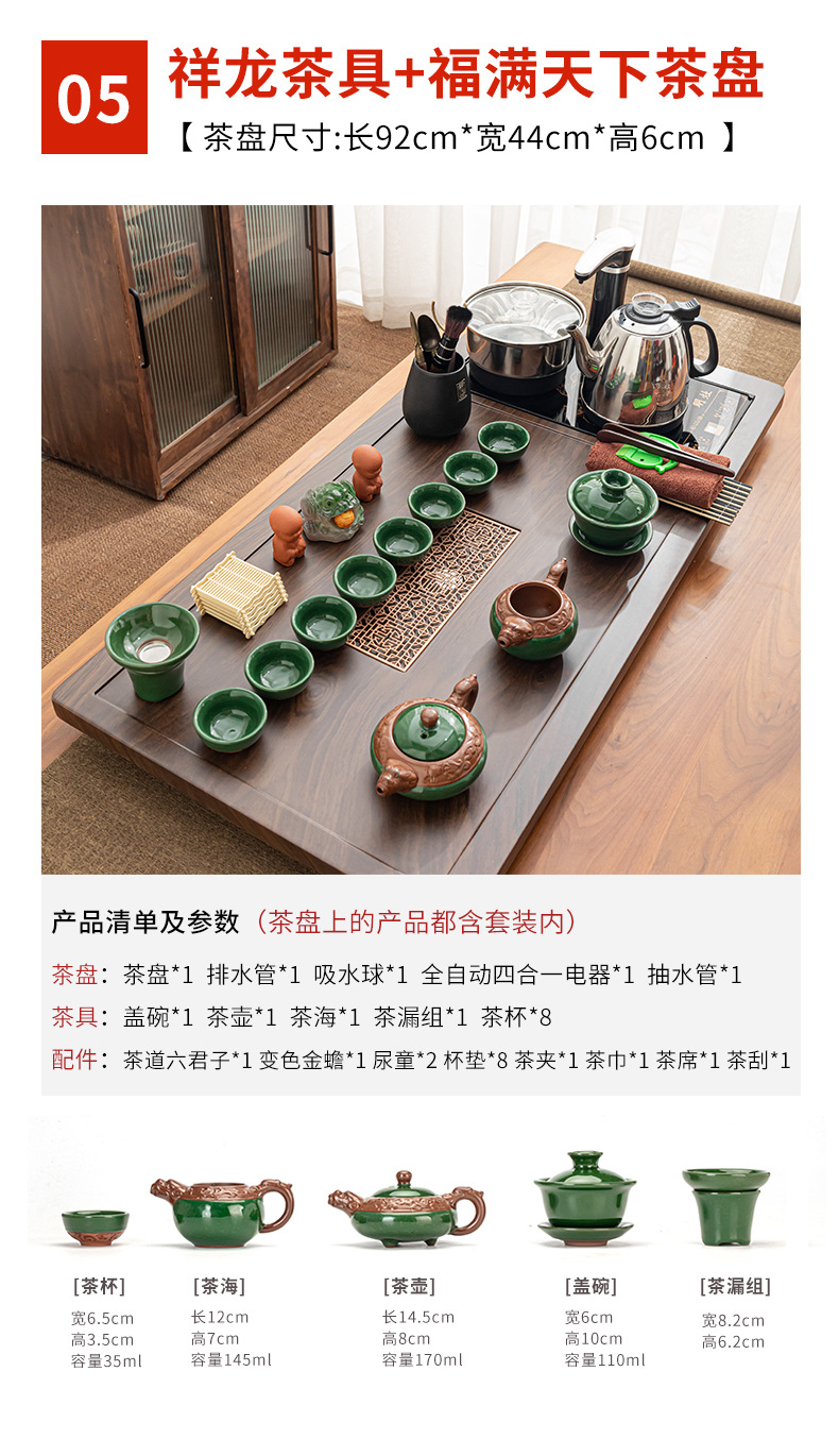 Полный набор полностью автоматического чайного сервиза кунг-фу для дома, гостиной, чайный поднос, комбинированный чайный столик «четыре в одном», чайник, плита, чайный столик