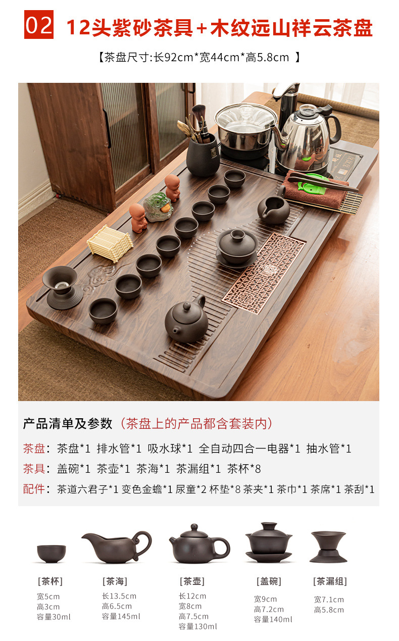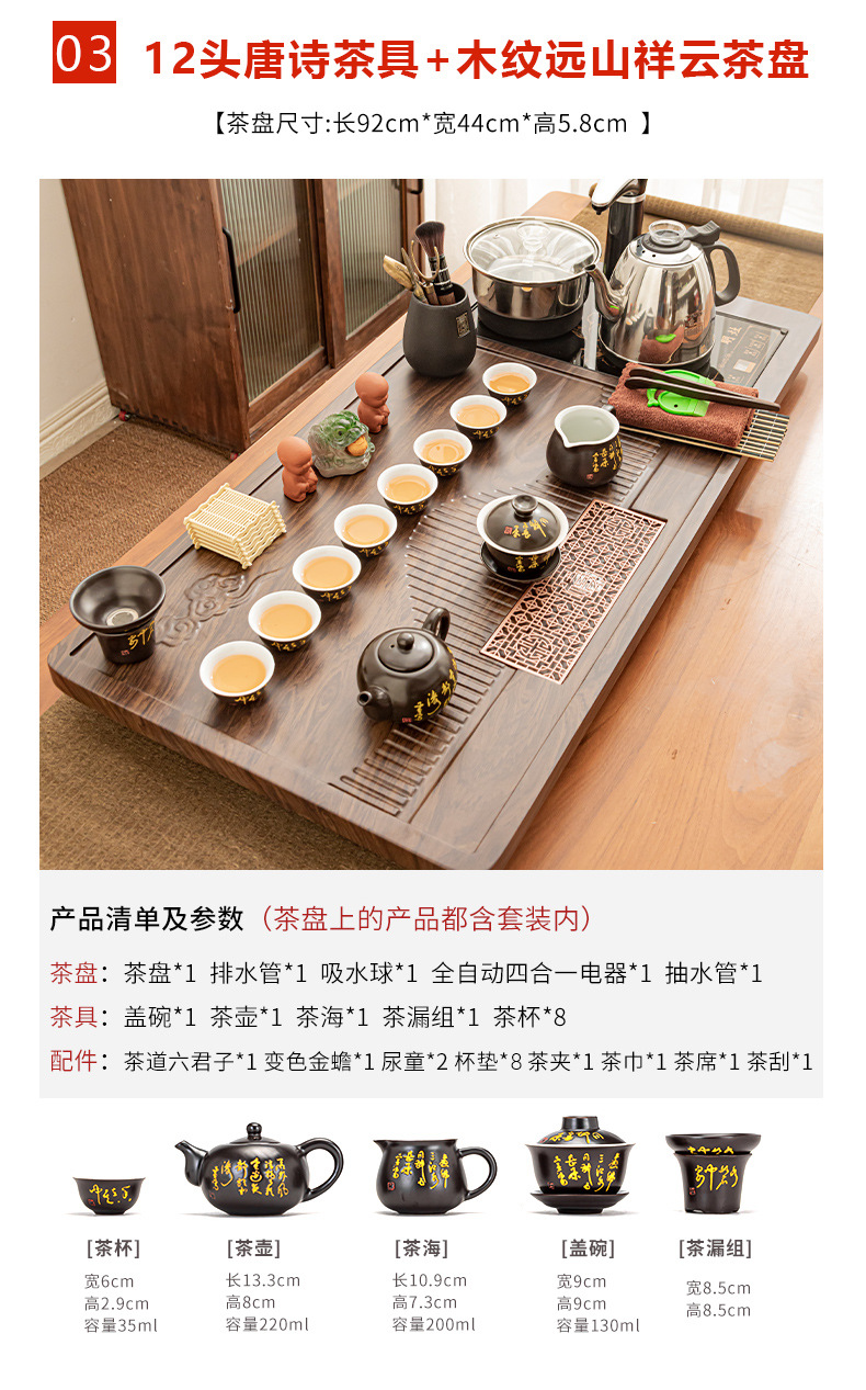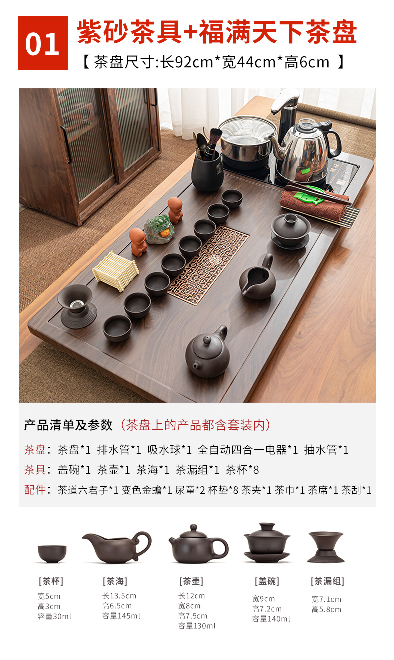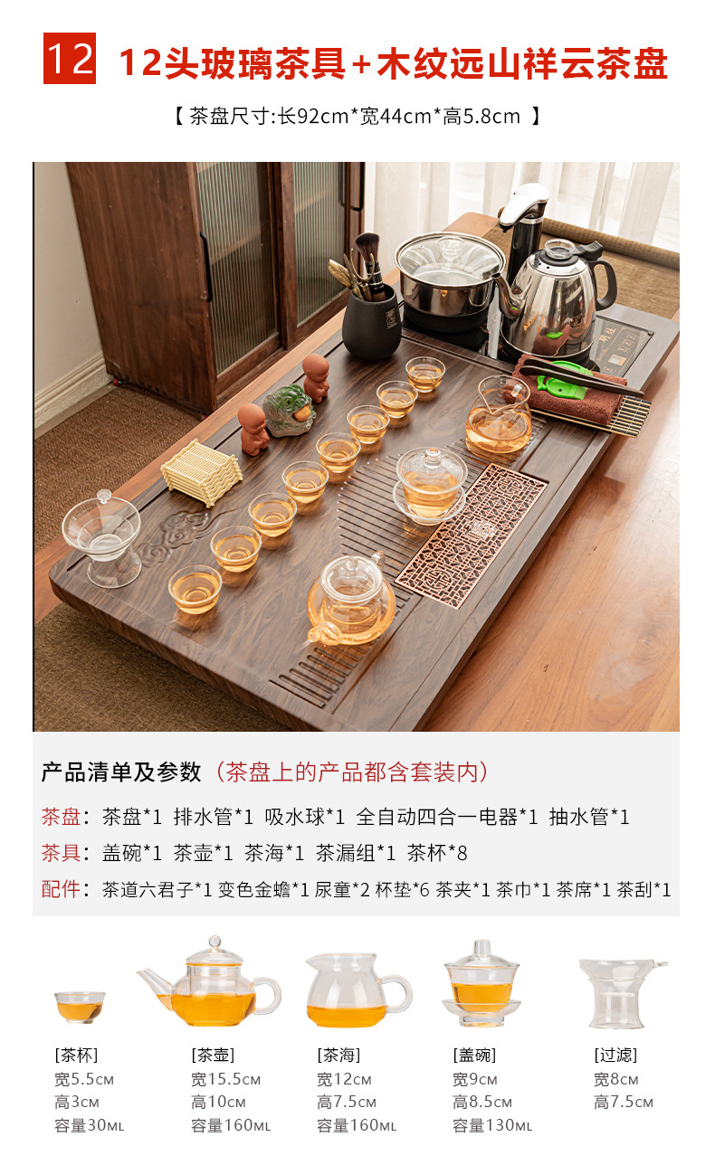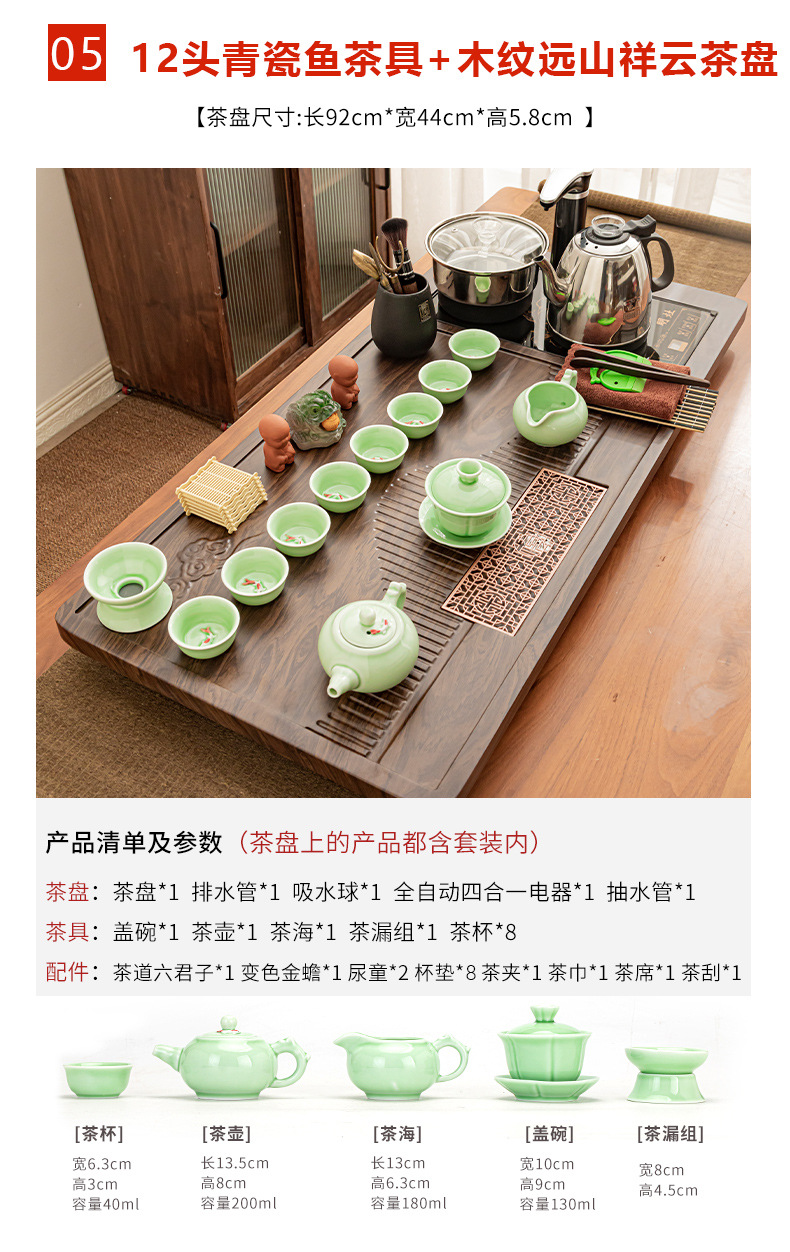 Полный набор полностью автоматического чайного сервиза кунг-фу для дома, гостиной, чайный поднос, комбинированный чайный столик «четыре в одном», чайник, плита, чайный столик
