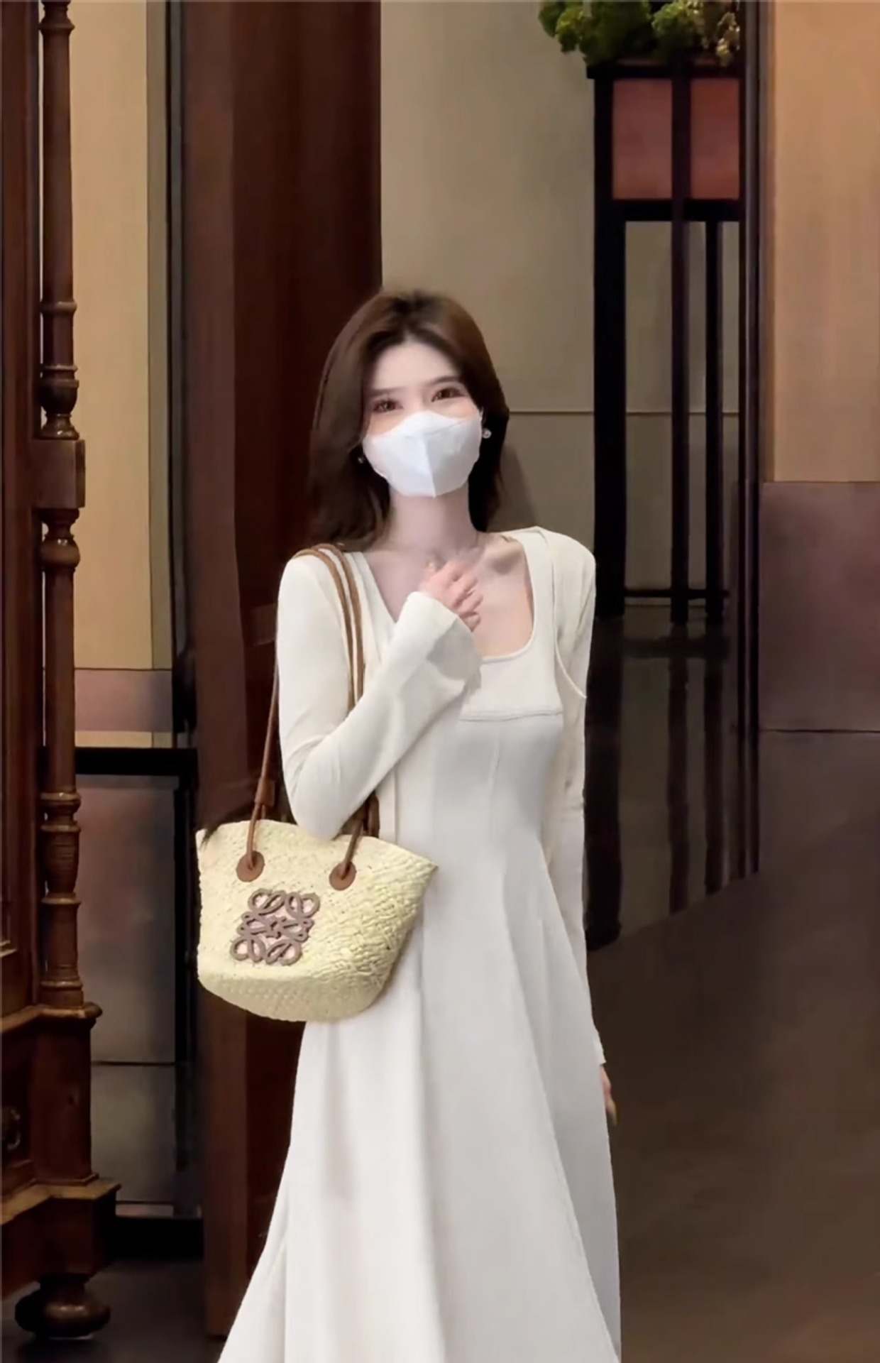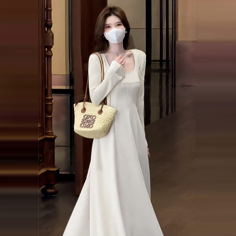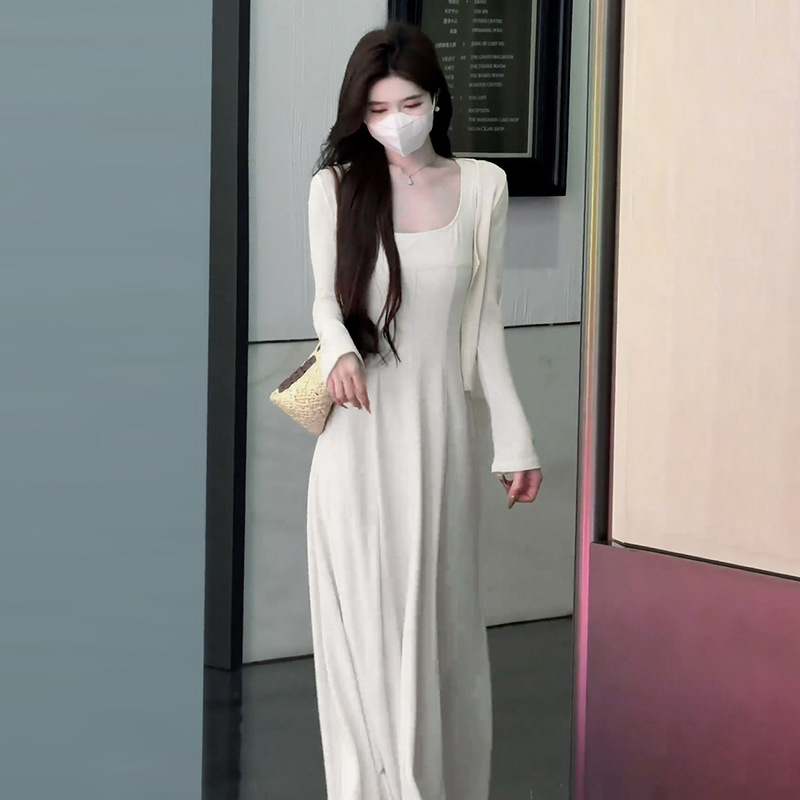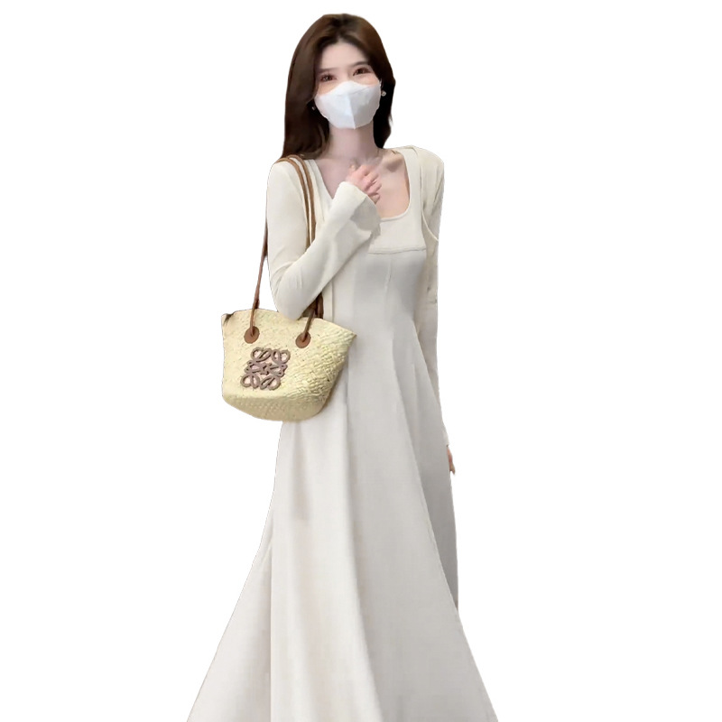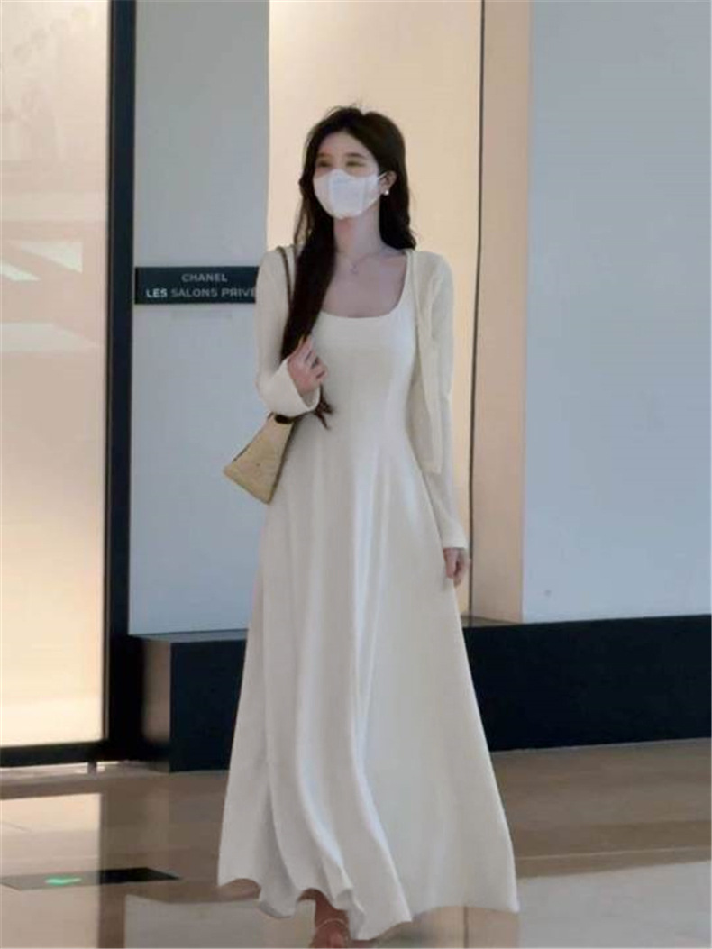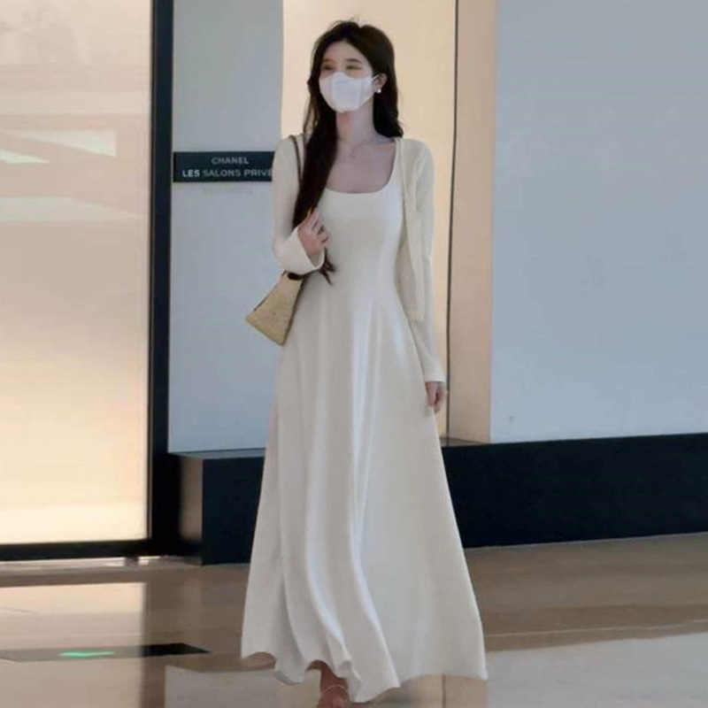 [Белое платье] [Женская одежда/платье/юбка/весенняя одежда/длинная юбка/наряд в весеннем стиле/юбка женская летняя/юбка на подтяжках/платье на подтяжках/французское платье; [Кардиган белого цвета] [Женская одежда/платье/юбка/весенняя одежда/длинная юбка/наряд в весеннем стиле/юбка женская летняя/юбка на подтяжках/платье на подтяжках/французское платье; [Костюм белого цвета] Кардиган + платье [Полный комплект весенних нарядов/весенних нарядов/костюмов/супергорячих весенних костюмов 2025/маленьких ароматных костюмов/длинных
