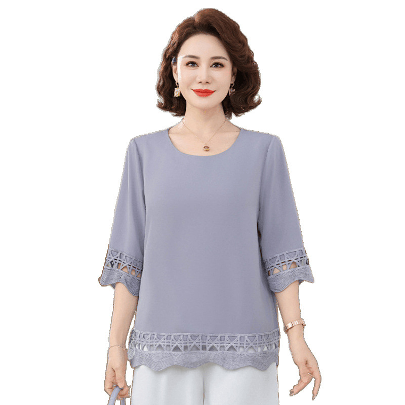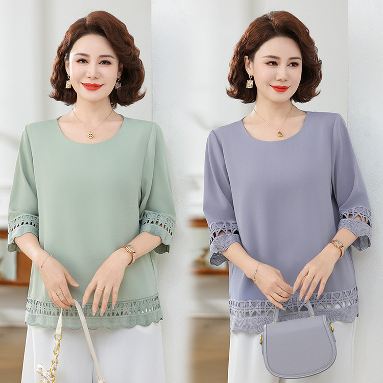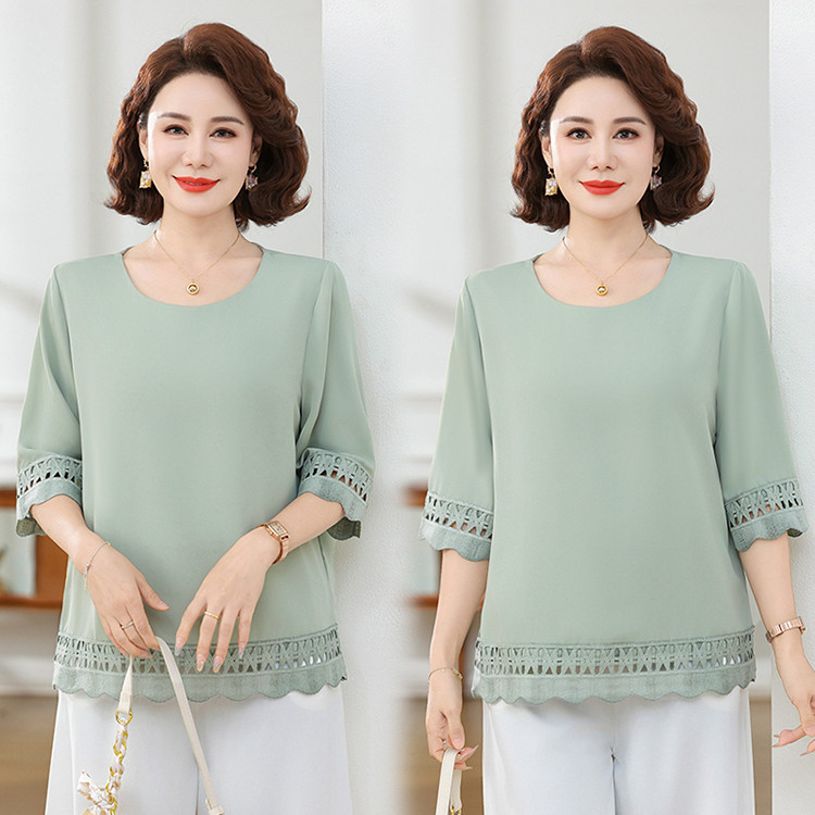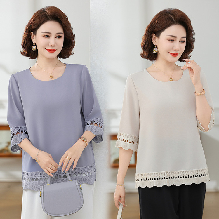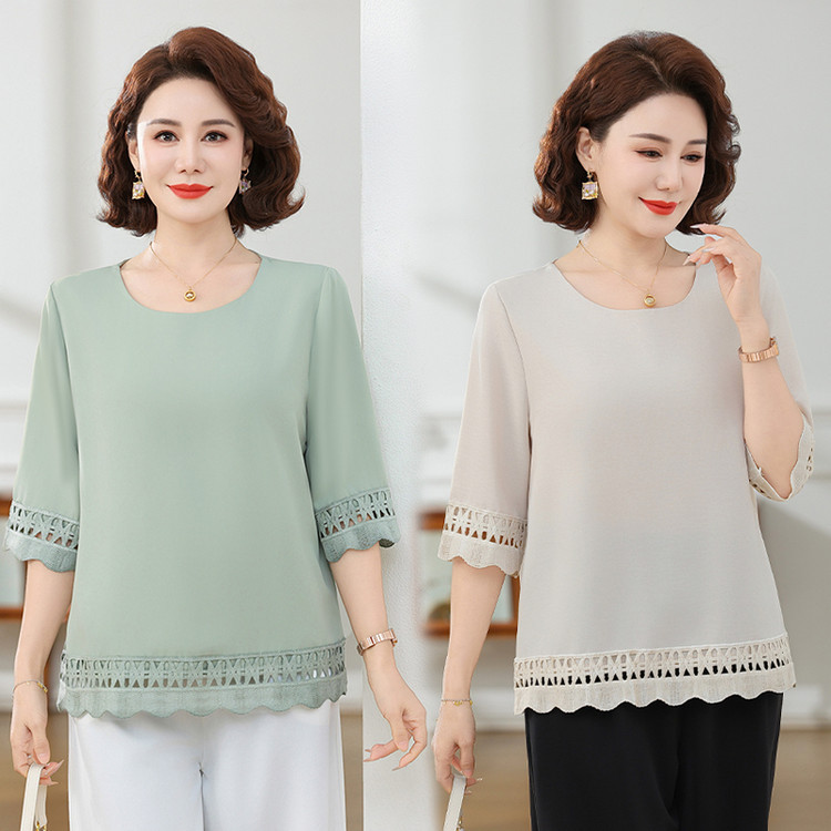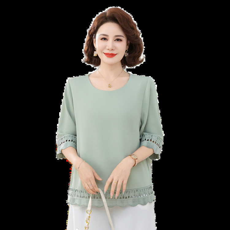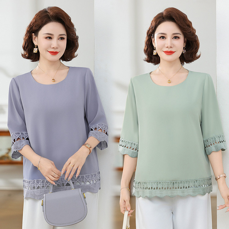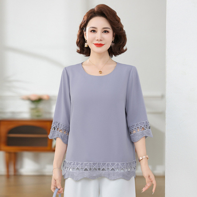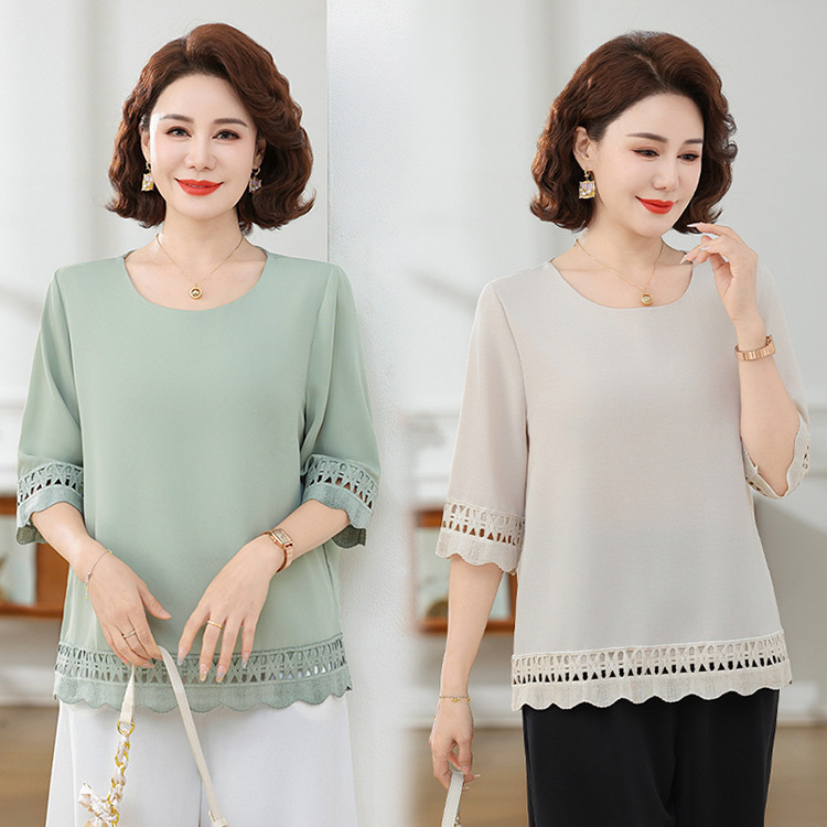 Летняя элегантная шифоновая рубашка с крючком для мамы, новинка 2025 года, свободная одежда большого размера для женщин среднего и пожилого возраста, закрывающая живот