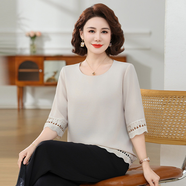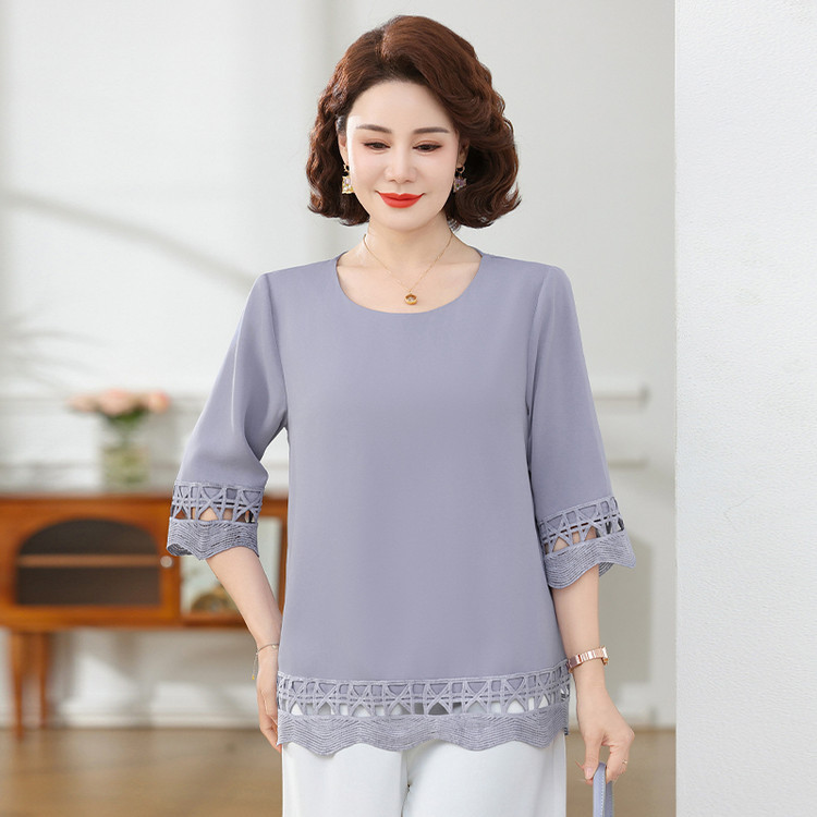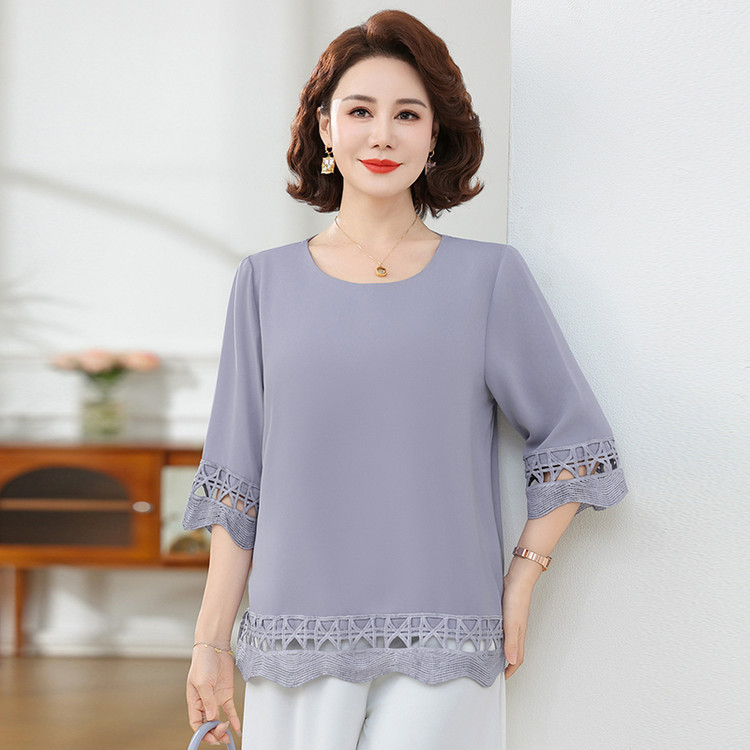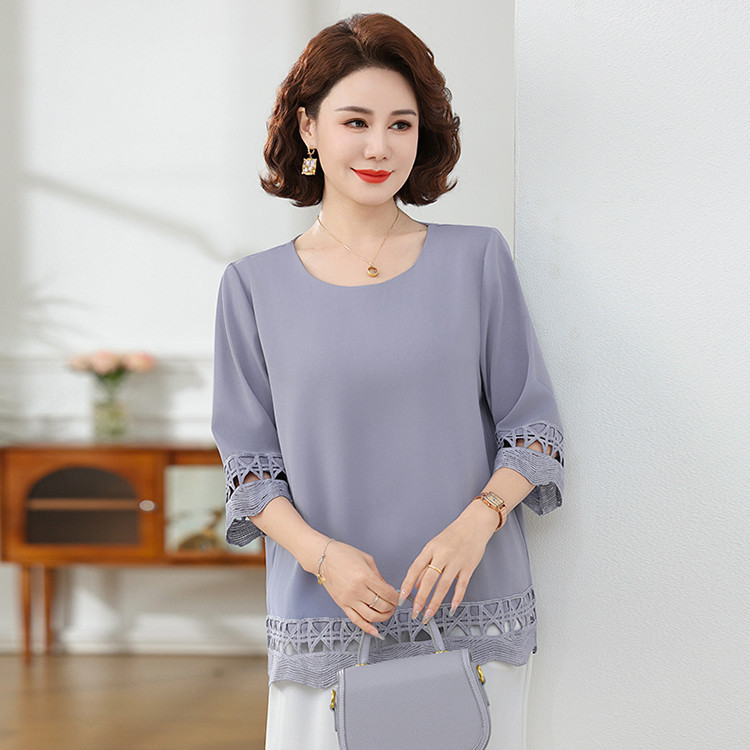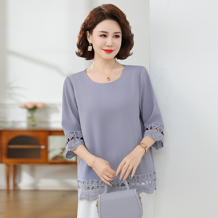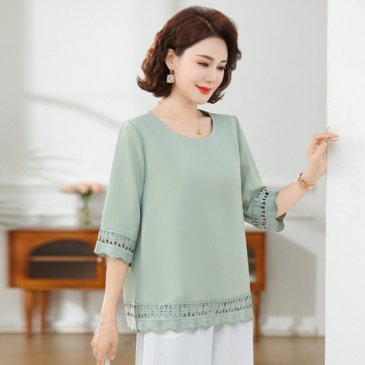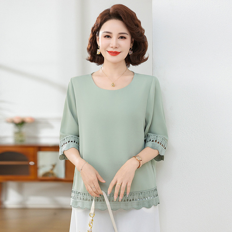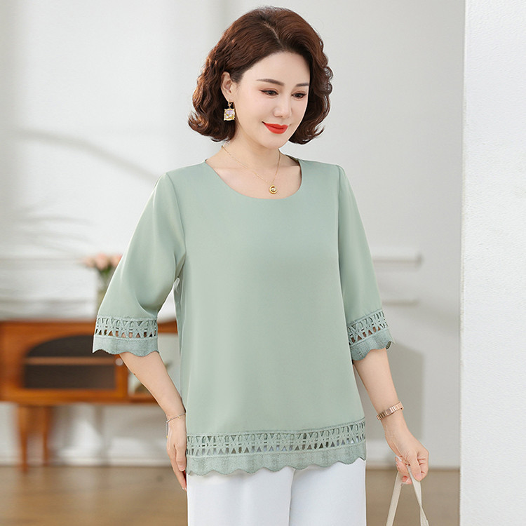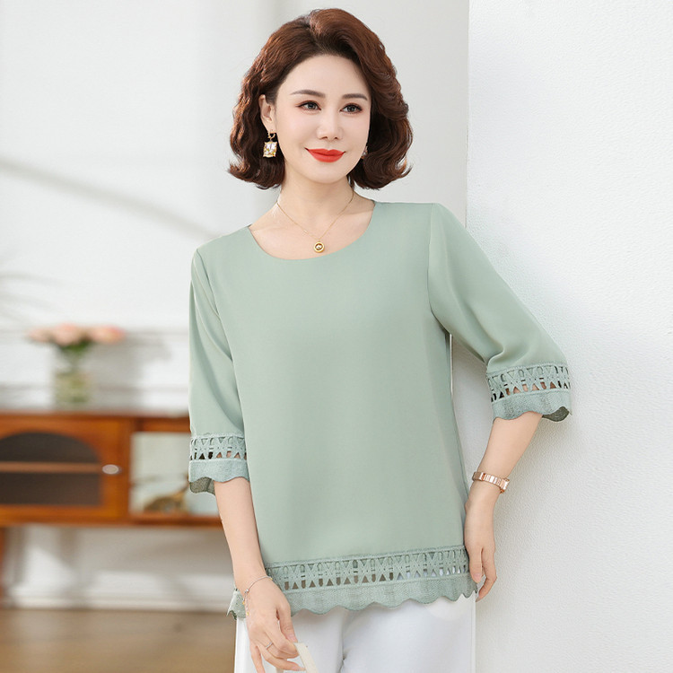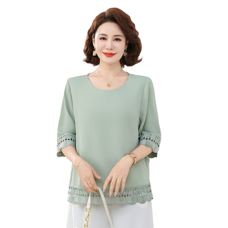 Летняя элегантная шифоновая рубашка с крючком для мамы, новинка 2025 года, свободная одежда большого размера для женщин среднего и пожилого возраста, закрывающая живот