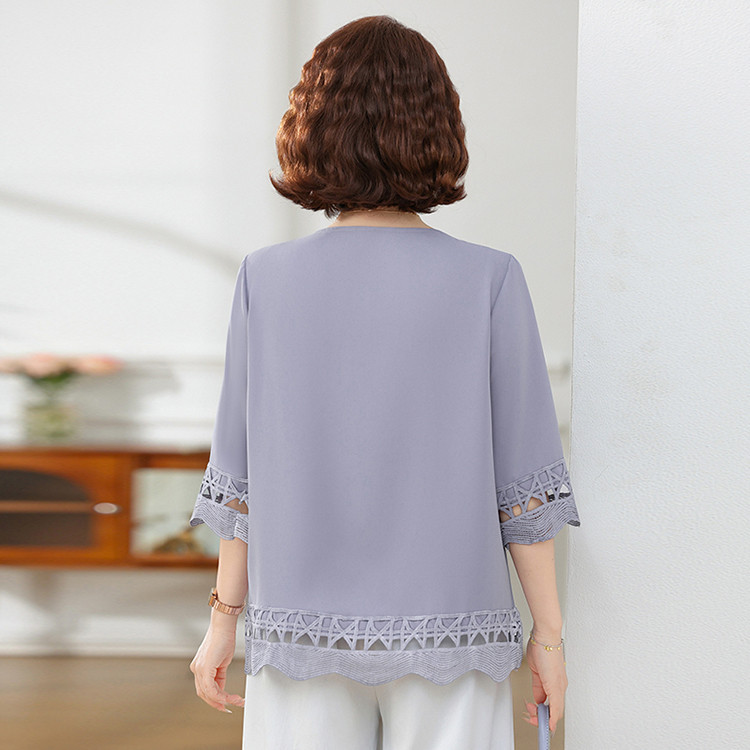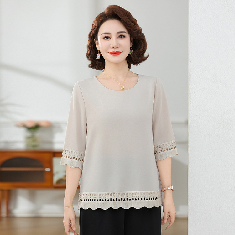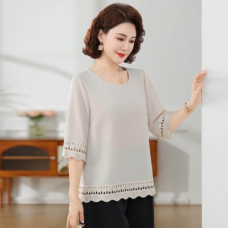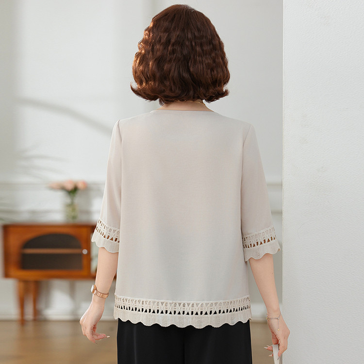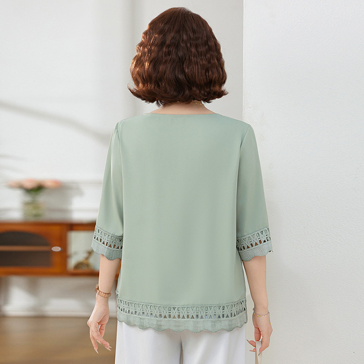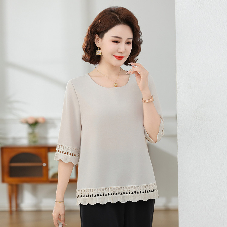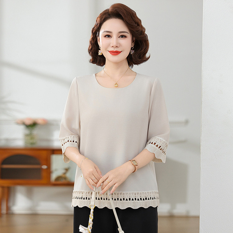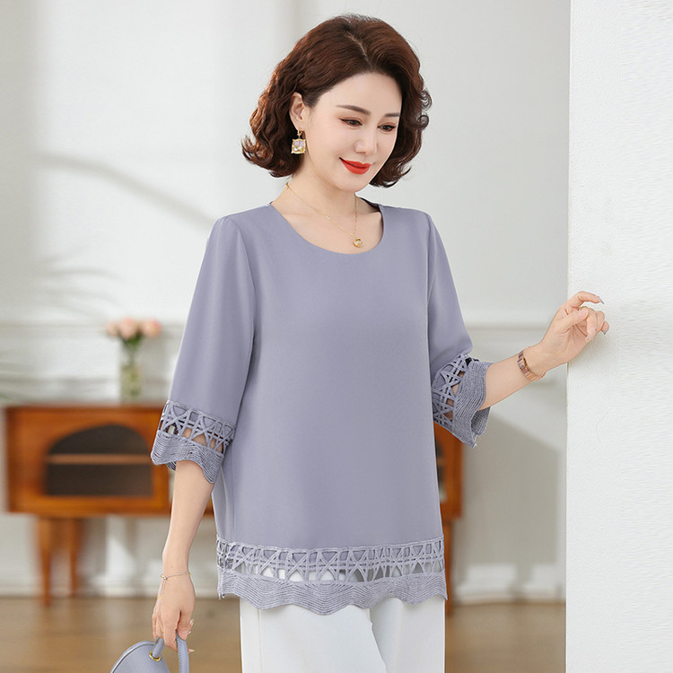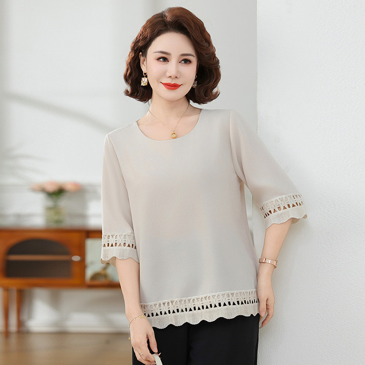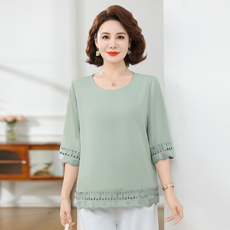 Летняя элегантная шифоновая рубашка с крючком для мамы, новинка 2025 года, свободная одежда большого размера для женщин среднего и пожилого возраста, закрывающая живот