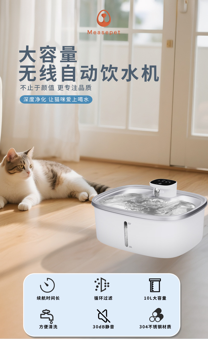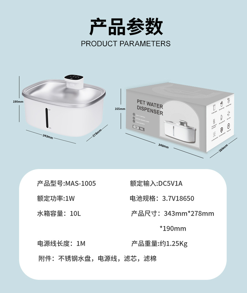 10-литровый умный поилка для питомцев с циркуляционным фильтром, поддоном из нержавеющей стали и защитой от опрокидывания, диспенсер для воды для кошек