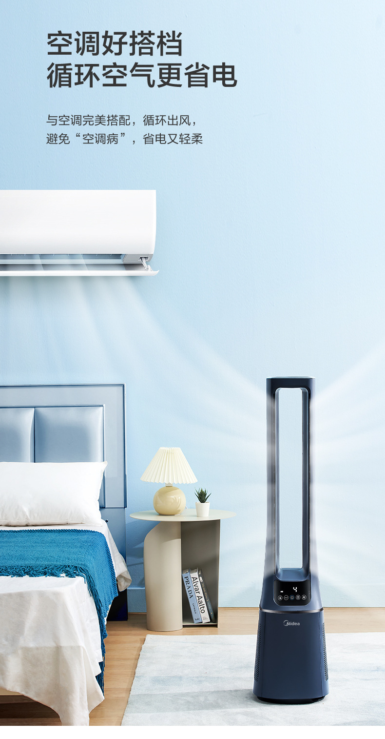 Беслопастной электрический вентилятор Midea, световой звук, бытовой напольный вентилятор, умная гостиная, очистка воздуха AMS150E-TM