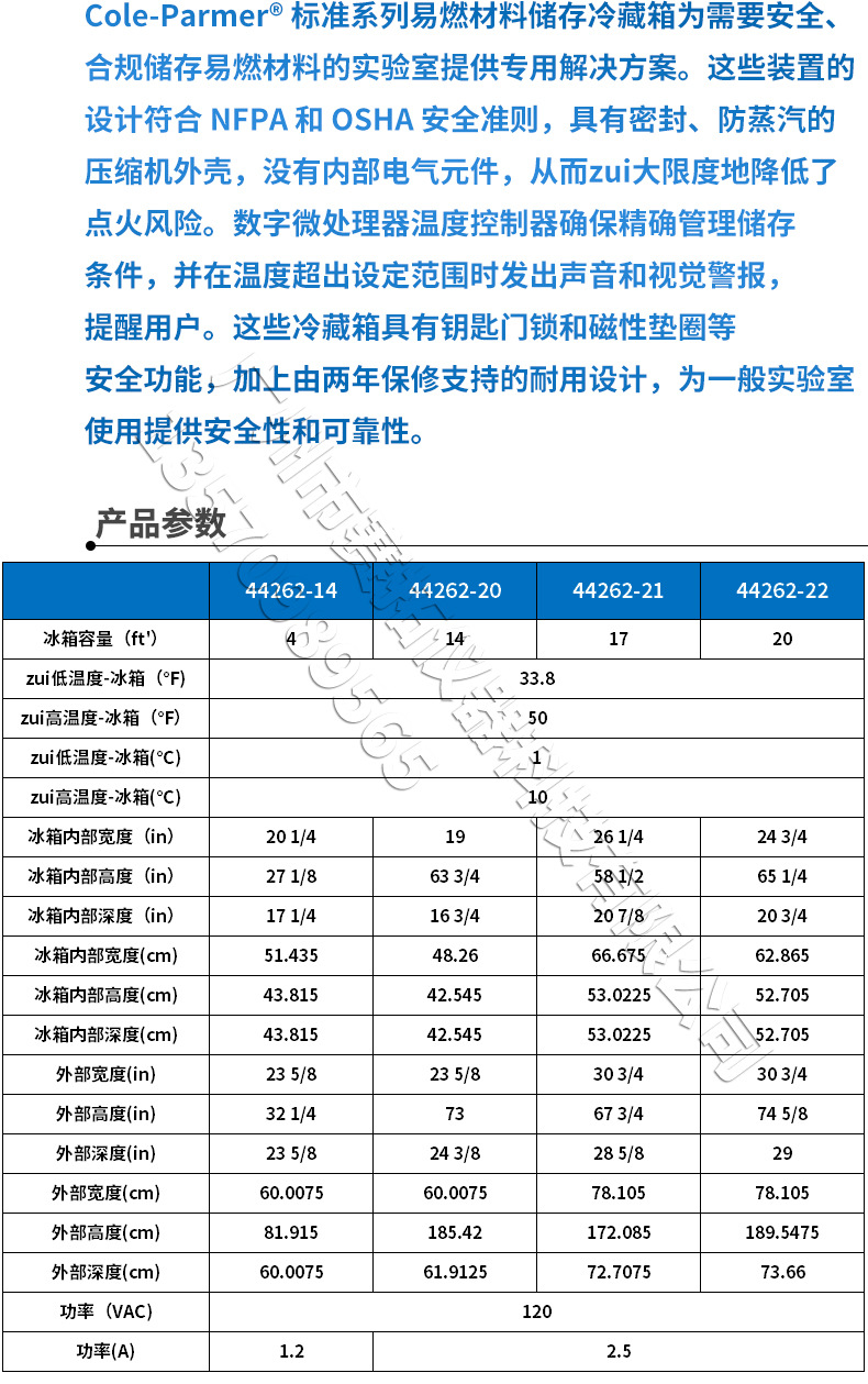 Холодильный шкаф Cole-Parmer 44262-14 стандартной серии для хранения легковоспламеняющихся веществ, лабораторный холодильный шкаф