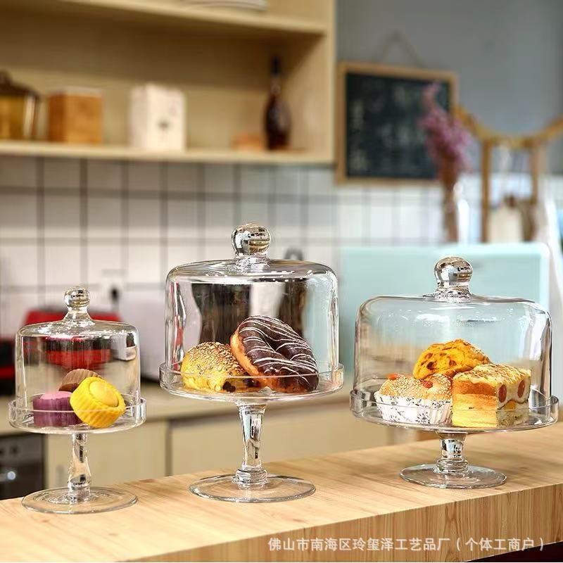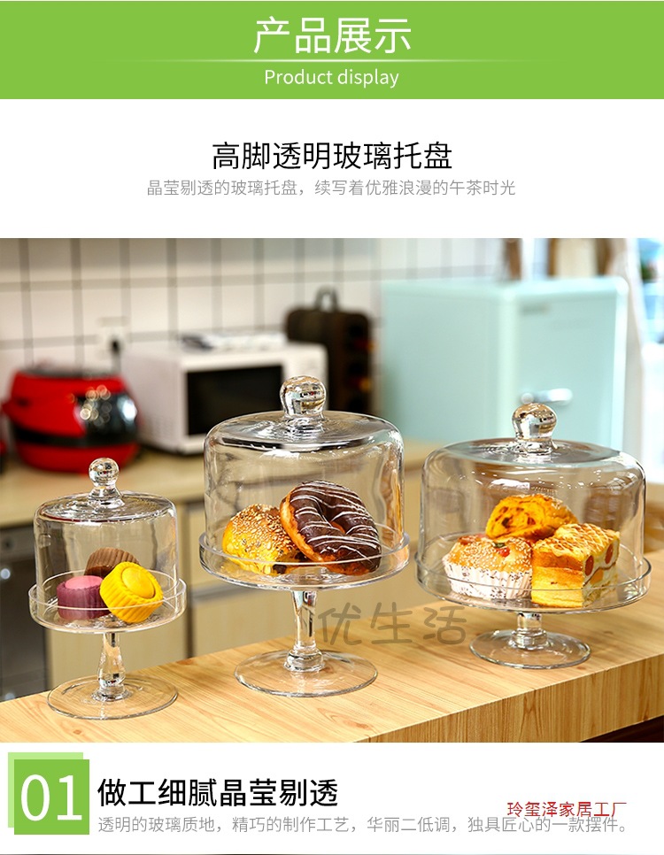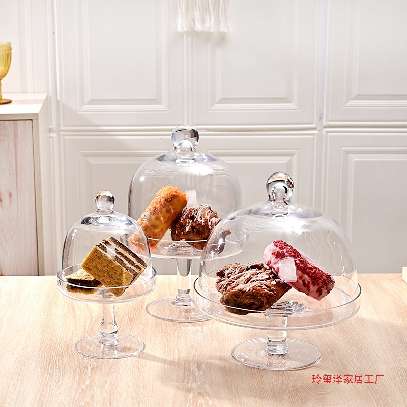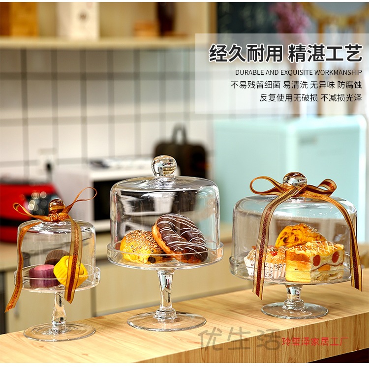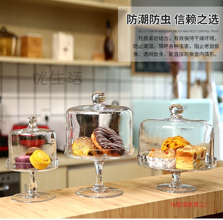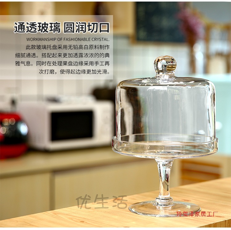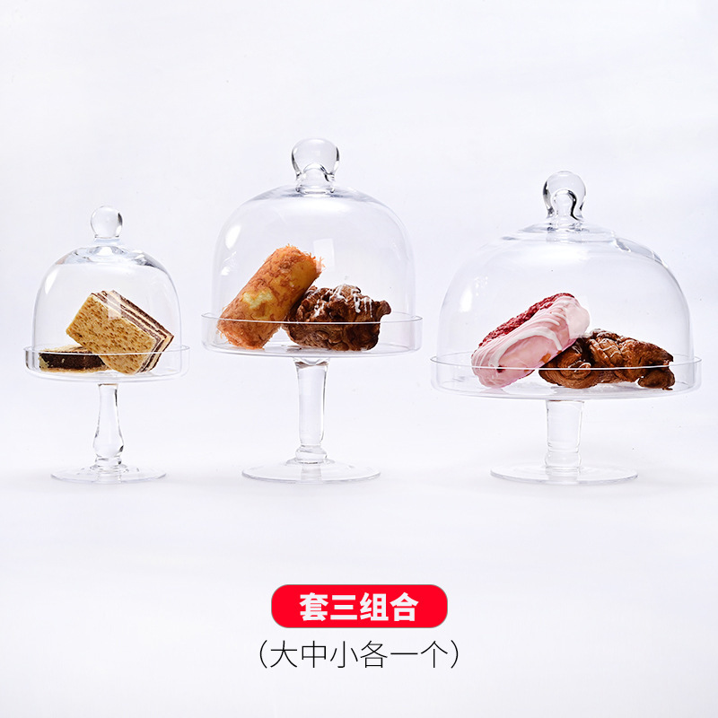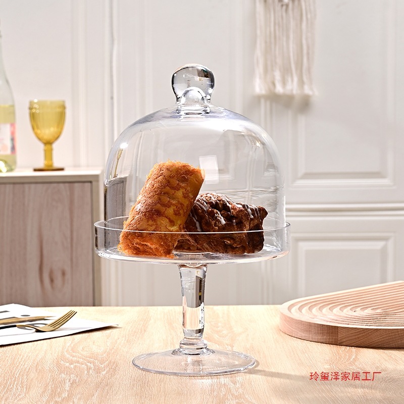 Европейская большая стеклянная тарелка для торта, прозрачная пылезащитная крышка, высокая тарелка для фруктов, десертный стол, свадебные креативные предметы интерьера