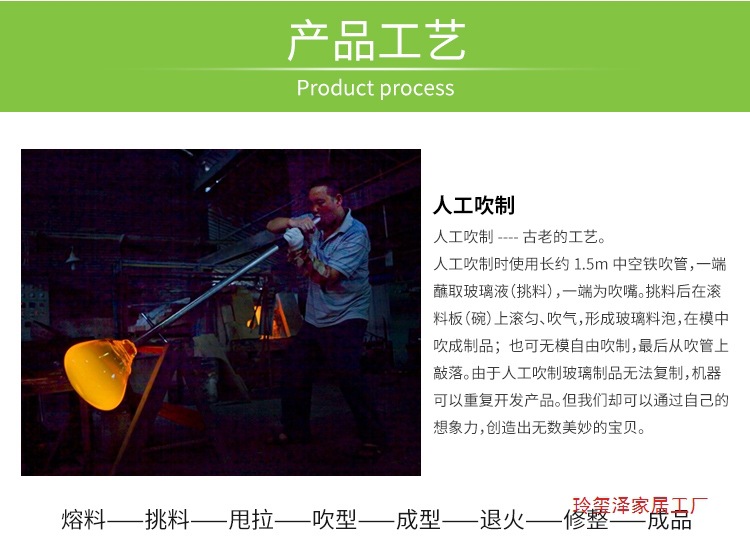 由于玻璃工艺品的瓶体均采用人工吹制,会有少数气泡或水纹均在颁布玻璃行标的范围之内。气泡非产品残次,而是人工吹制玻璃的特点,特别挑剔的亲请谨慎考虑后购买!