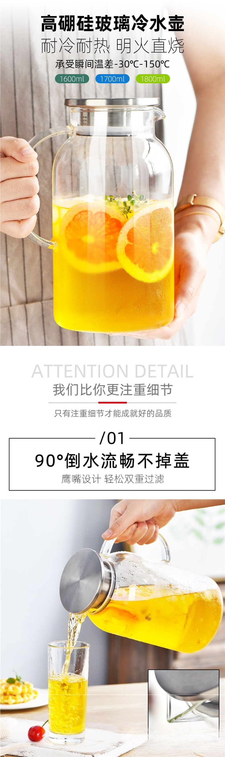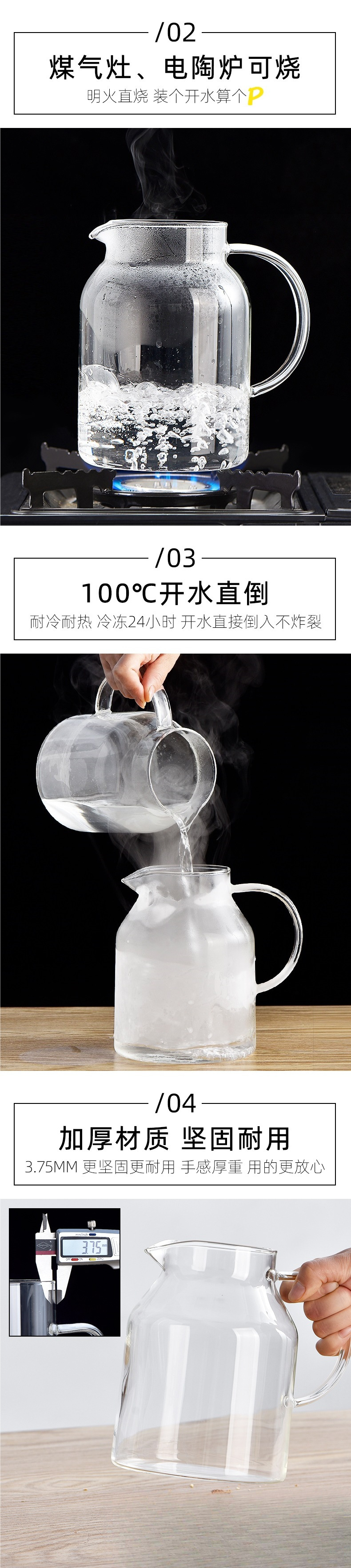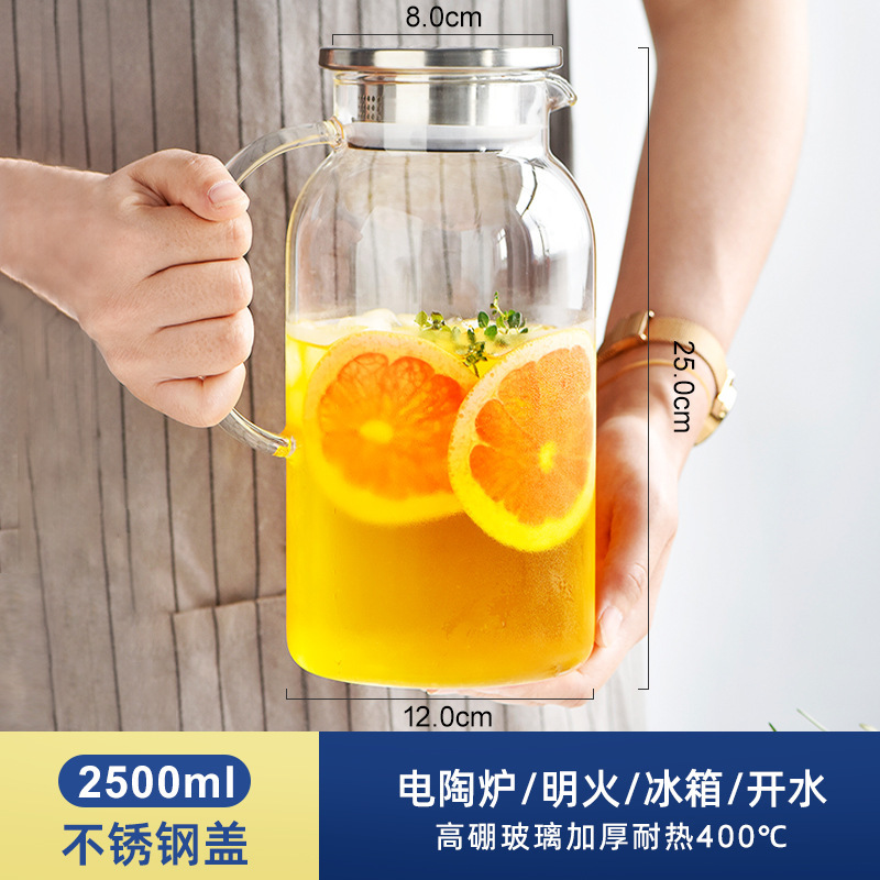 Стеклянный кувшин для холодной воды большой емкости для чая, бытовой, устойчивый к высоким температурам, подходит для кипящей воды, летнего использования.
