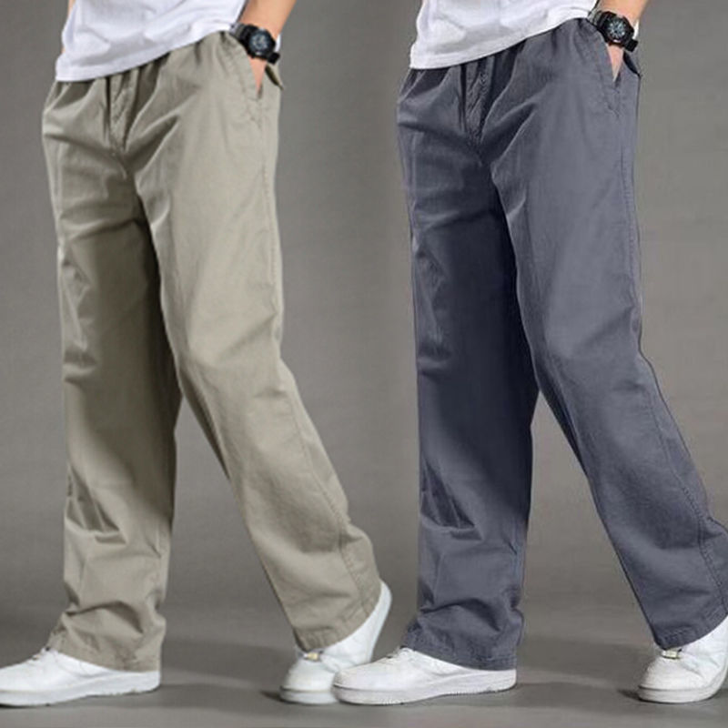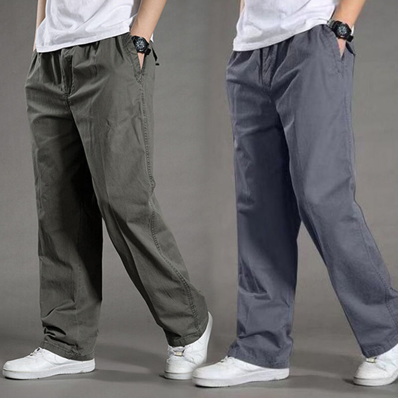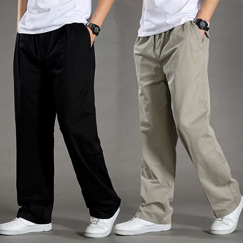 Мужские повседневные брюки, летние тонкие прямые брюки, свободные широкие брюки больших размеров, свободные спортивные брюки, хлопковые однотонные брюки
