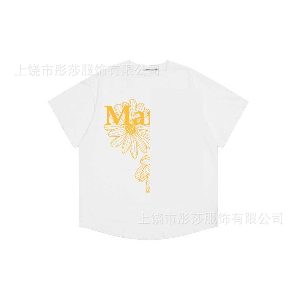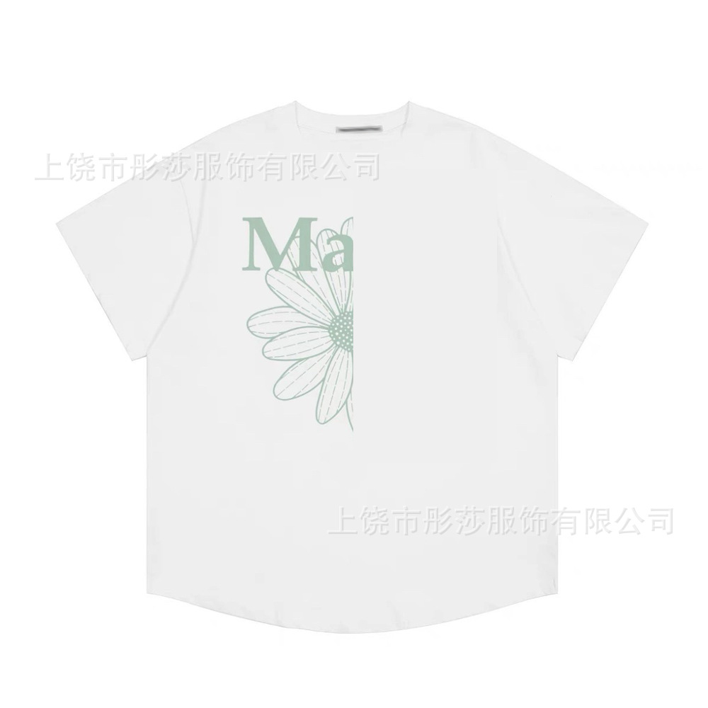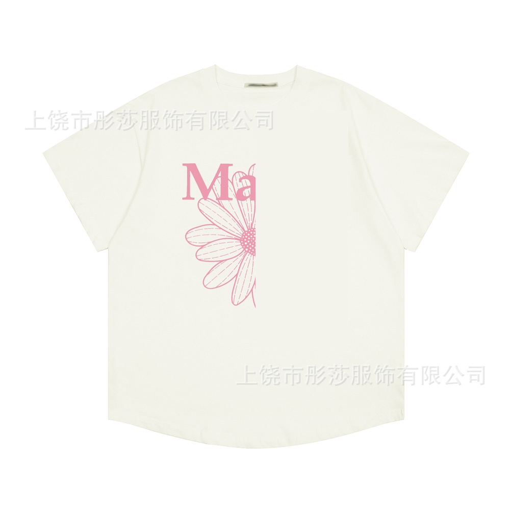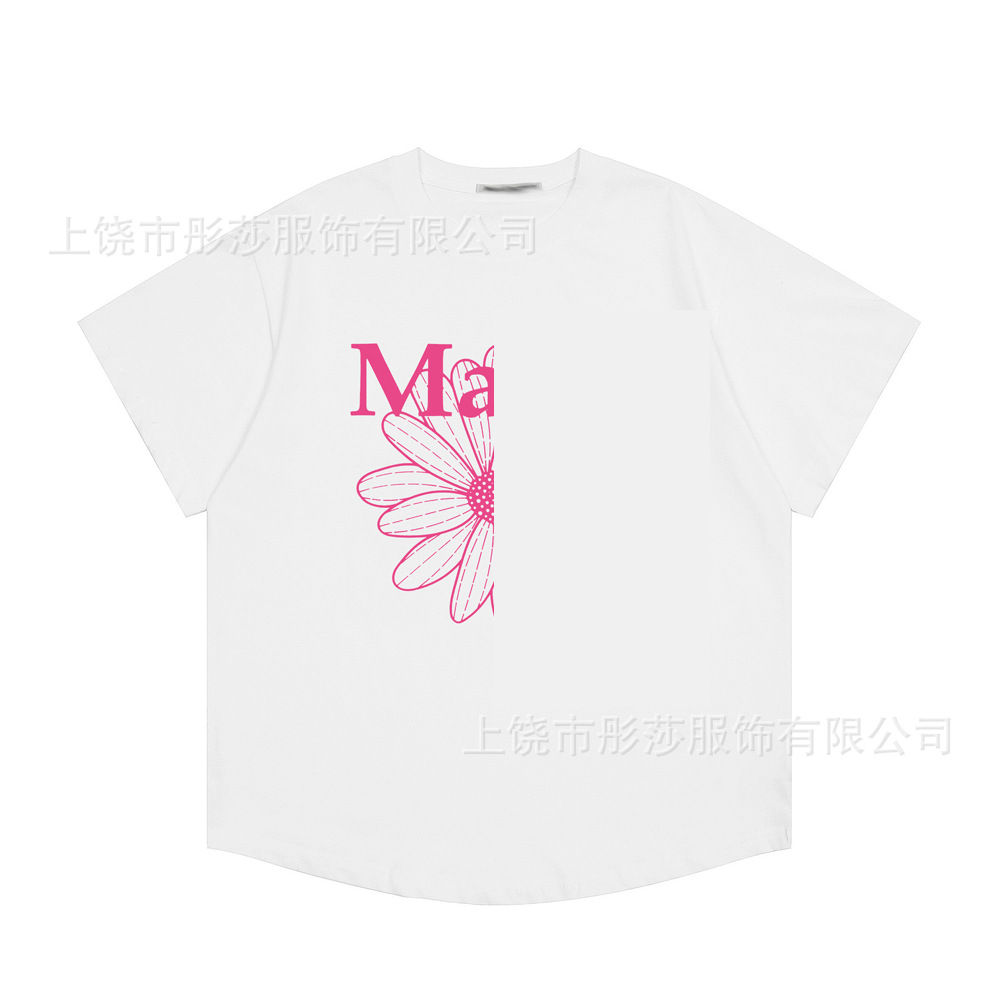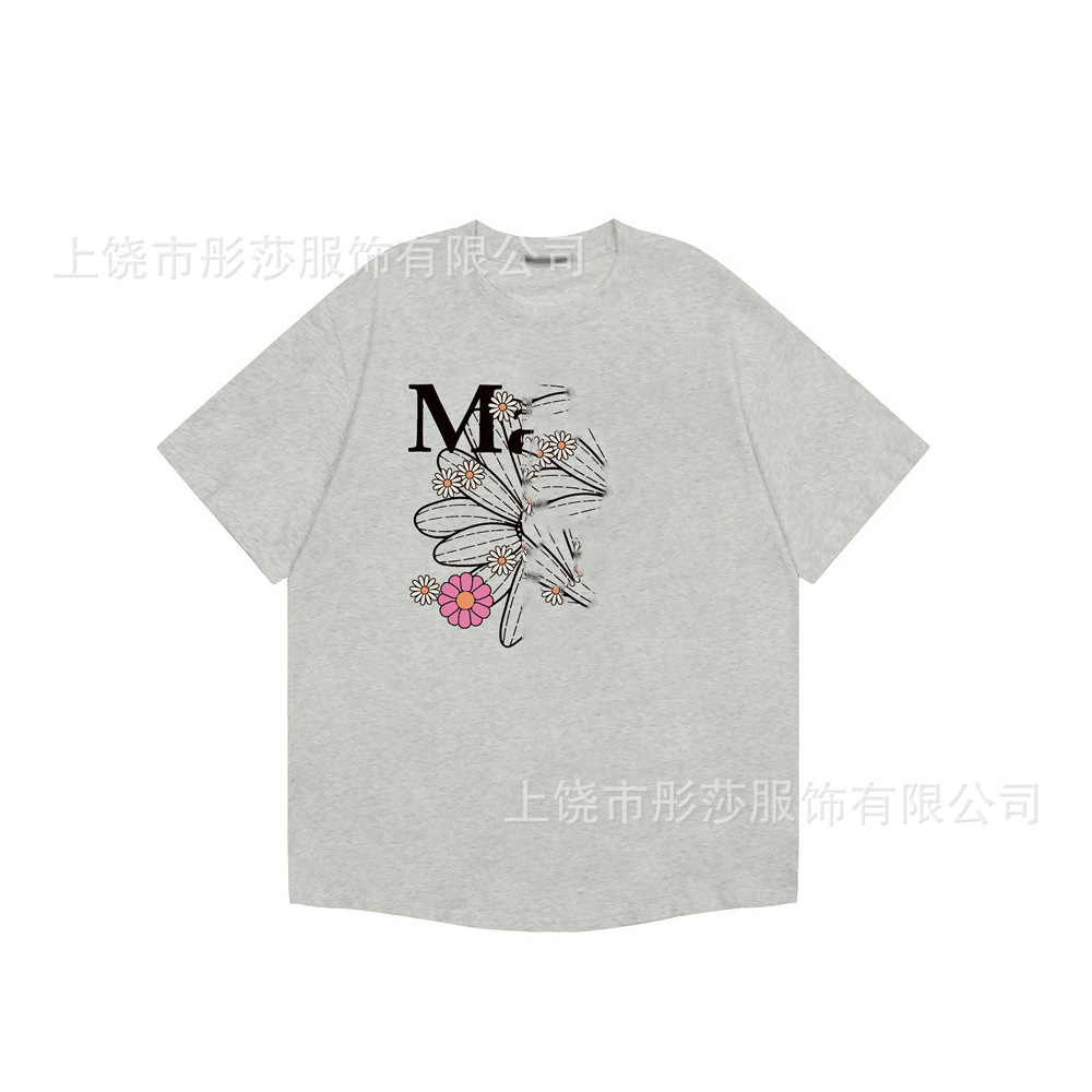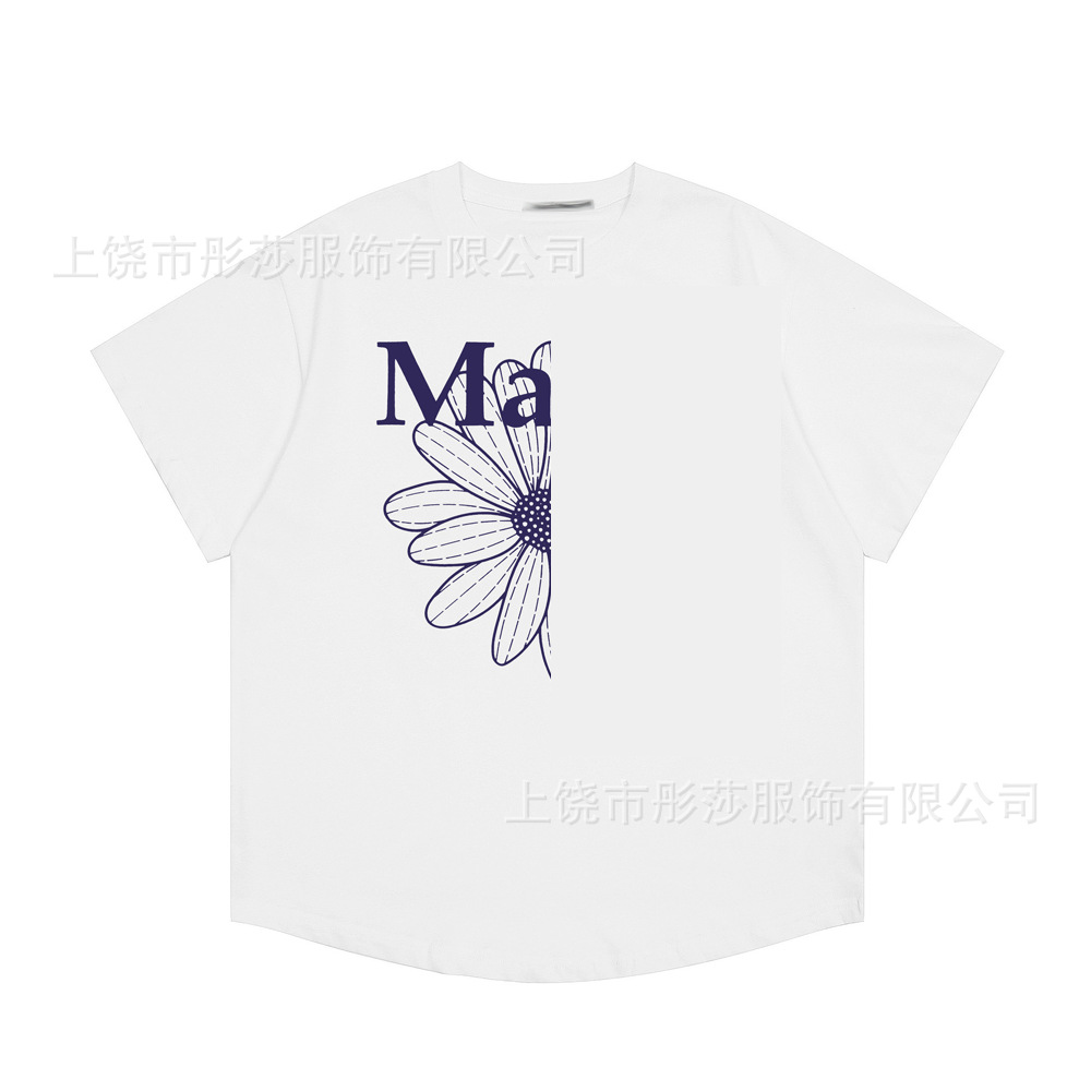 Новая модная корейская футболка 2025 года с коротким рукавом и принтом ромашек, универсальный топ для пар (для женщин), свободный крой, стильный дизайн