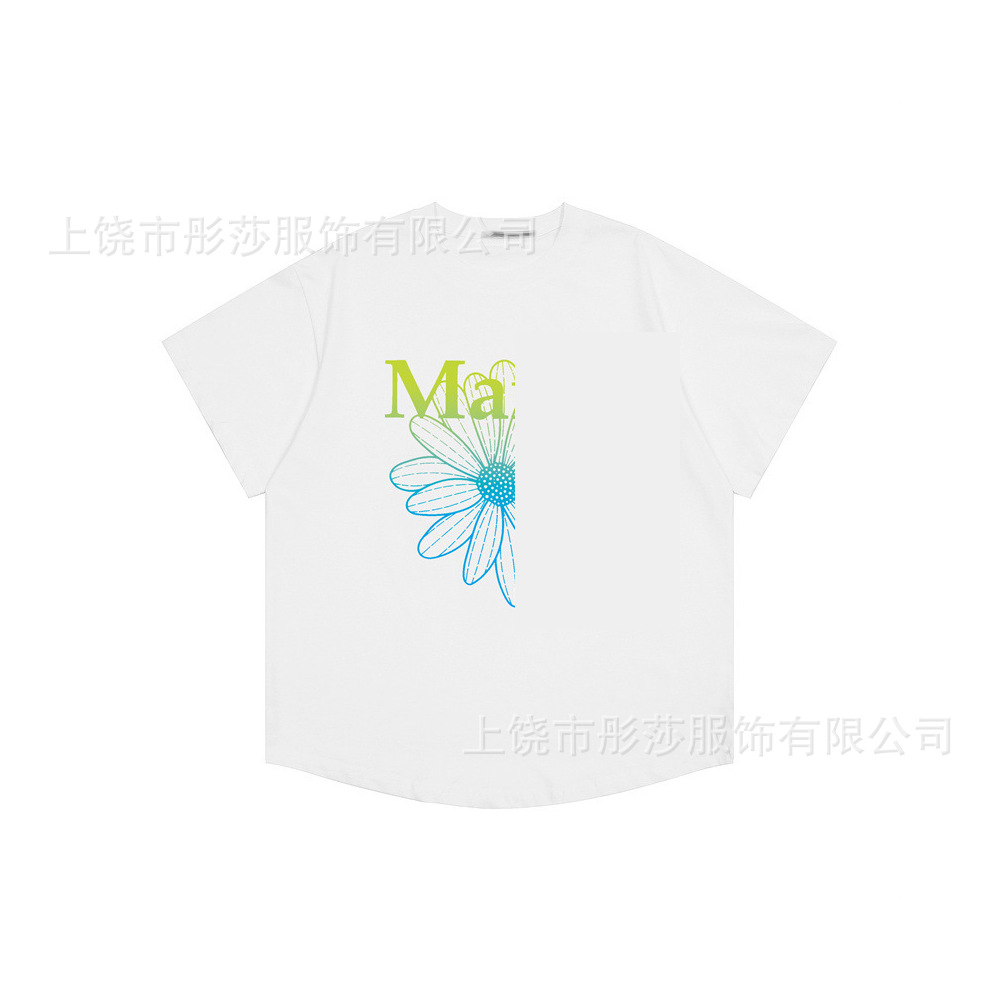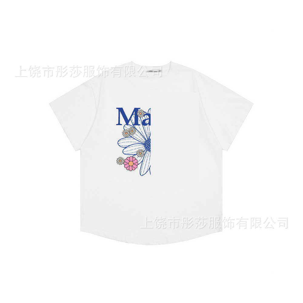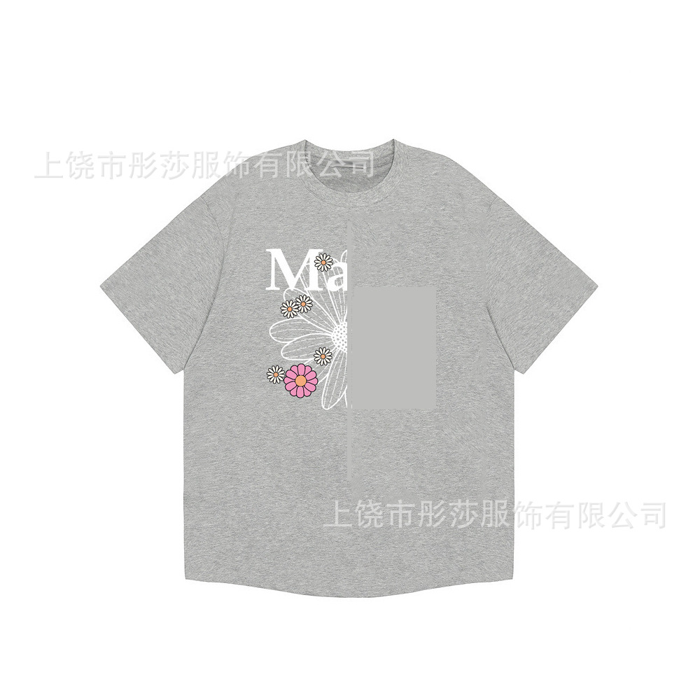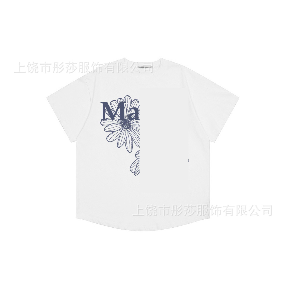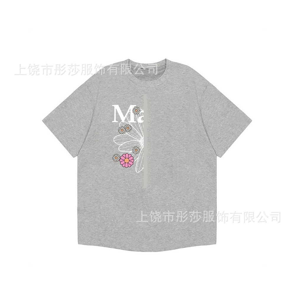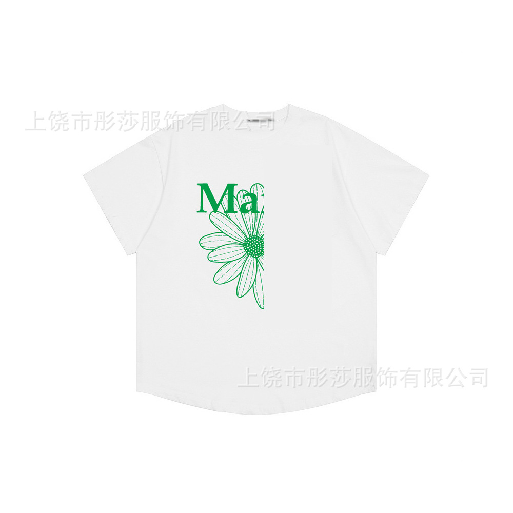 Новая модная корейская футболка 2025 года с коротким рукавом и принтом ромашек, универсальный топ для пар (для женщин), свободный крой, стильный дизайн