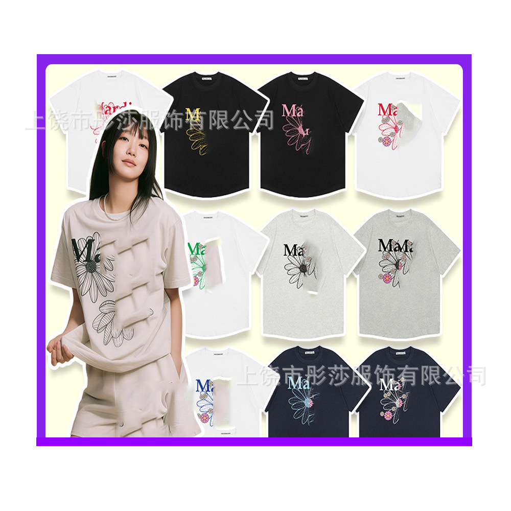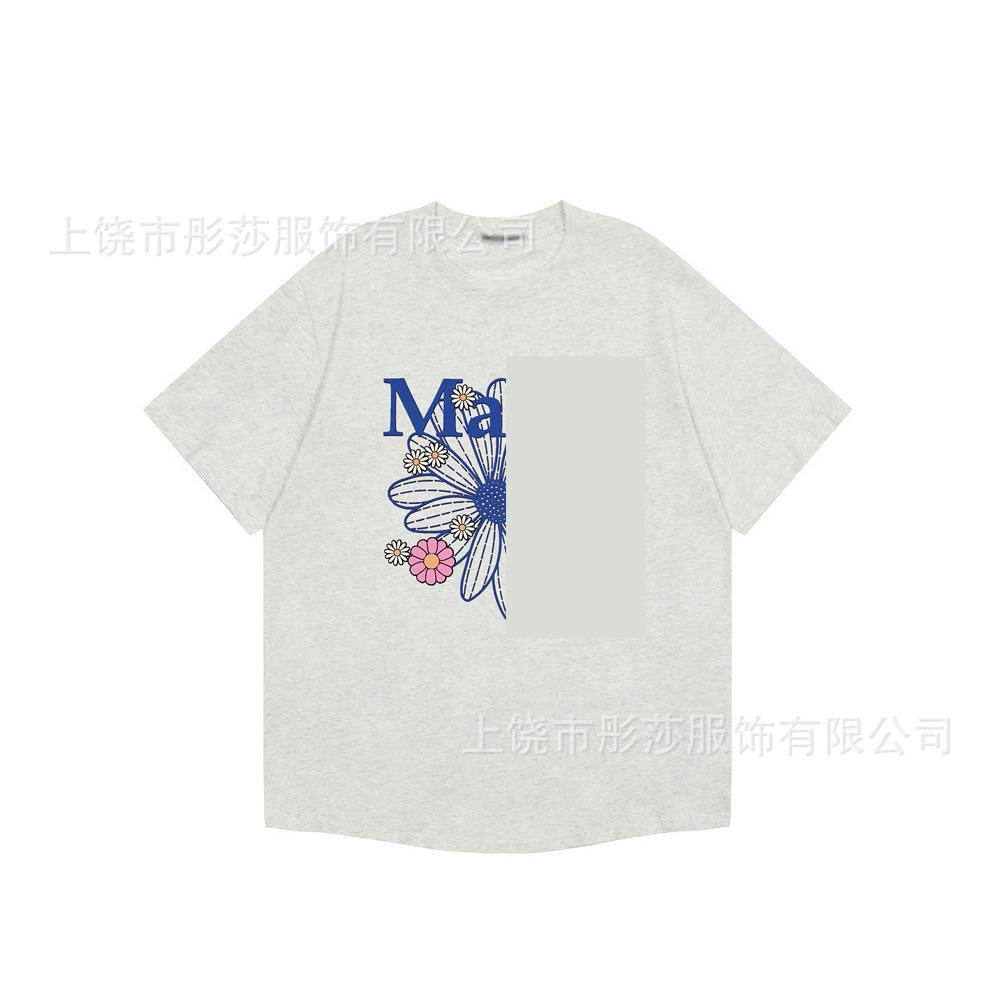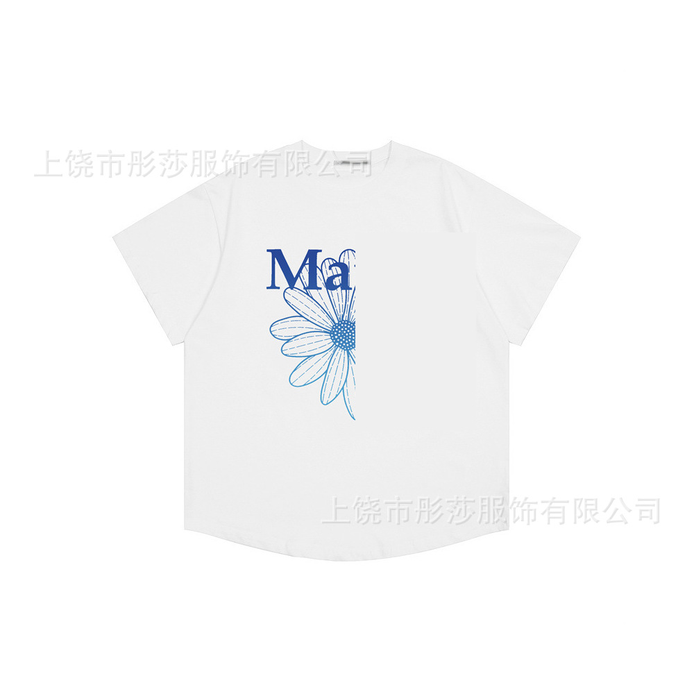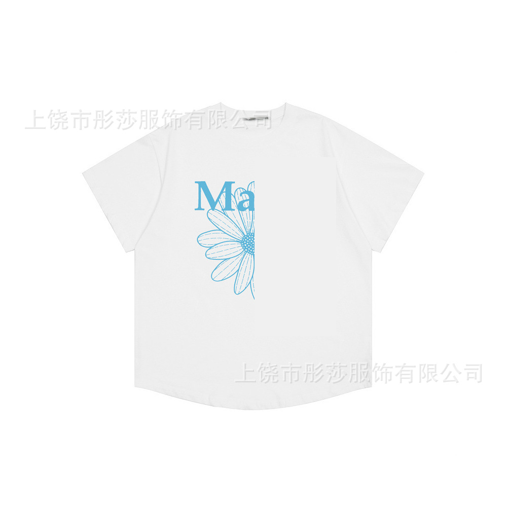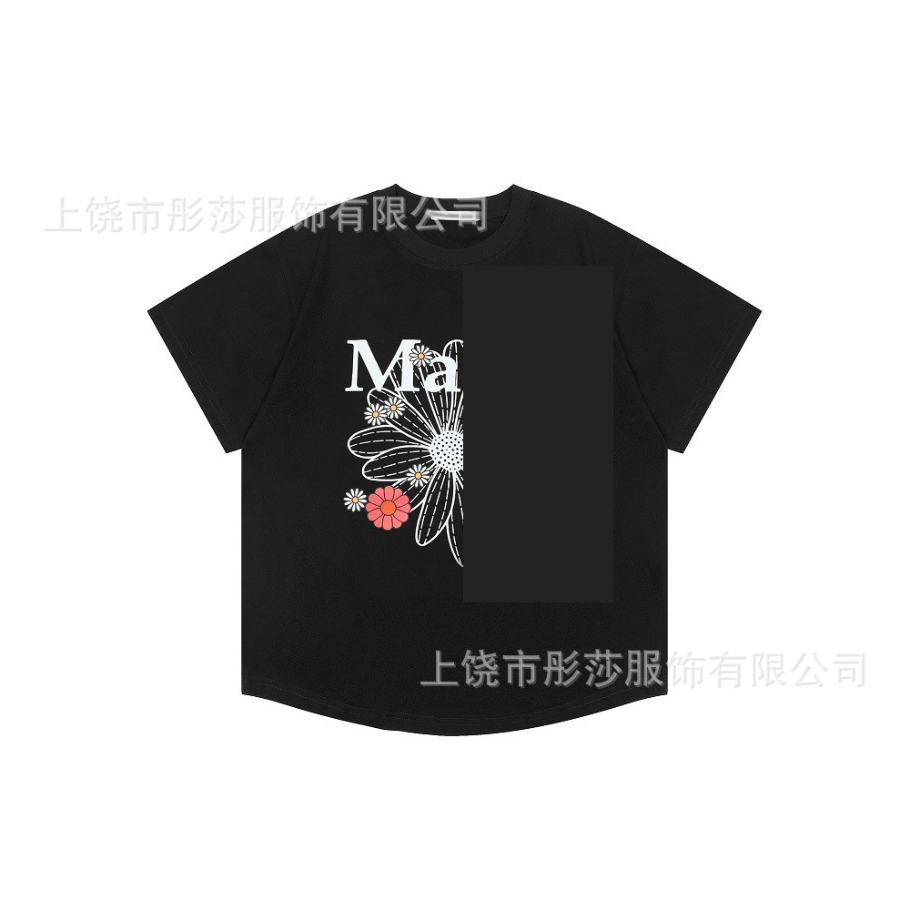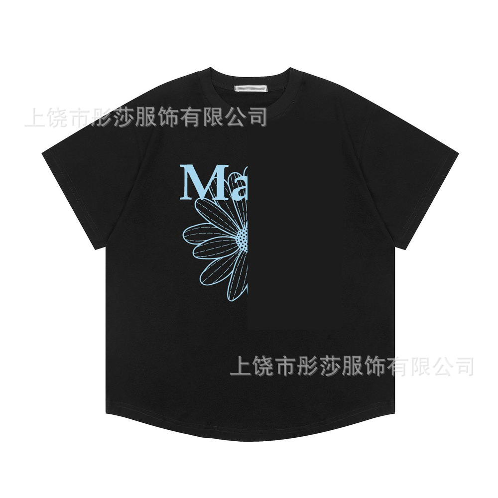 Новая модная корейская футболка 2025 года с коротким рукавом и принтом ромашек, универсальный топ для пар (для женщин), свободный крой, стильный дизайн