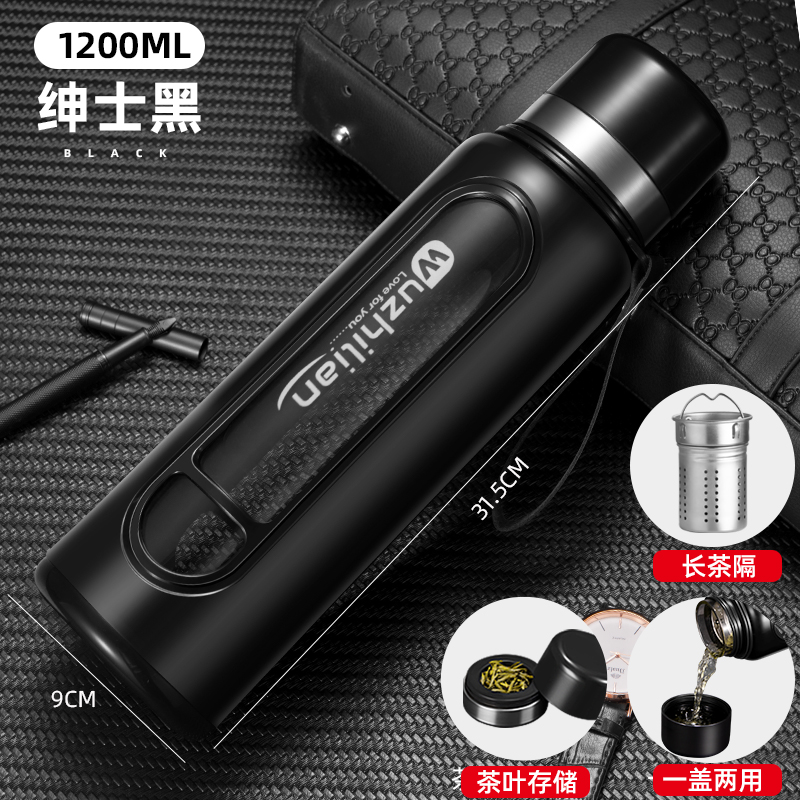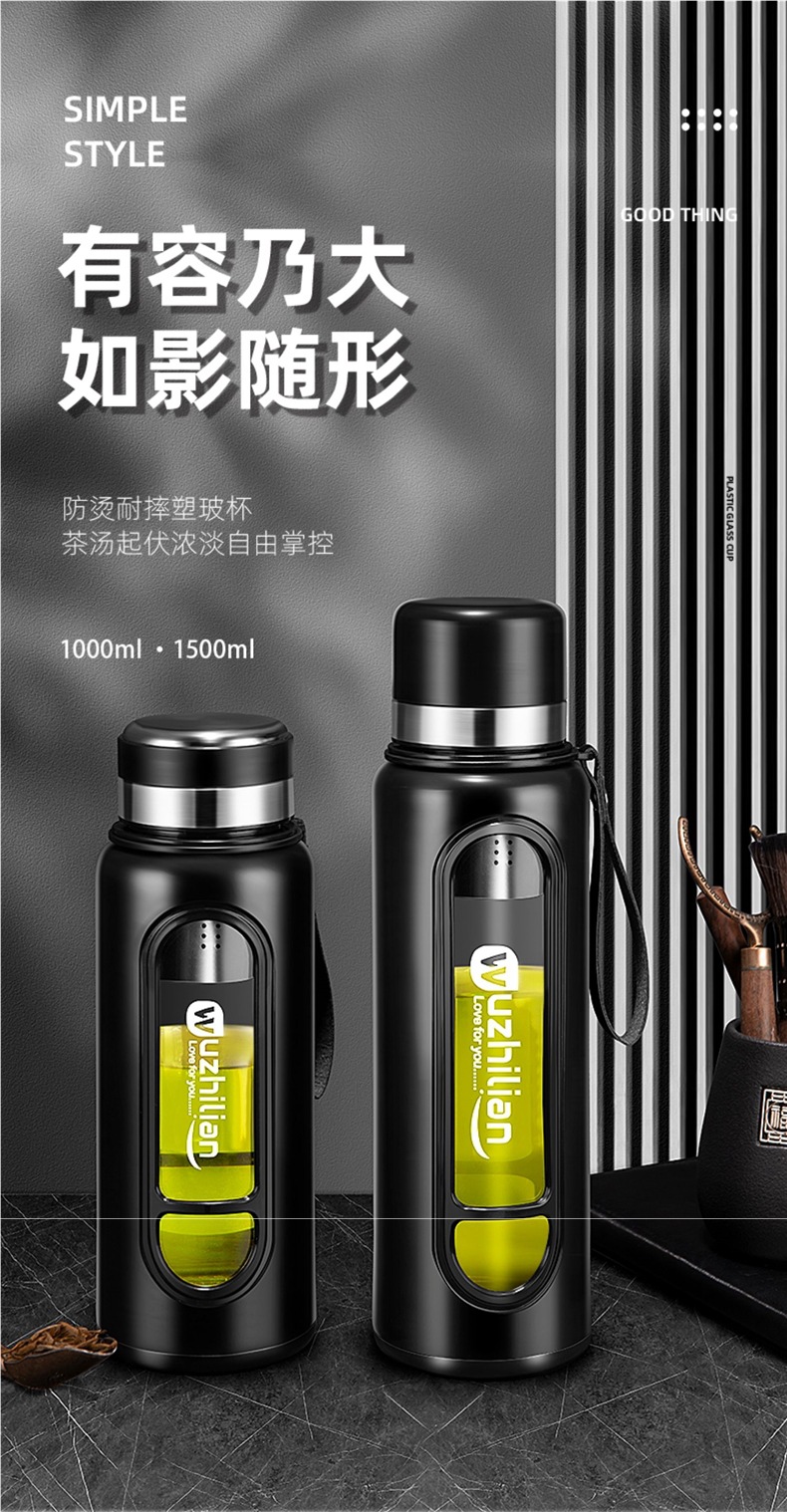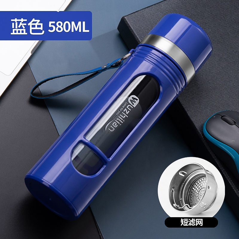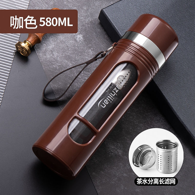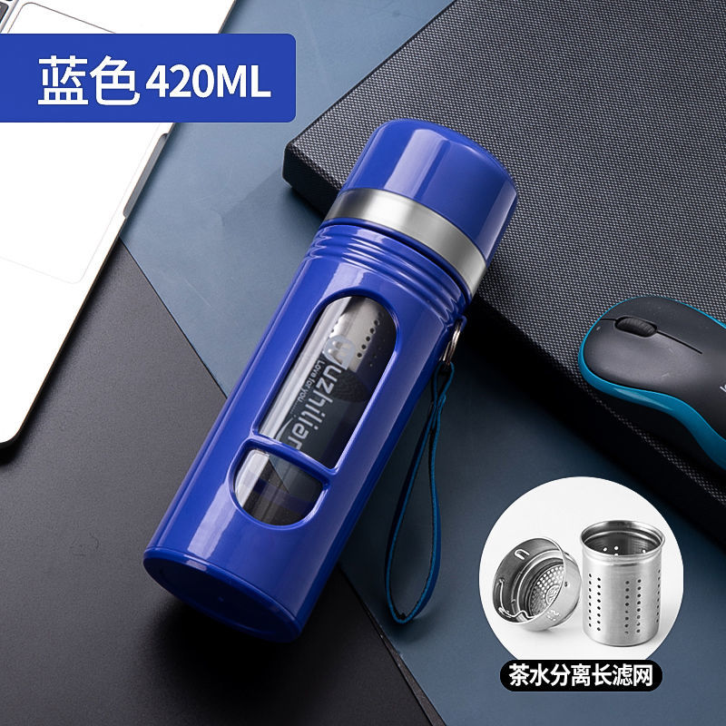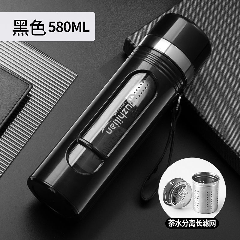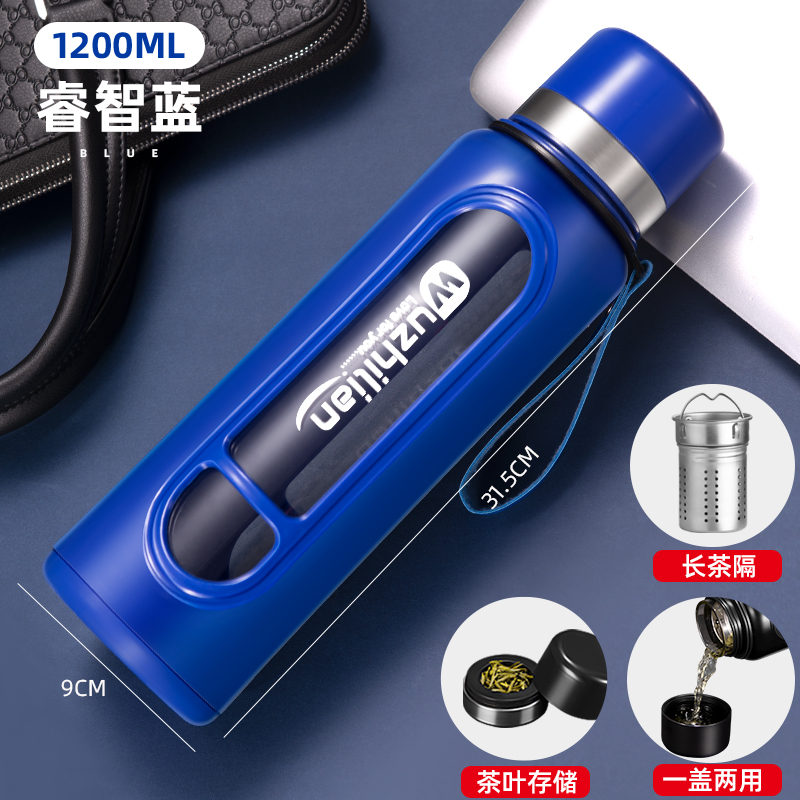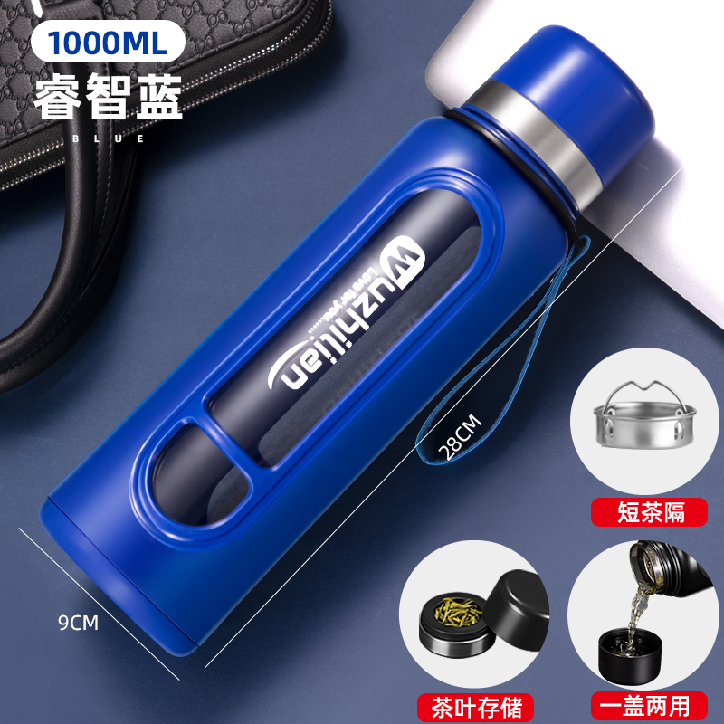 Стеклянная чашка большой емкости, чашка для воды, устойчивая к падению и высоким температурам, бытовая двухслойная уличная чашка для воды с крышкой, мужская чашка для чая и воды