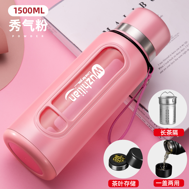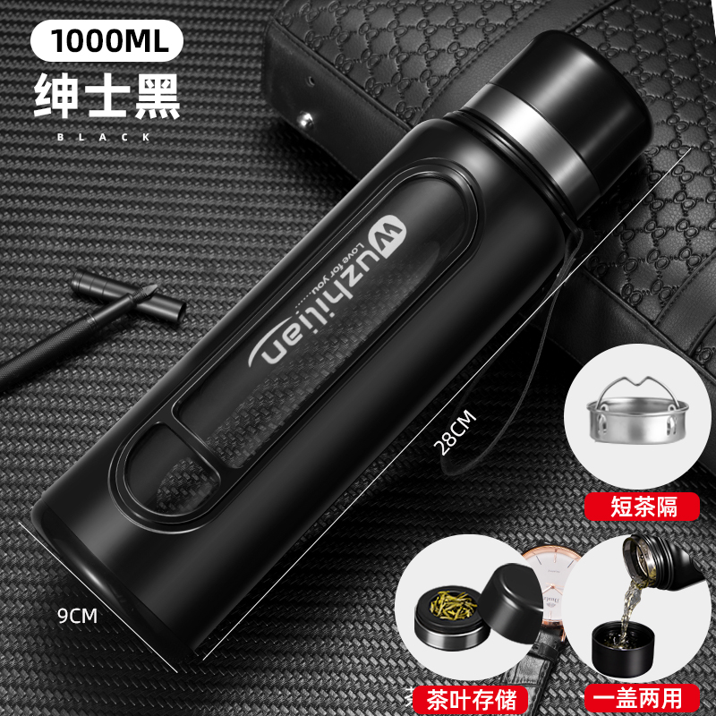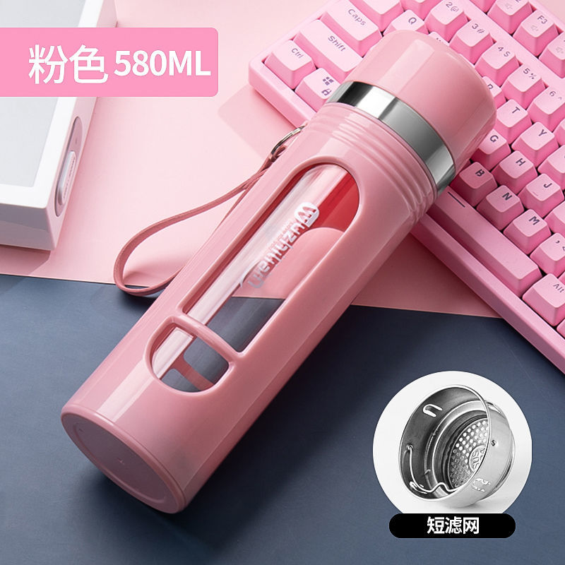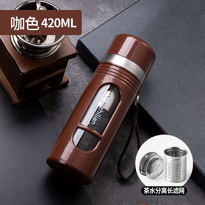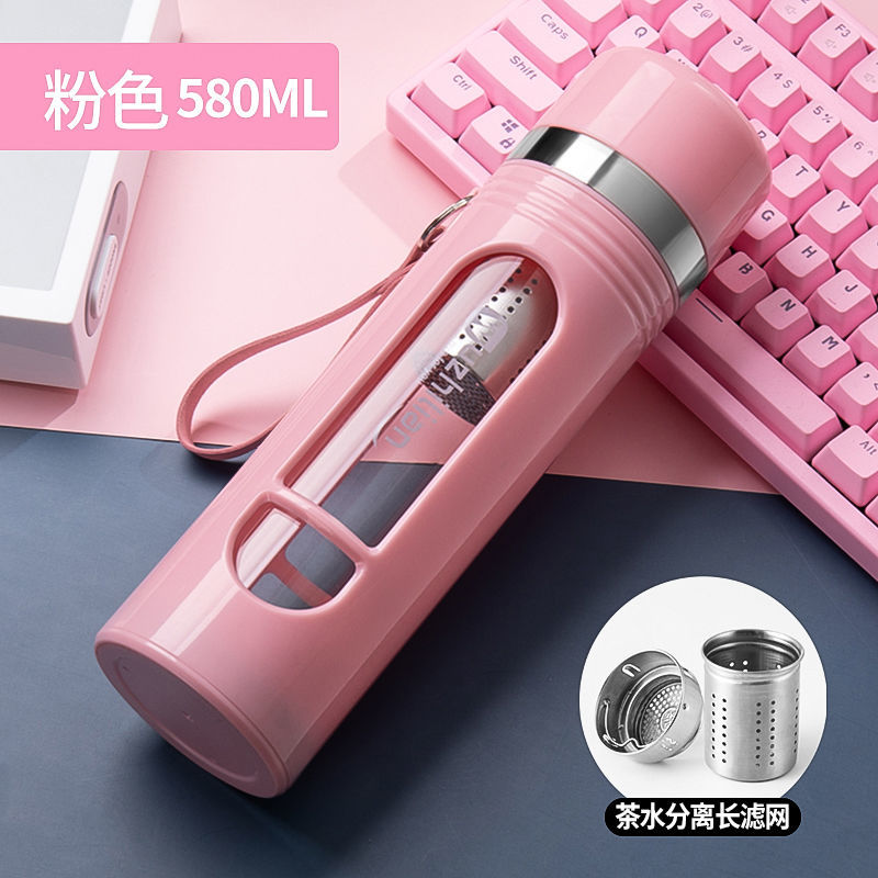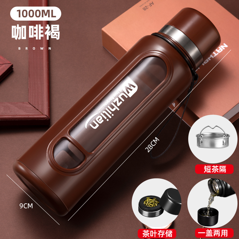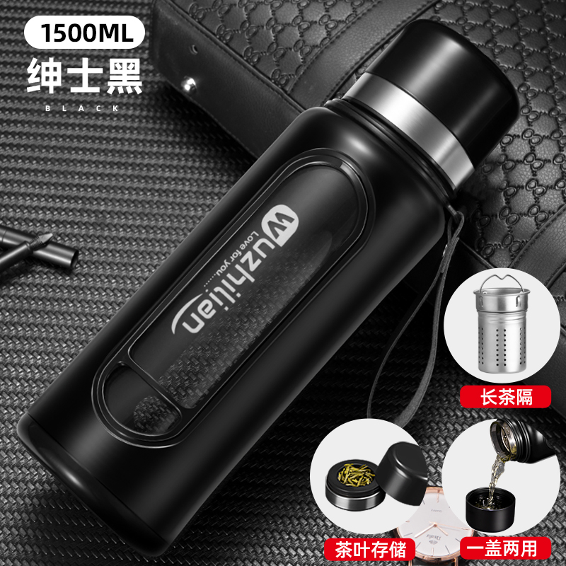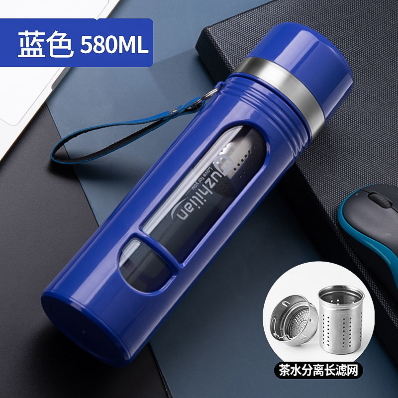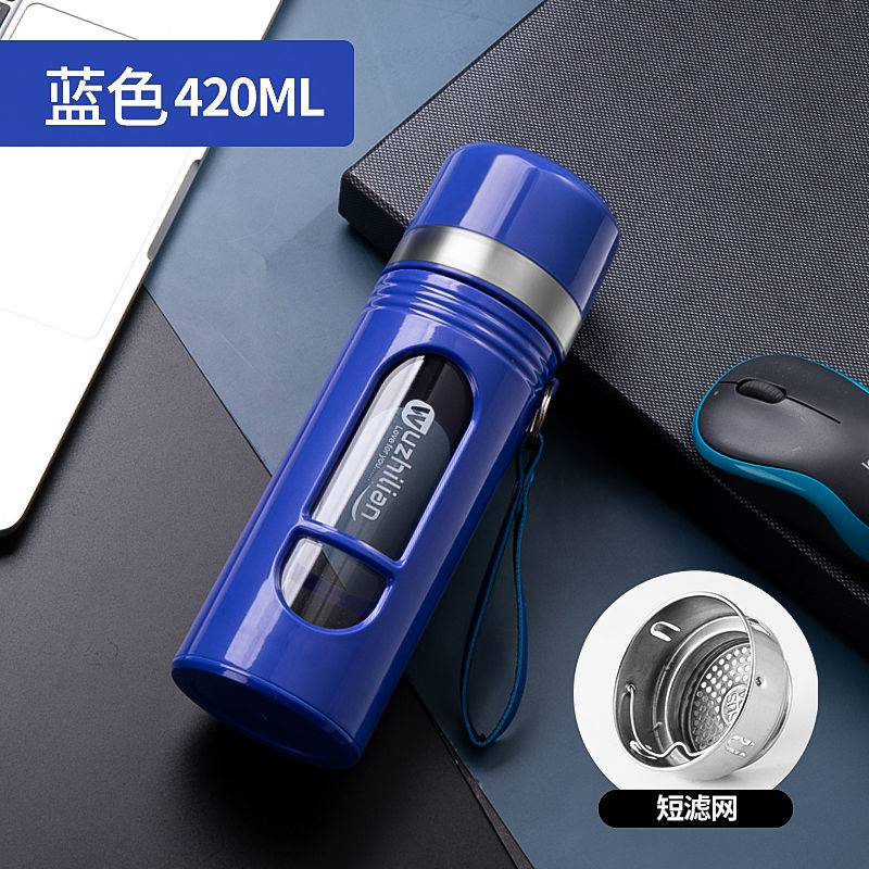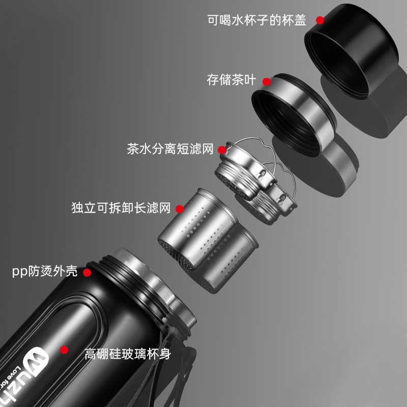 Стеклянная чашка большой емкости, чашка для воды, устойчивая к падению и высоким температурам, бытовая двухслойная уличная чашка для воды с крышкой, мужская чашка для чая и воды