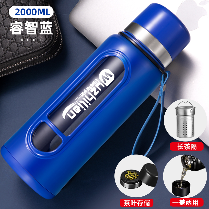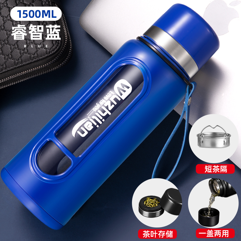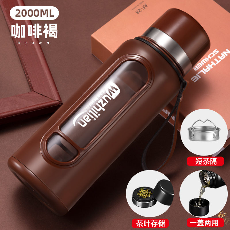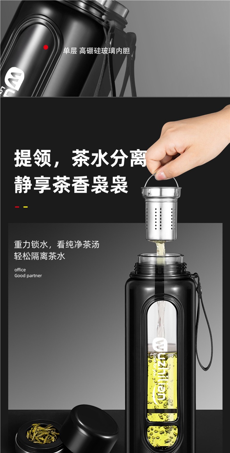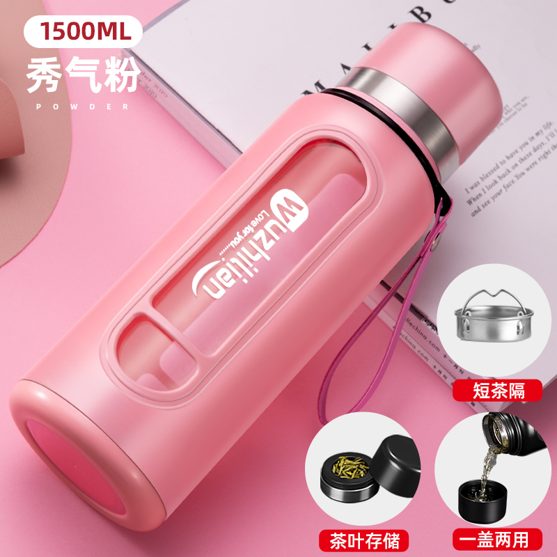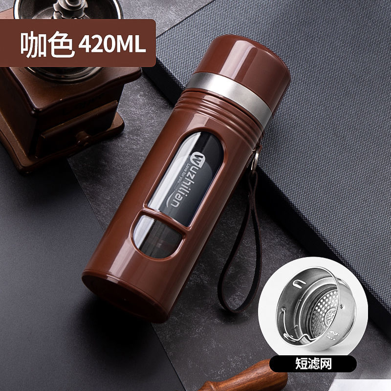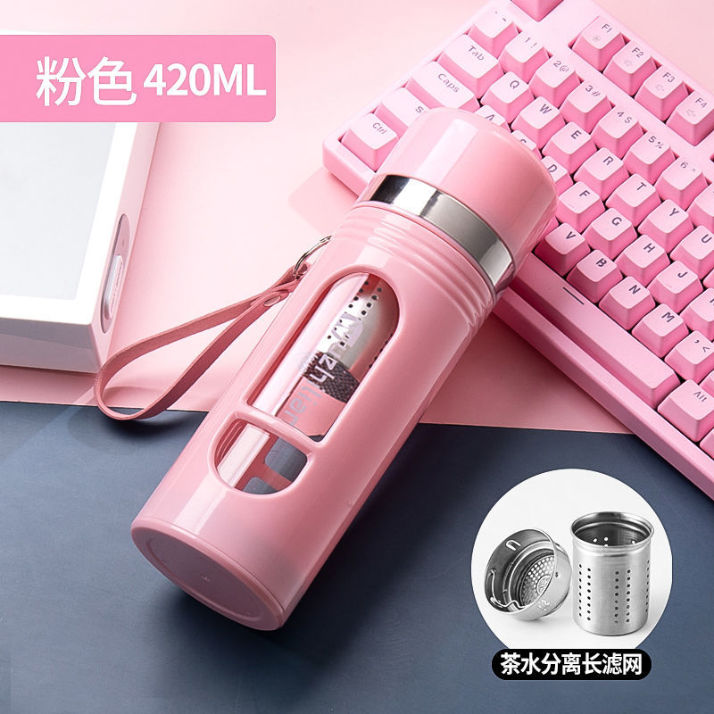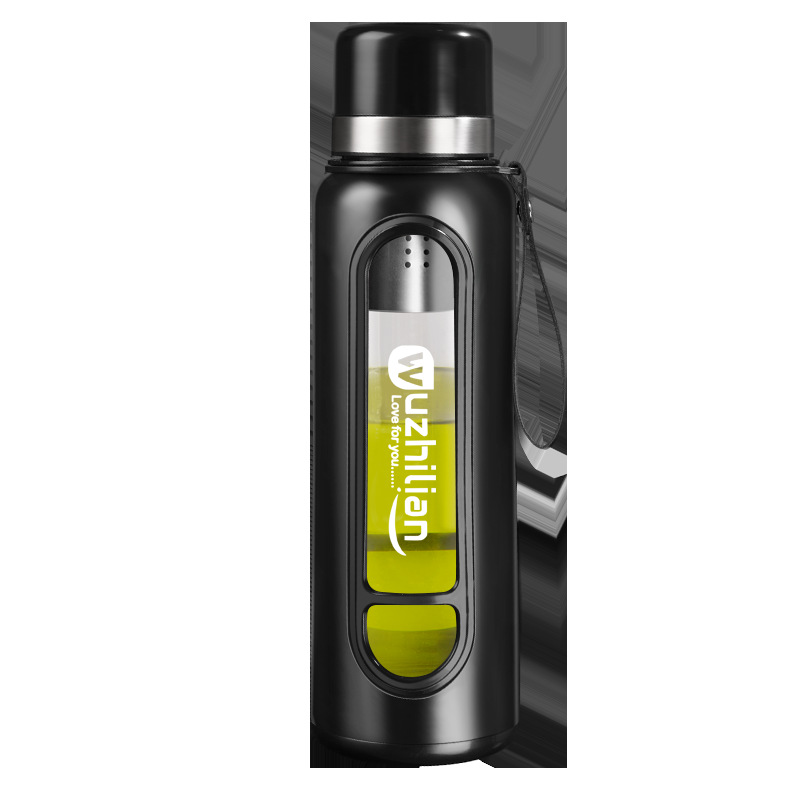 Стеклянная чашка большой емкости, чашка для воды, устойчивая к падению и высоким температурам, бытовая двухслойная уличная чашка для воды с крышкой, мужская чашка для чая и воды