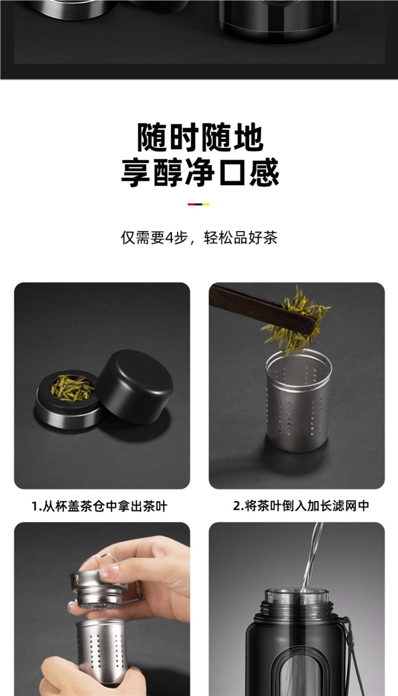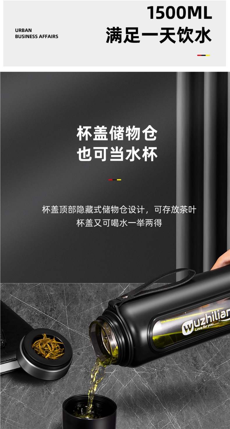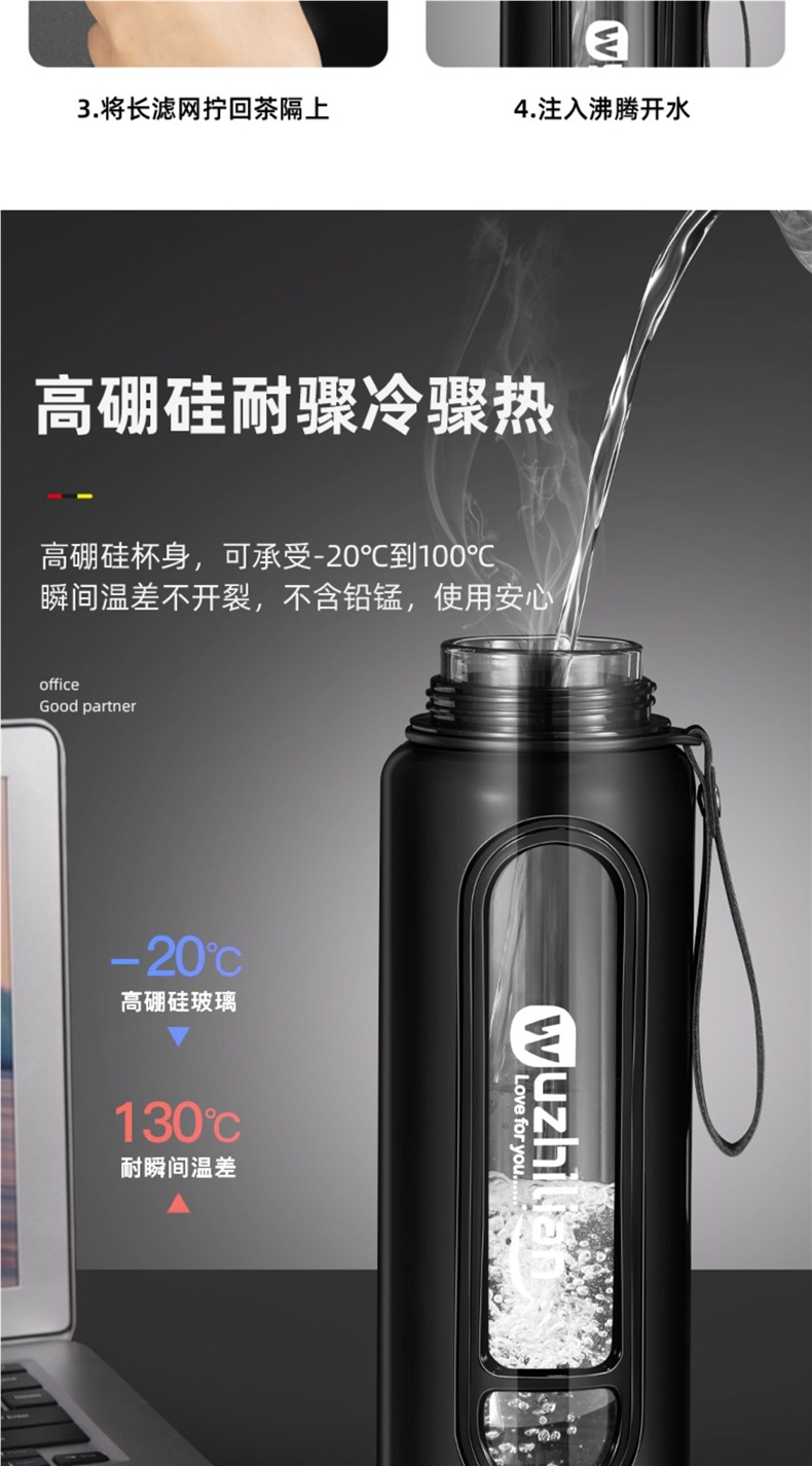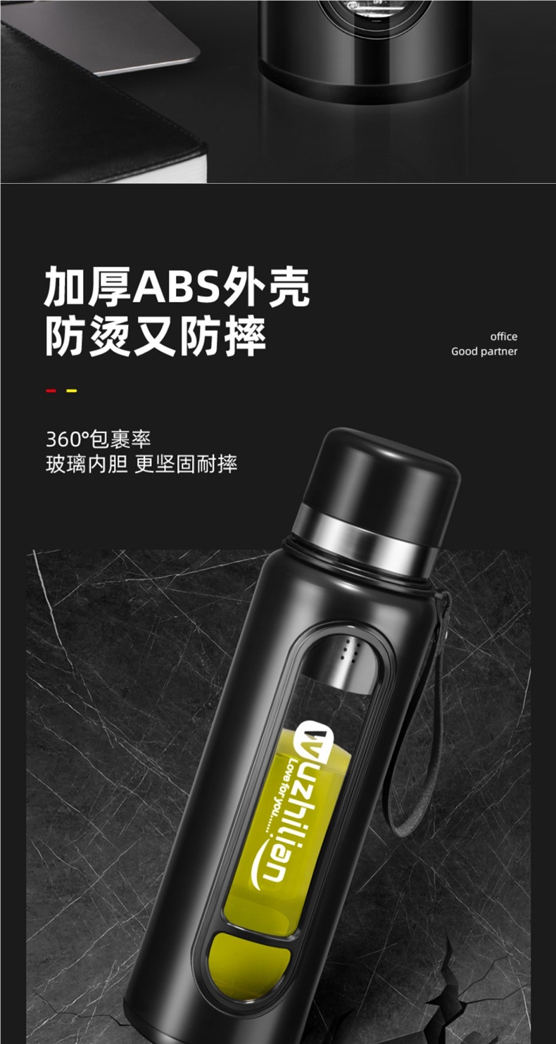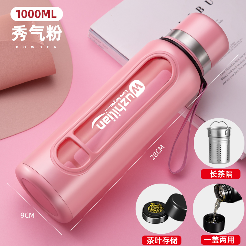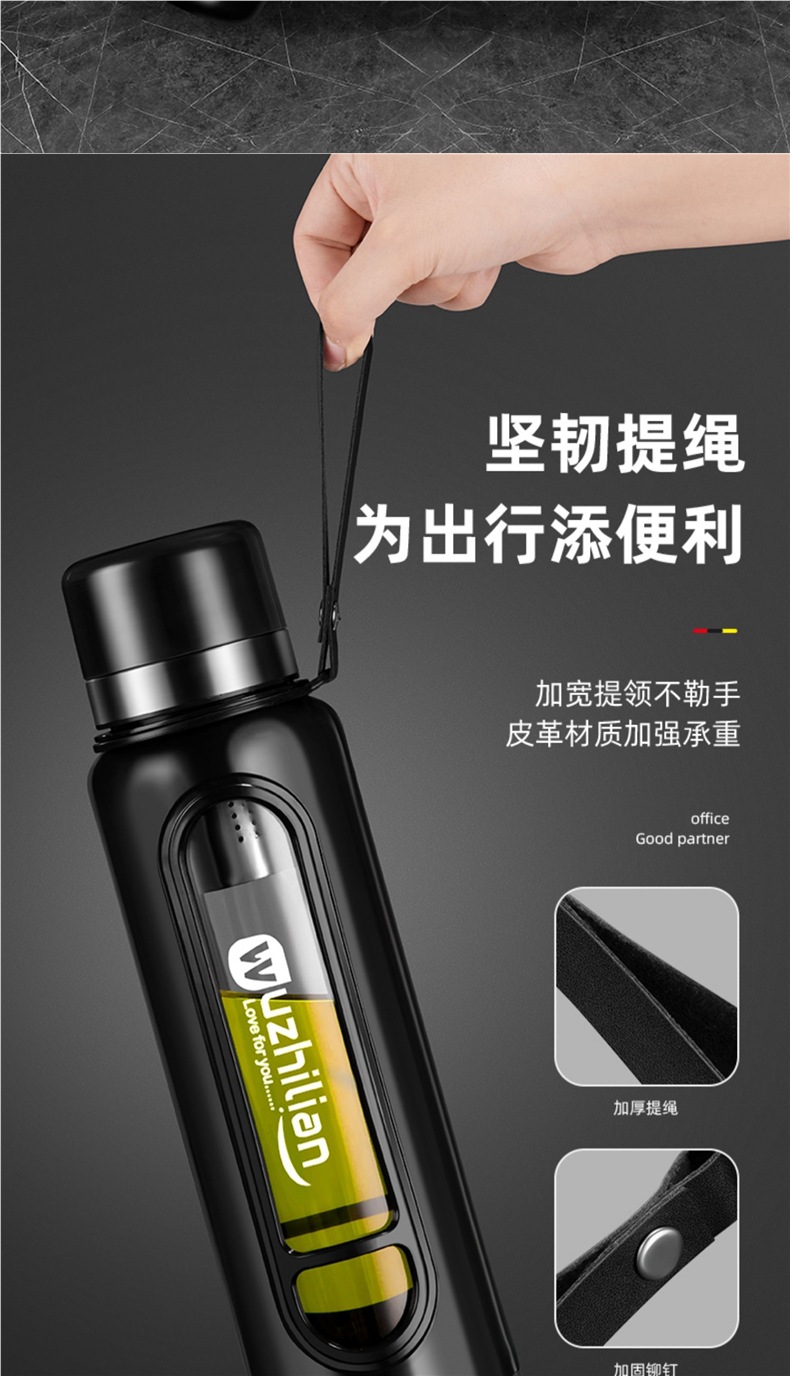Стеклянная чашка большой емкости, чашка для воды, устойчивая к падению и высоким температурам, бытовая двухслойная уличная чашка для воды с крышкой, мужская чашка для чая и воды