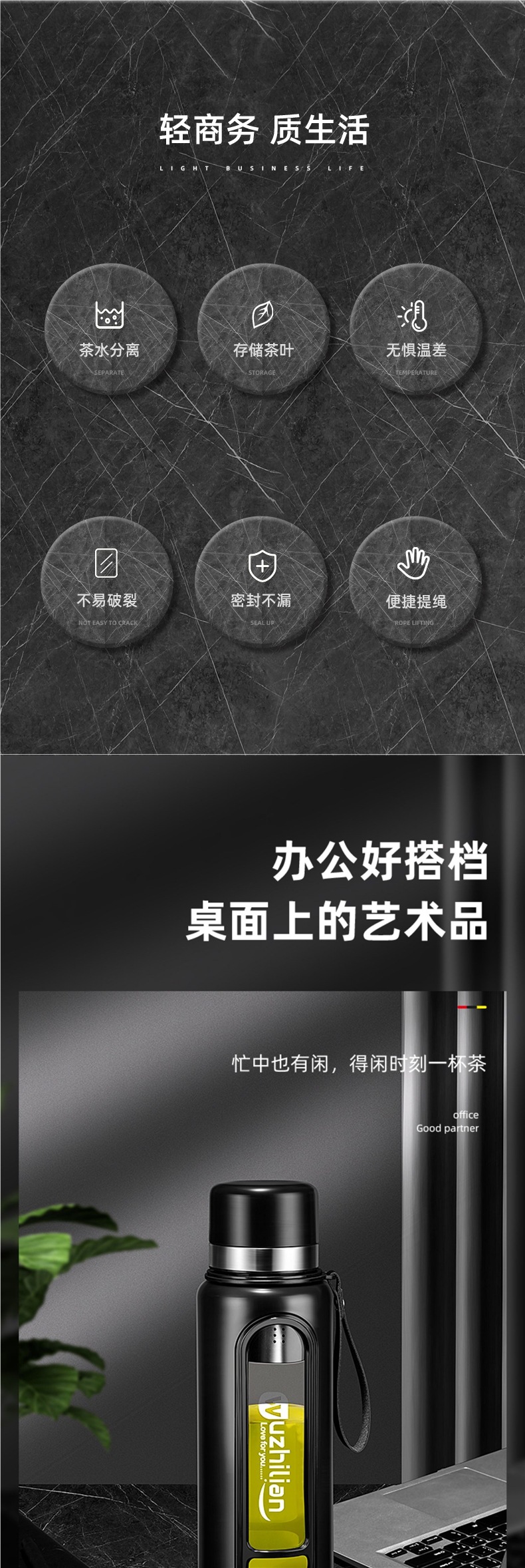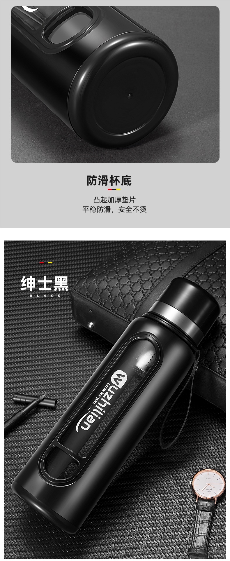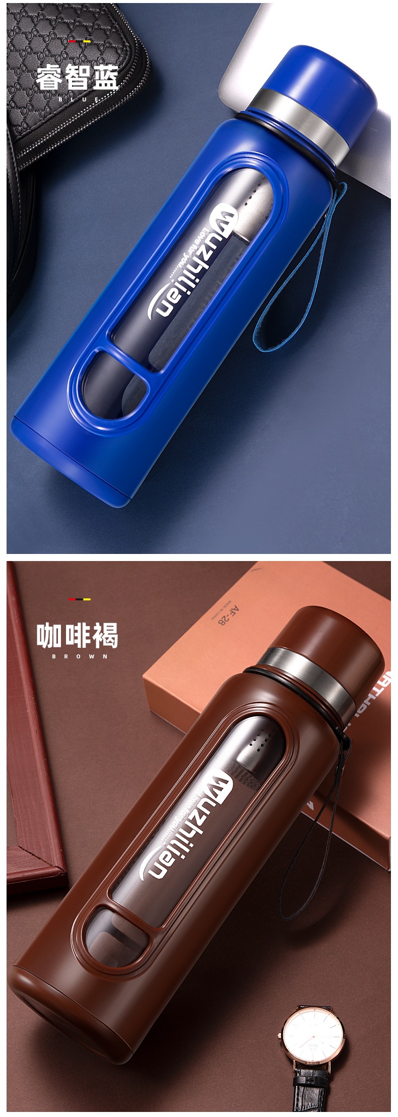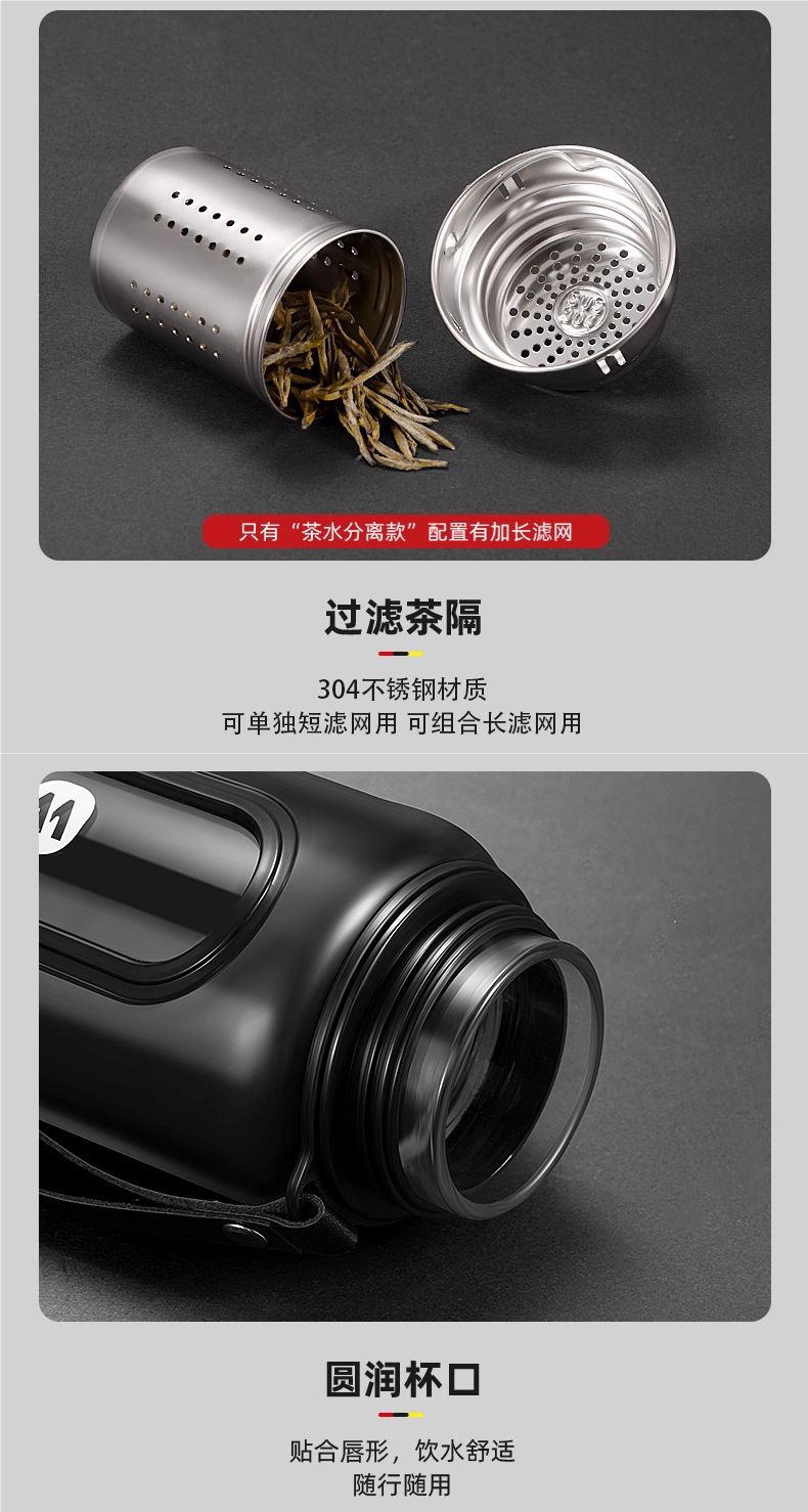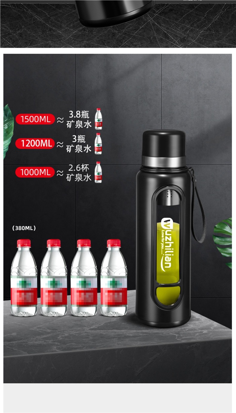 Стеклянная чашка большой емкости, чашка для воды, устойчивая к падению и высоким температурам, бытовая двухслойная уличная чашка для воды с крышкой, мужская чашка для чая и воды