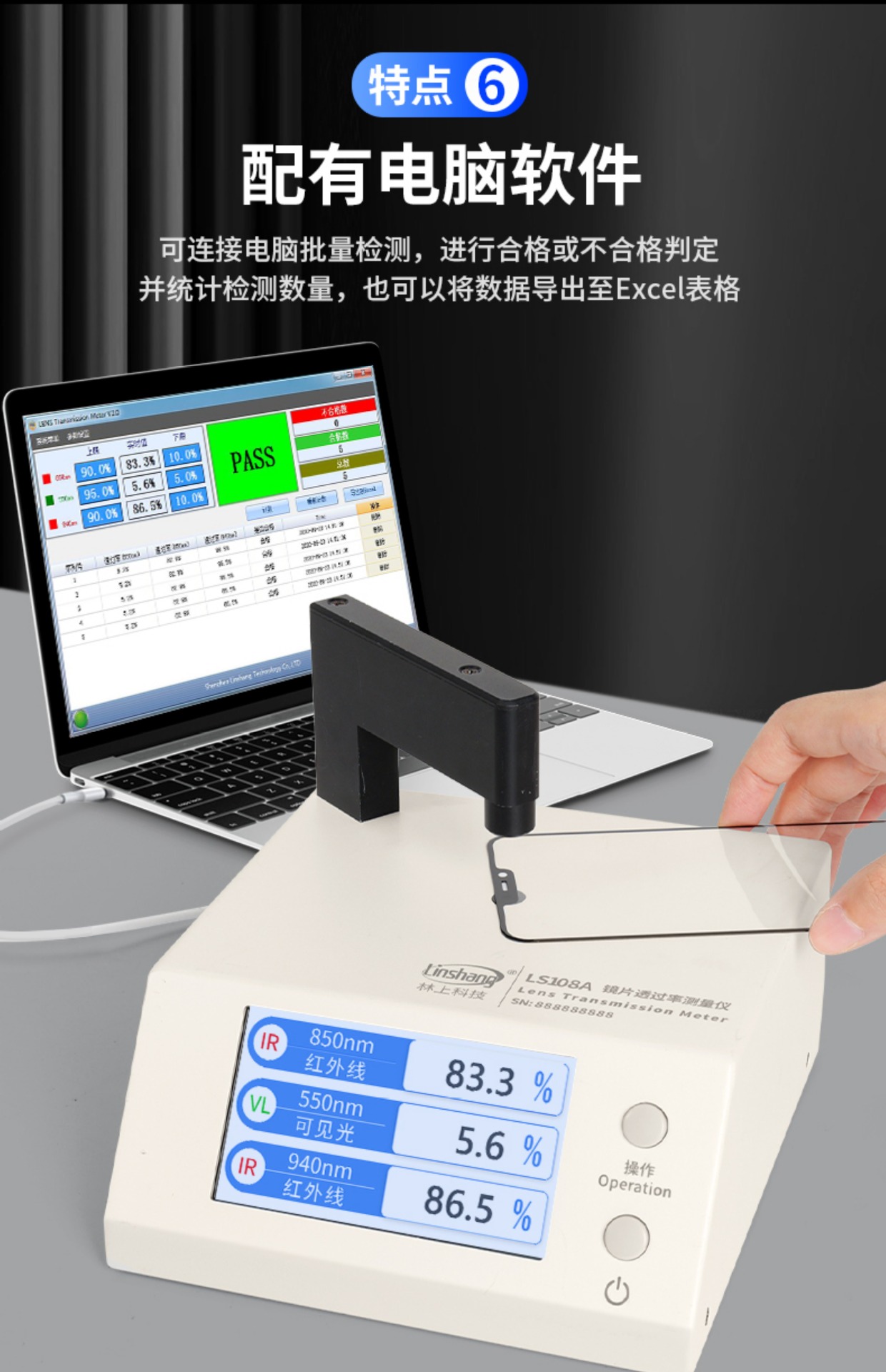 Linshang LS108A прибор для измерения оптической пропускаемости, измеритель пропускаемости линз мобильного телефона, инфракрасный прибор для тестирования чернил