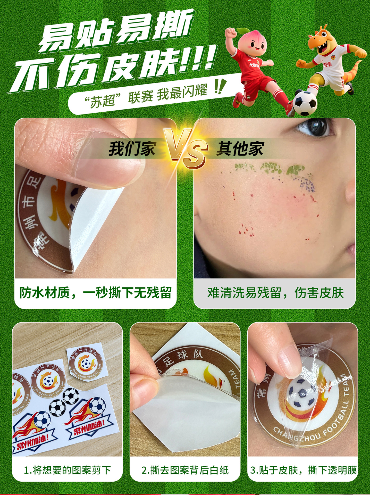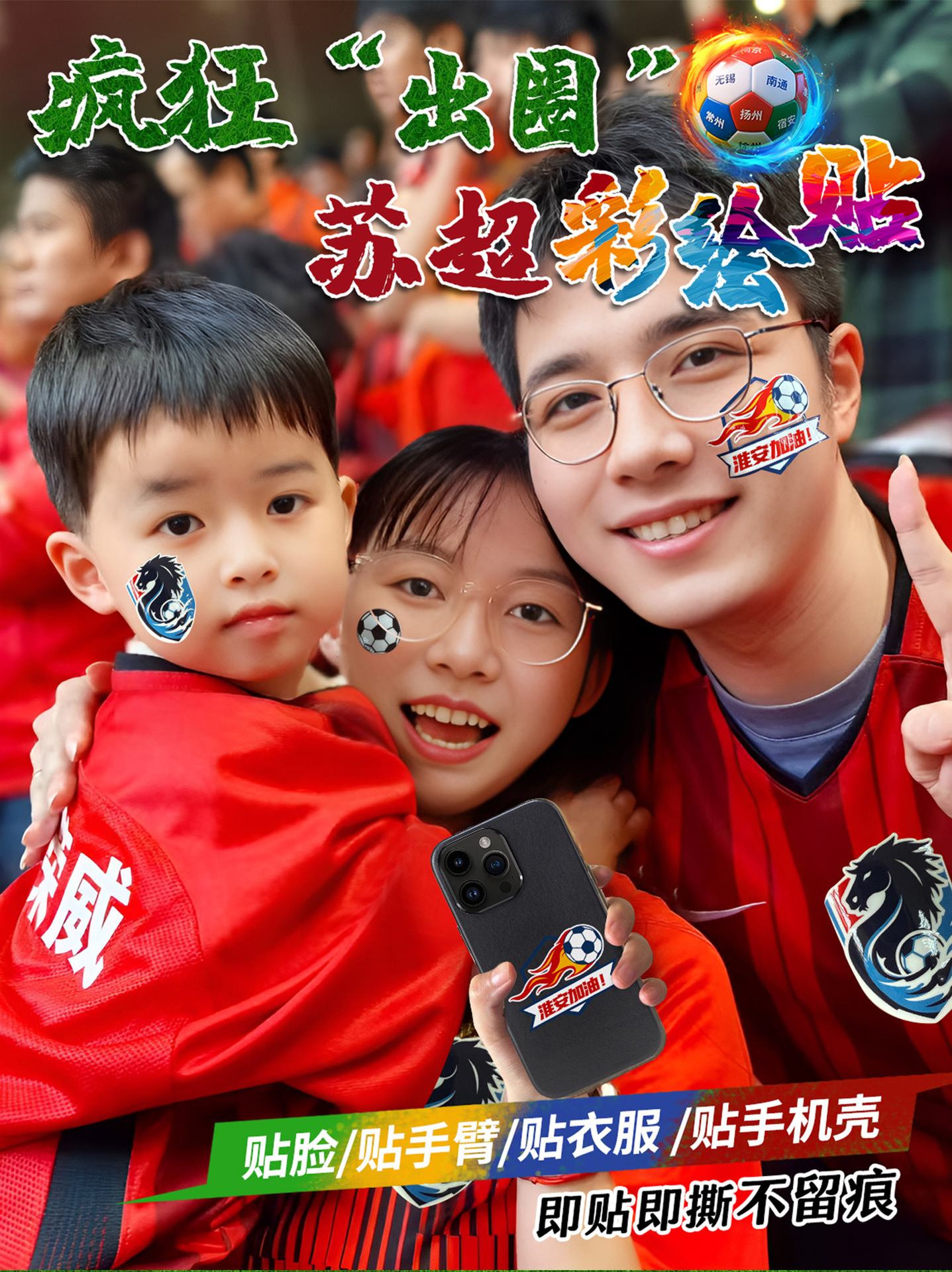 Наклейки с эмблемой команды Суперлиги Ван Кай вокруг футбольной лиги города Цзянсу могут быть сломаны без оставления следов.