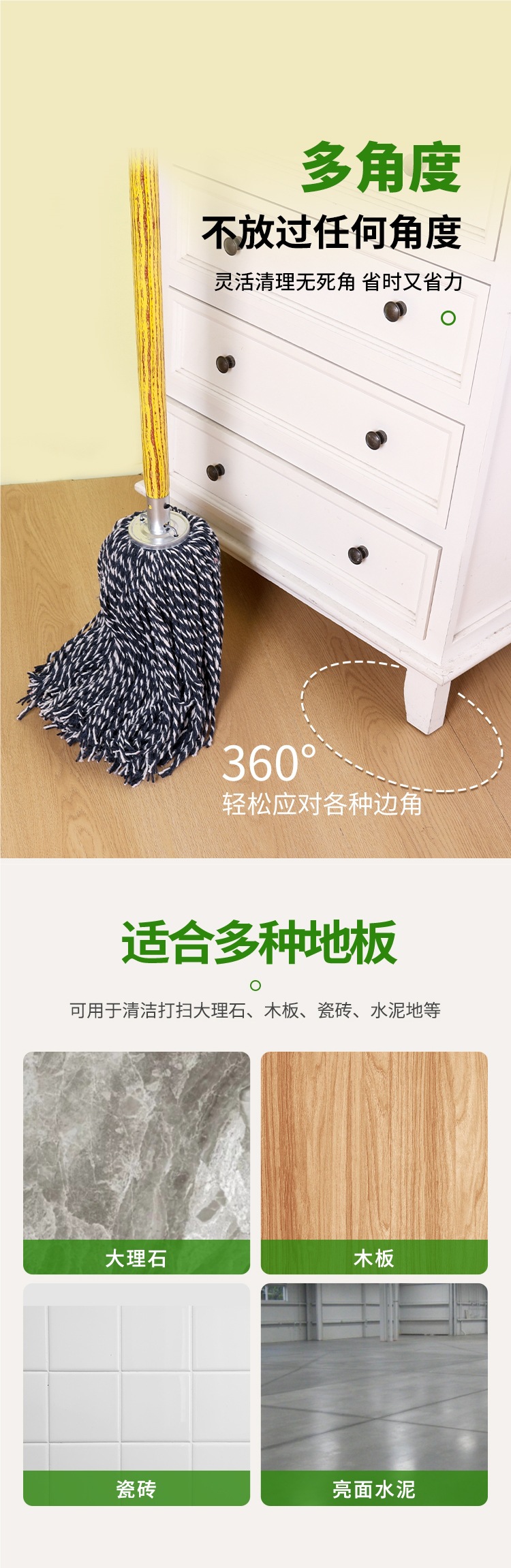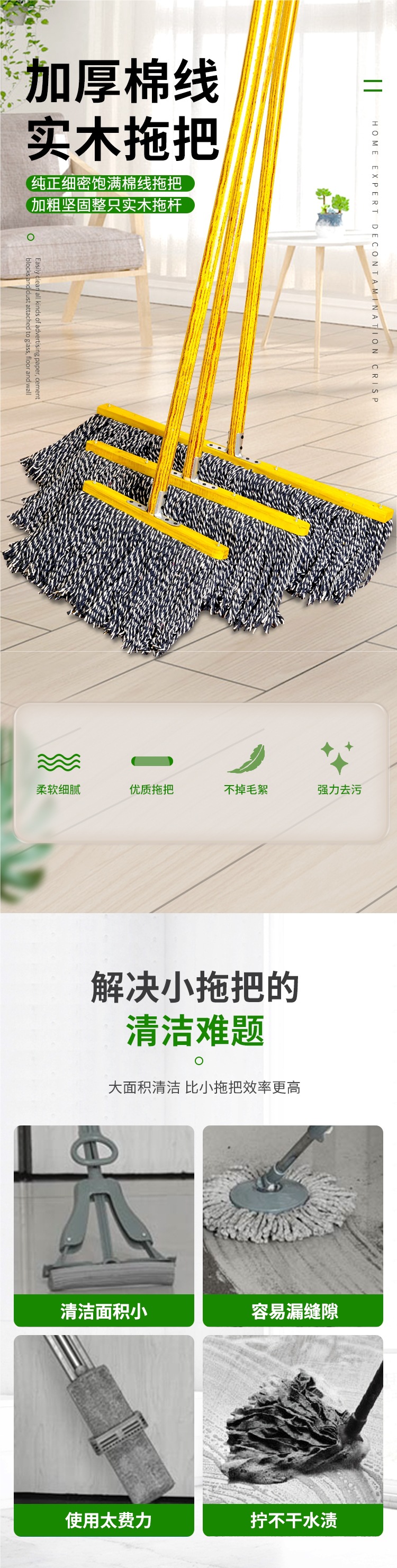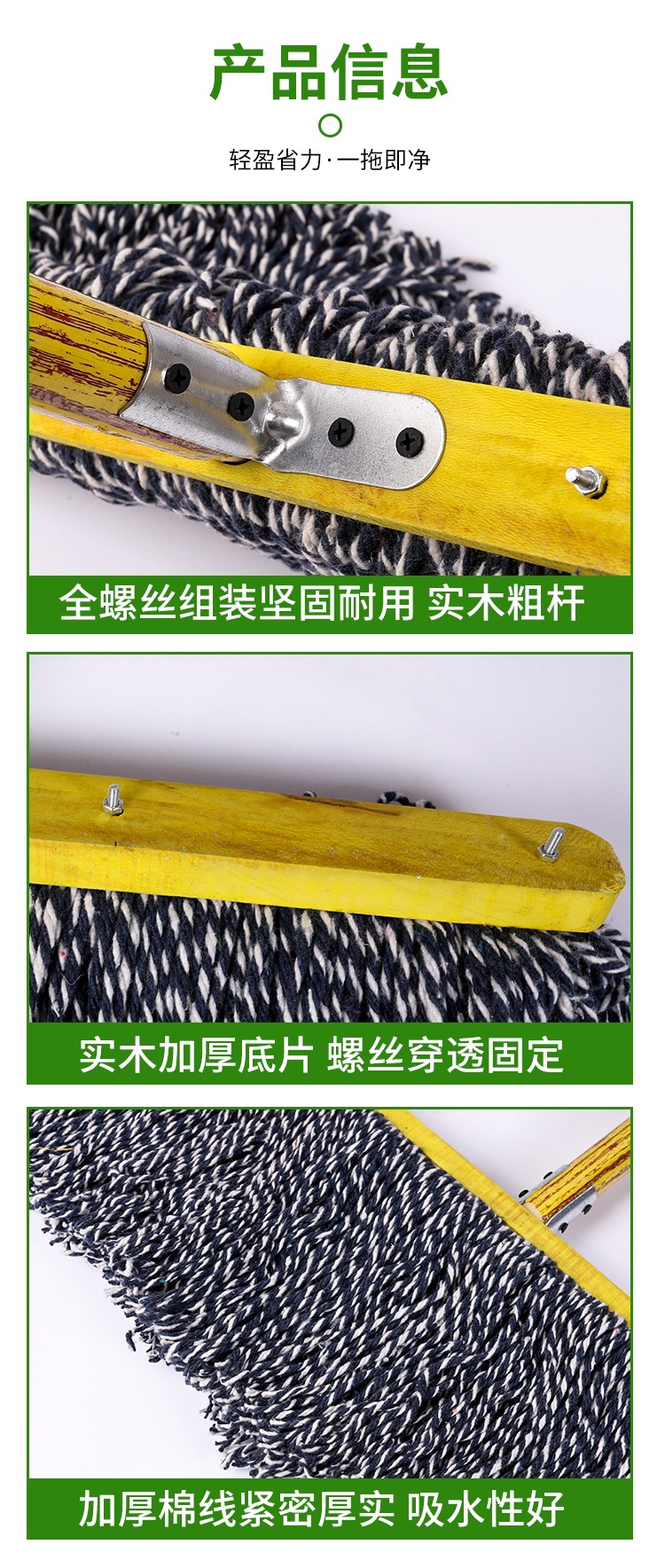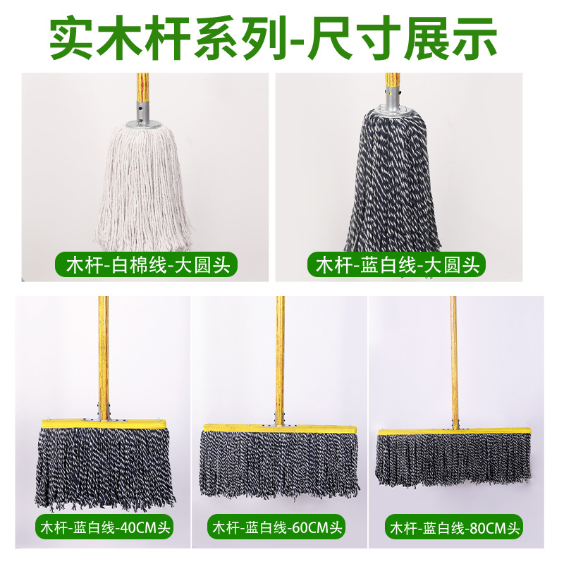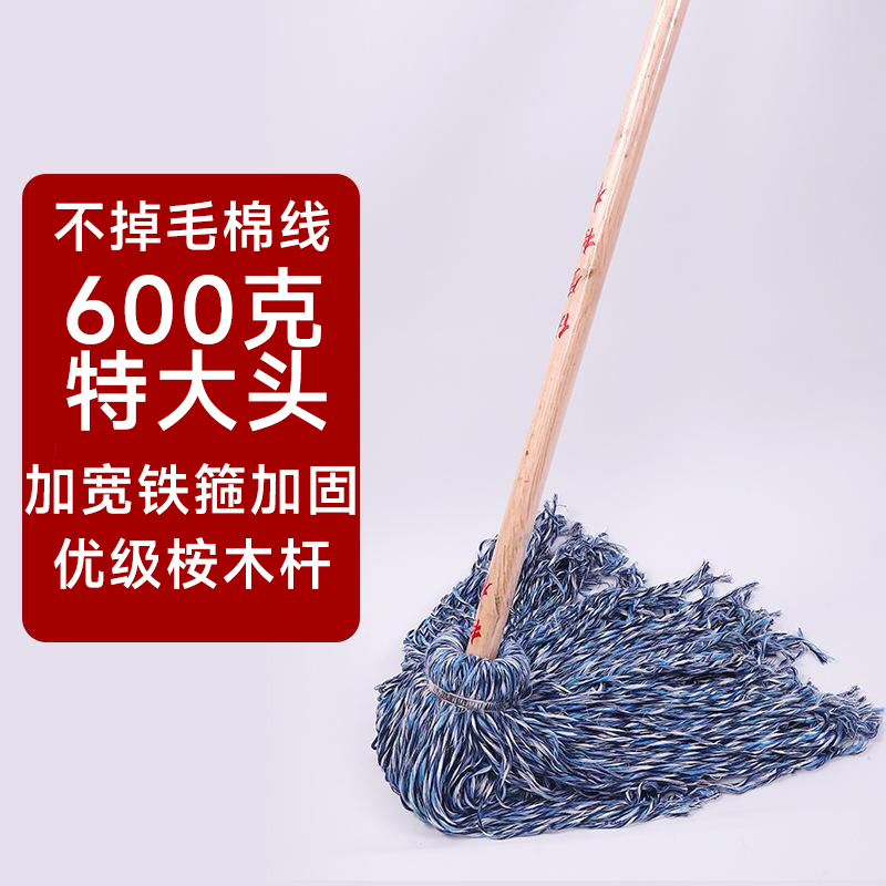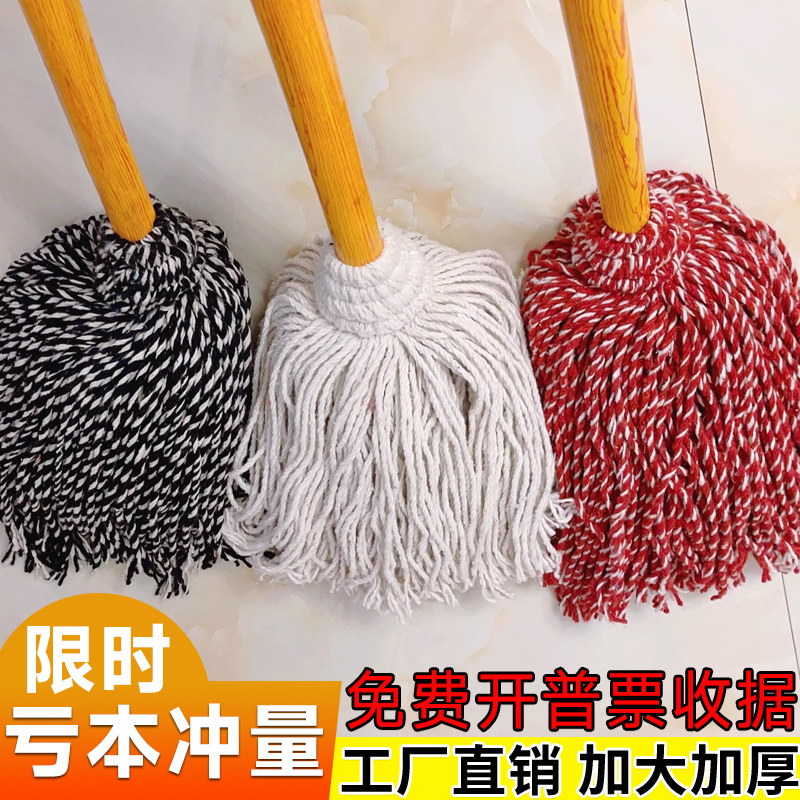 Швабра с хлопчатобумажной нитью для домашнего использования, деревянная ручка, традиционный стиль, швабра для пыли, заводская собственность, абсорбент, стандартная большая швабра, чистый хлопок.