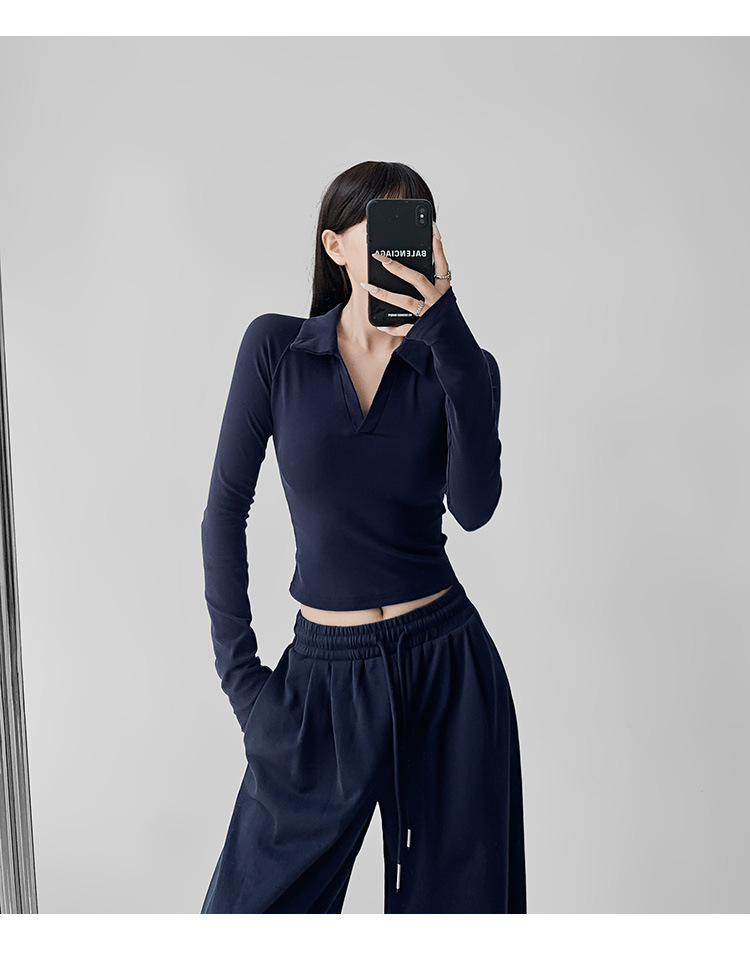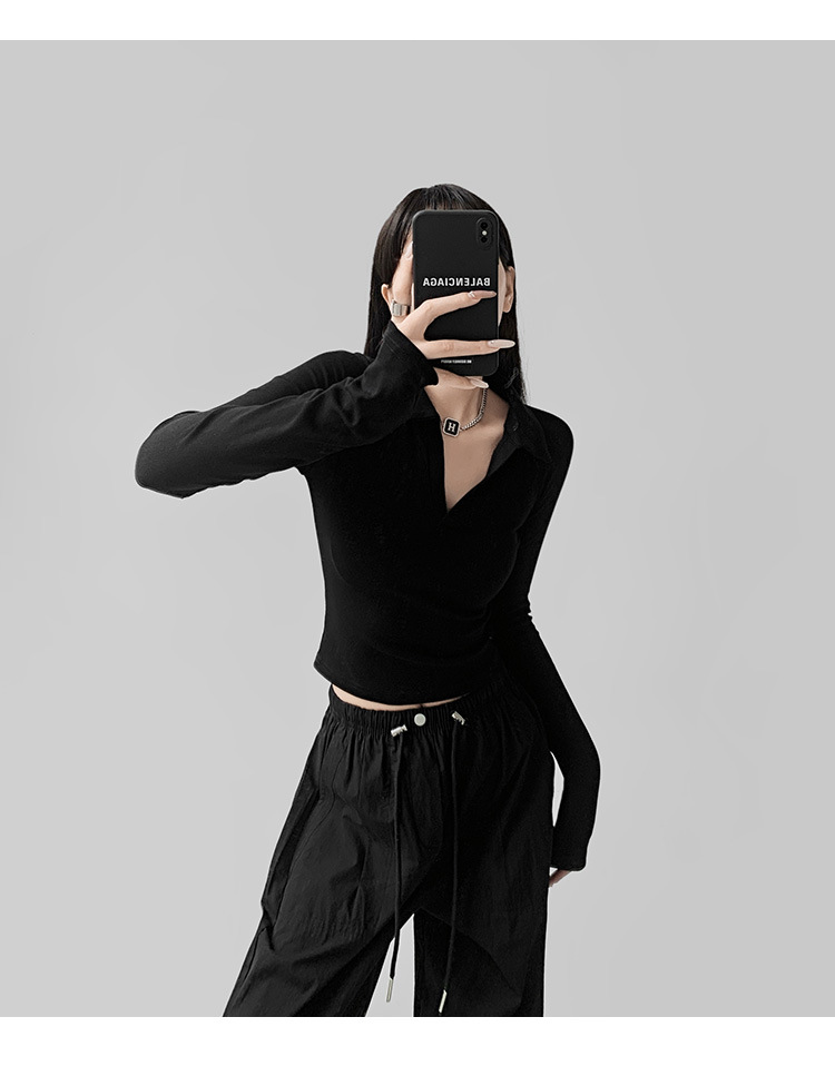 Летняя и весенняя футболка с коротким рукавом для женщин 2025, новая сексуальная майка с V-образным вырезом, облегающий топ, поло с длинным рукавом
