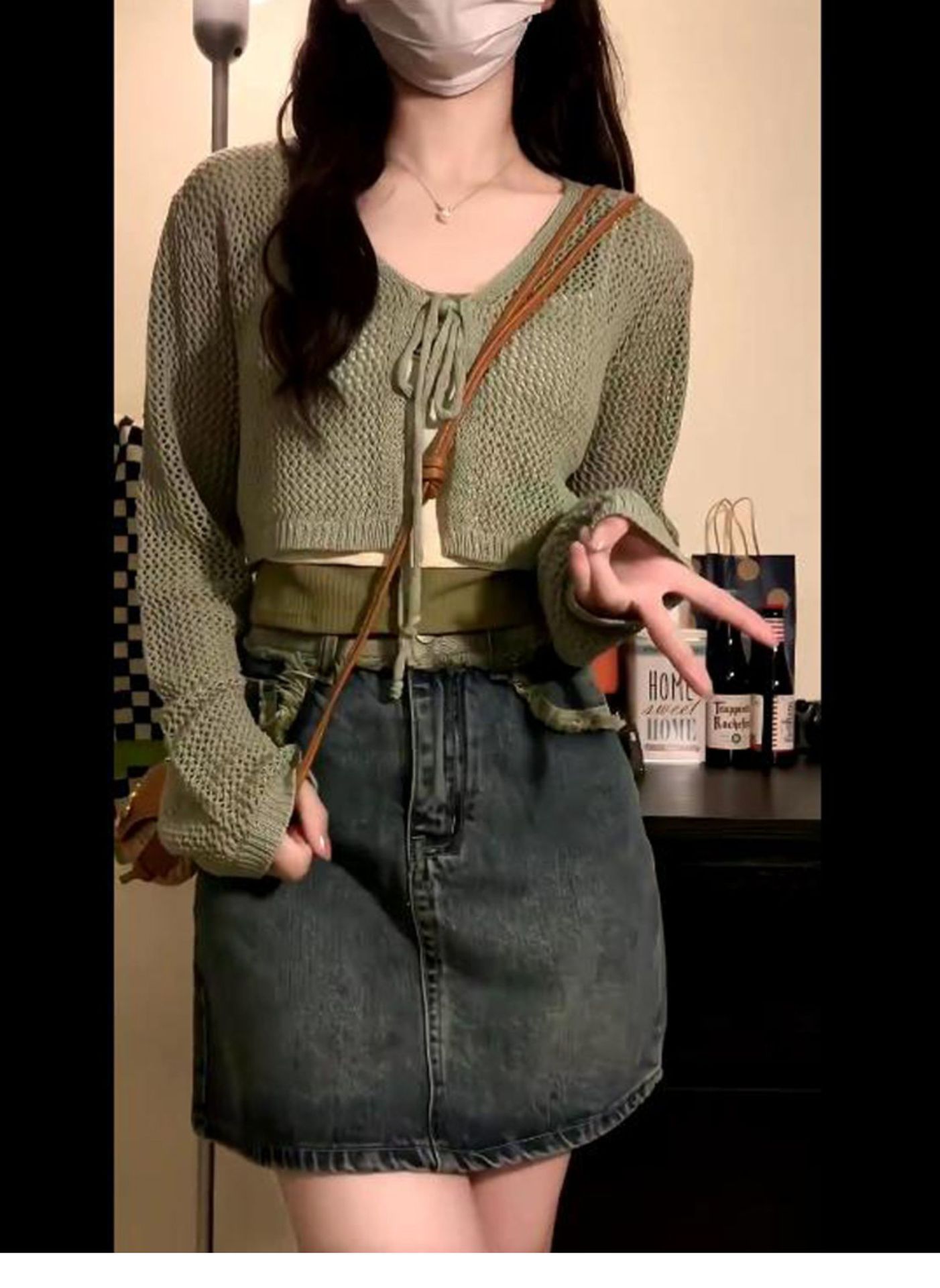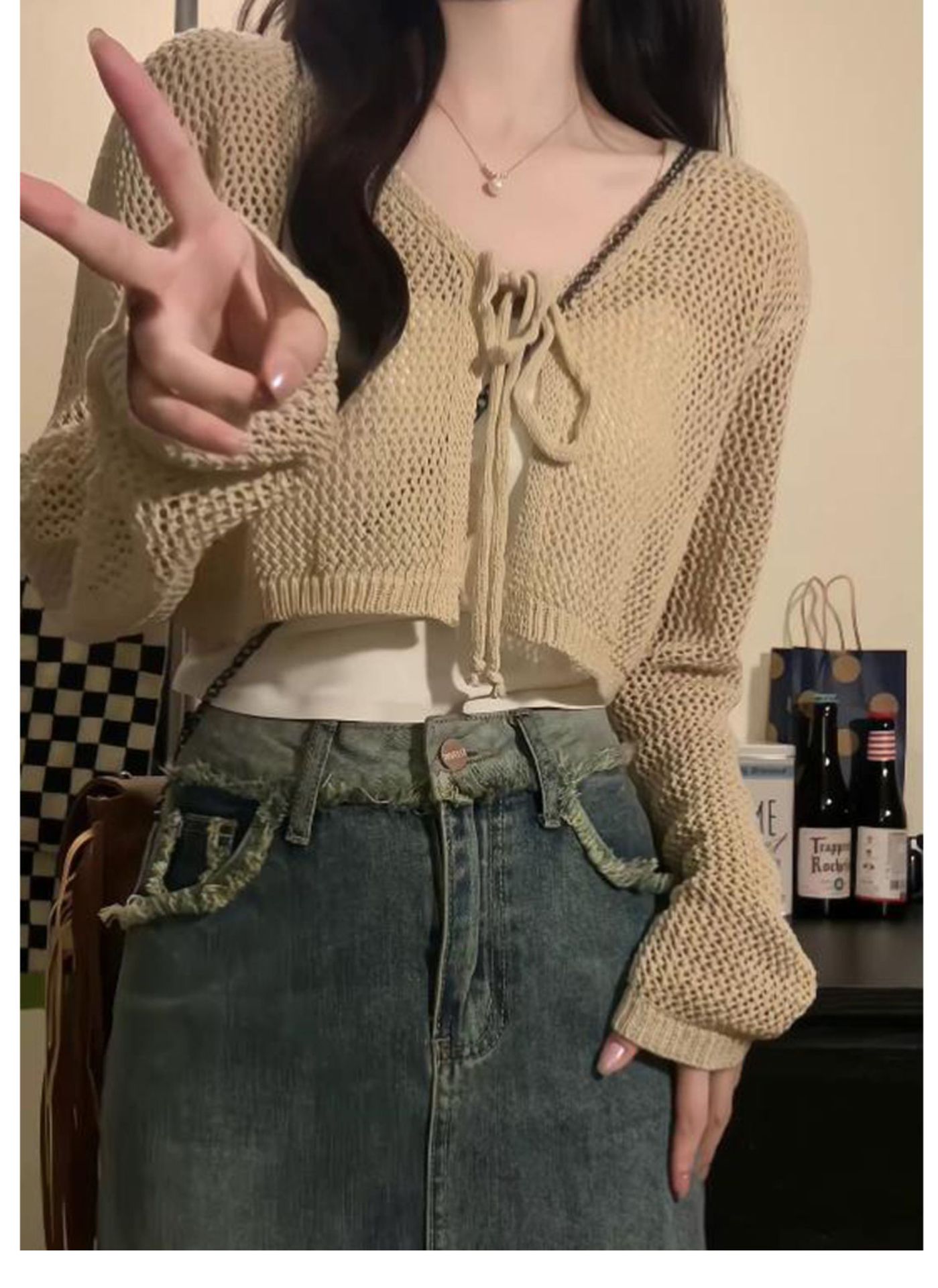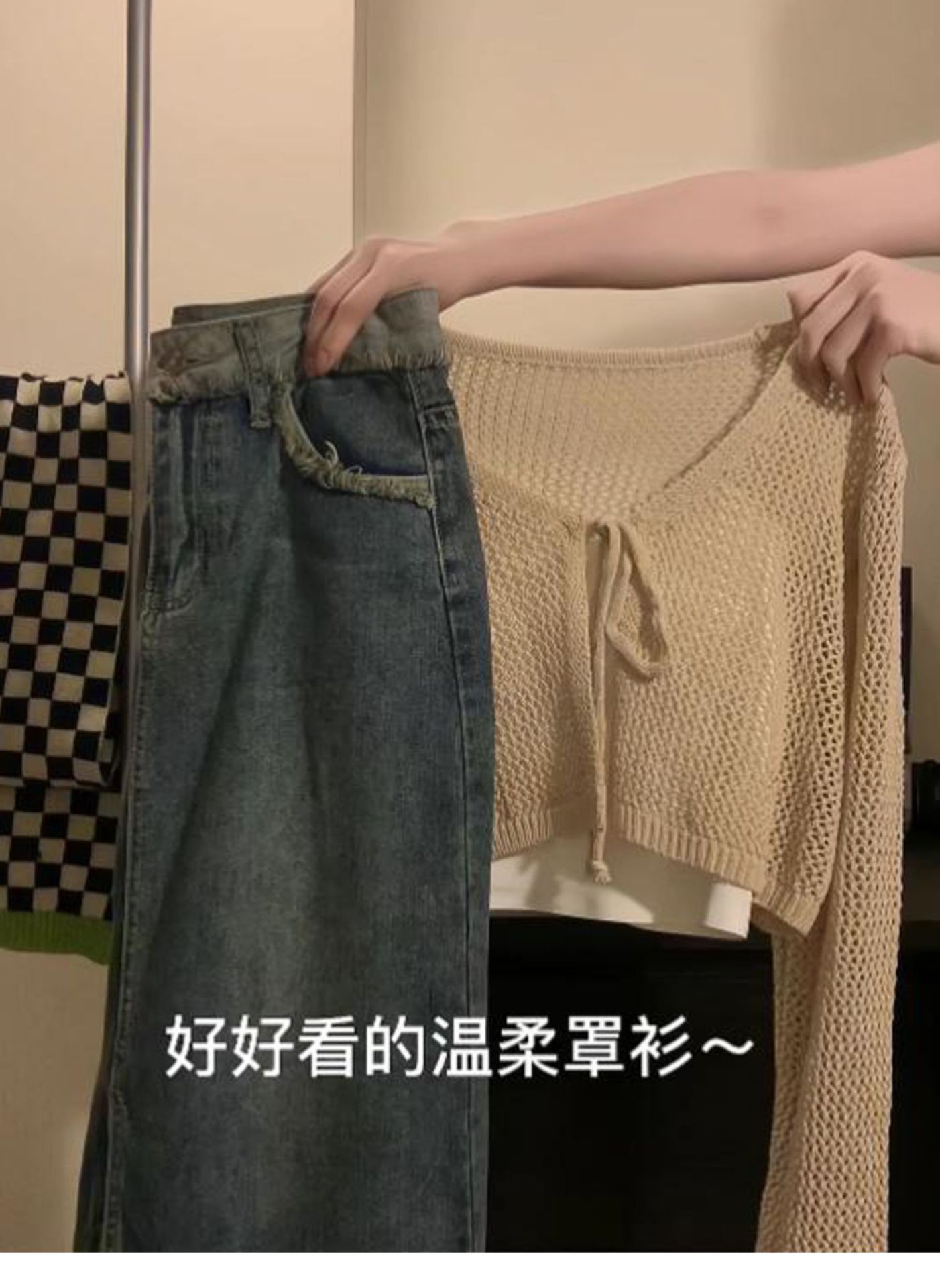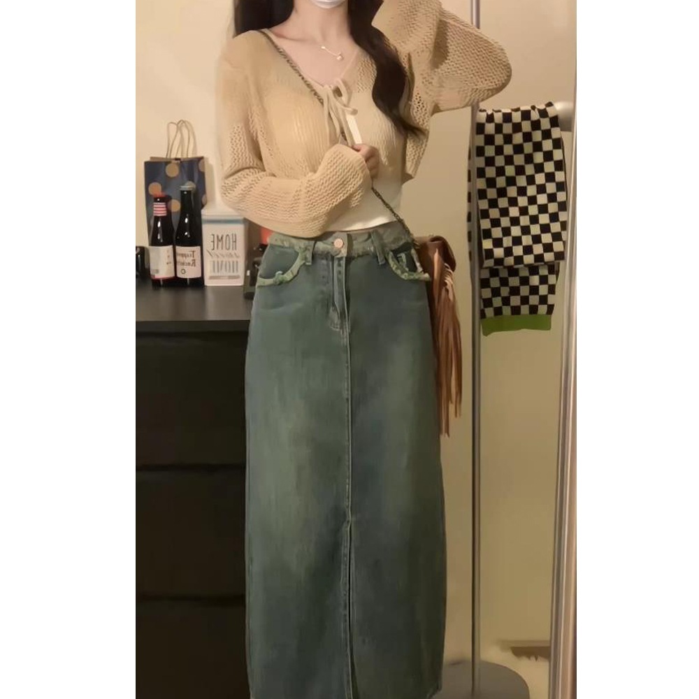 Летний тонкий солнцезащитный кардиган для женщин с юбкой на подтяжках, блузкой-шалью, вязаным маленьким жилетом, короткой курткой с вырезами.