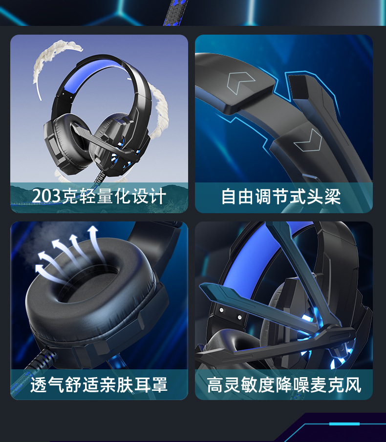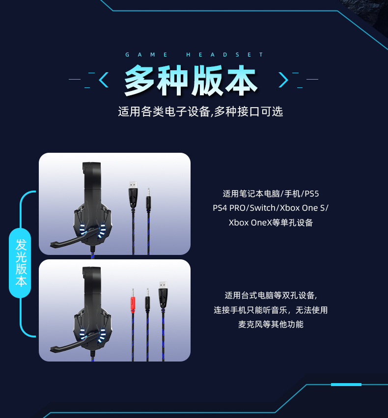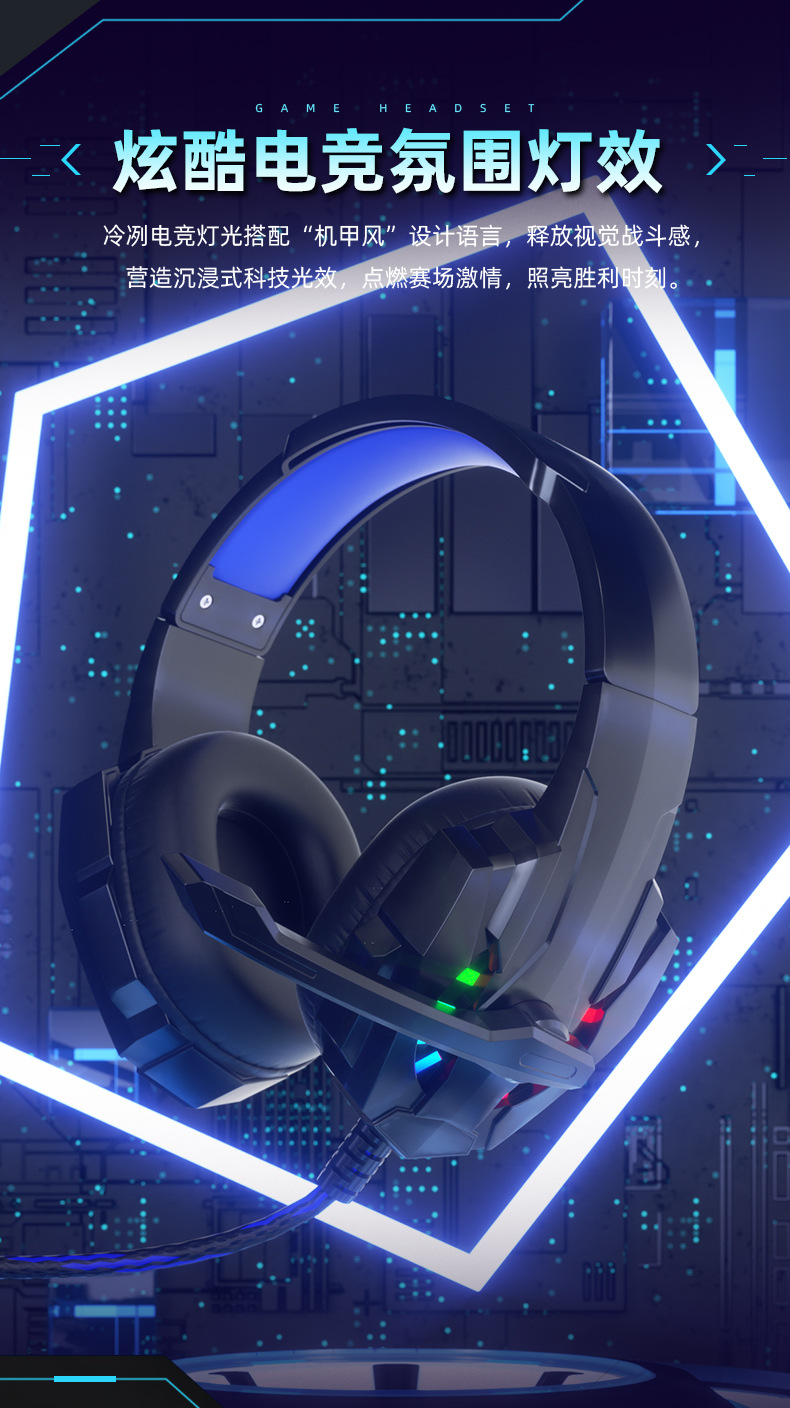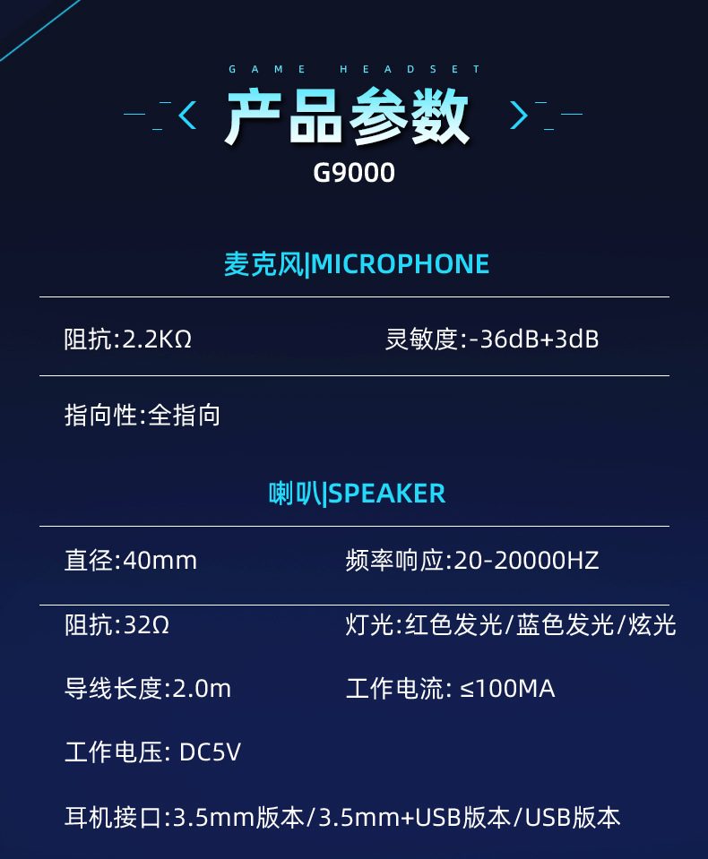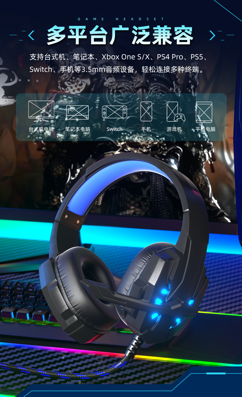 Красочные огни (игровая гарнитура с одним интерфейсом 3,5 мм + USB); Красный свет (игровая гарнитура с одним интерфейсом 3,5 мм + USB); Синий свет (игровая гарнитура с одним интерфейсом 3,5 мм + USB)