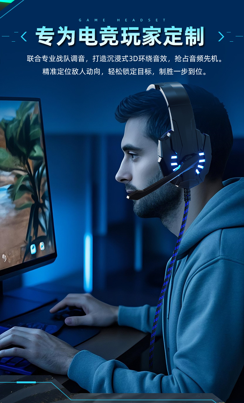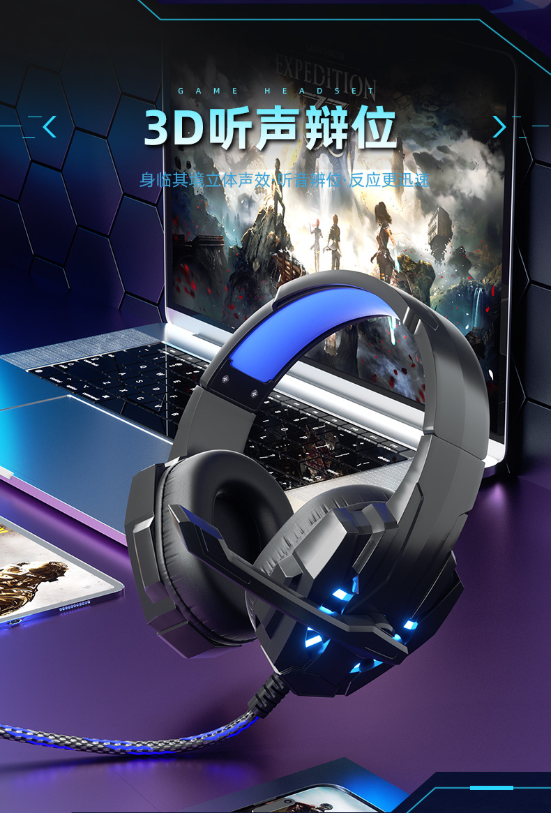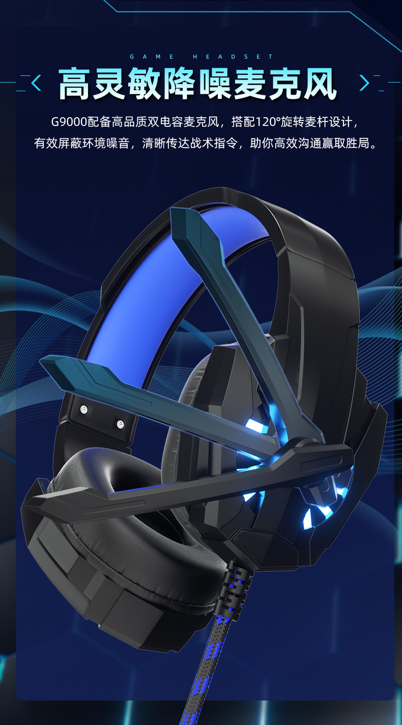 Популярная кросс-граничная гарнитура G9000 для киберспорта с RGB-подсветкой, проводная гарнитура, готовая к использованию, заводская сборка.
