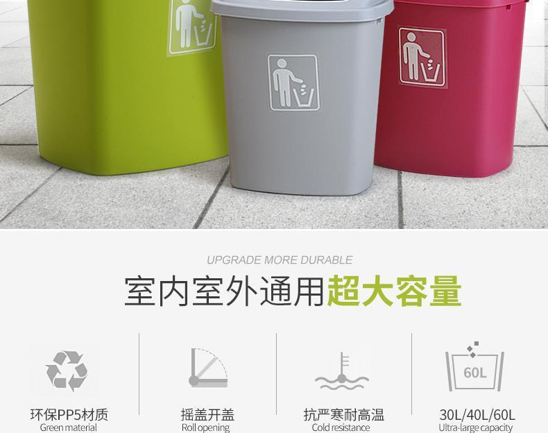 Кухонный пластиковый мусорный бак для домашнего использования с откидной крышкой, большой уличный мусорный бак, креативный офис, торговый центр, отель с откидной крышкой.