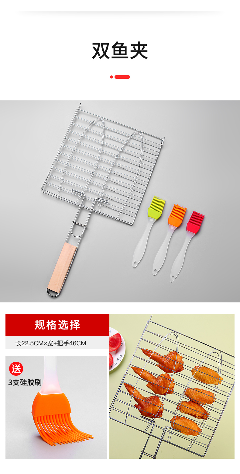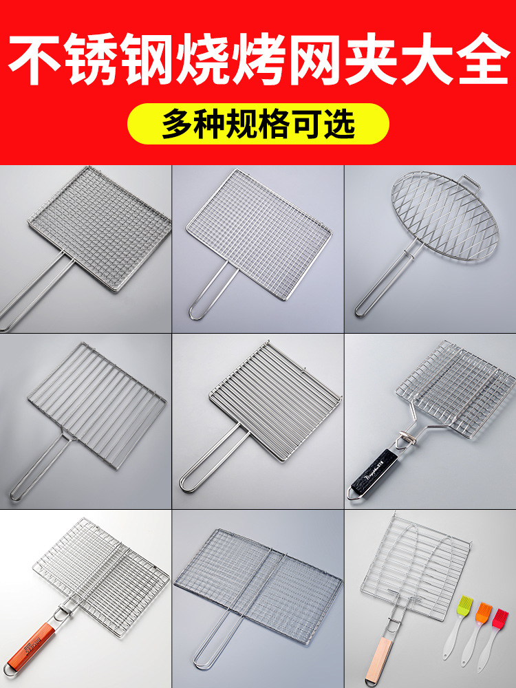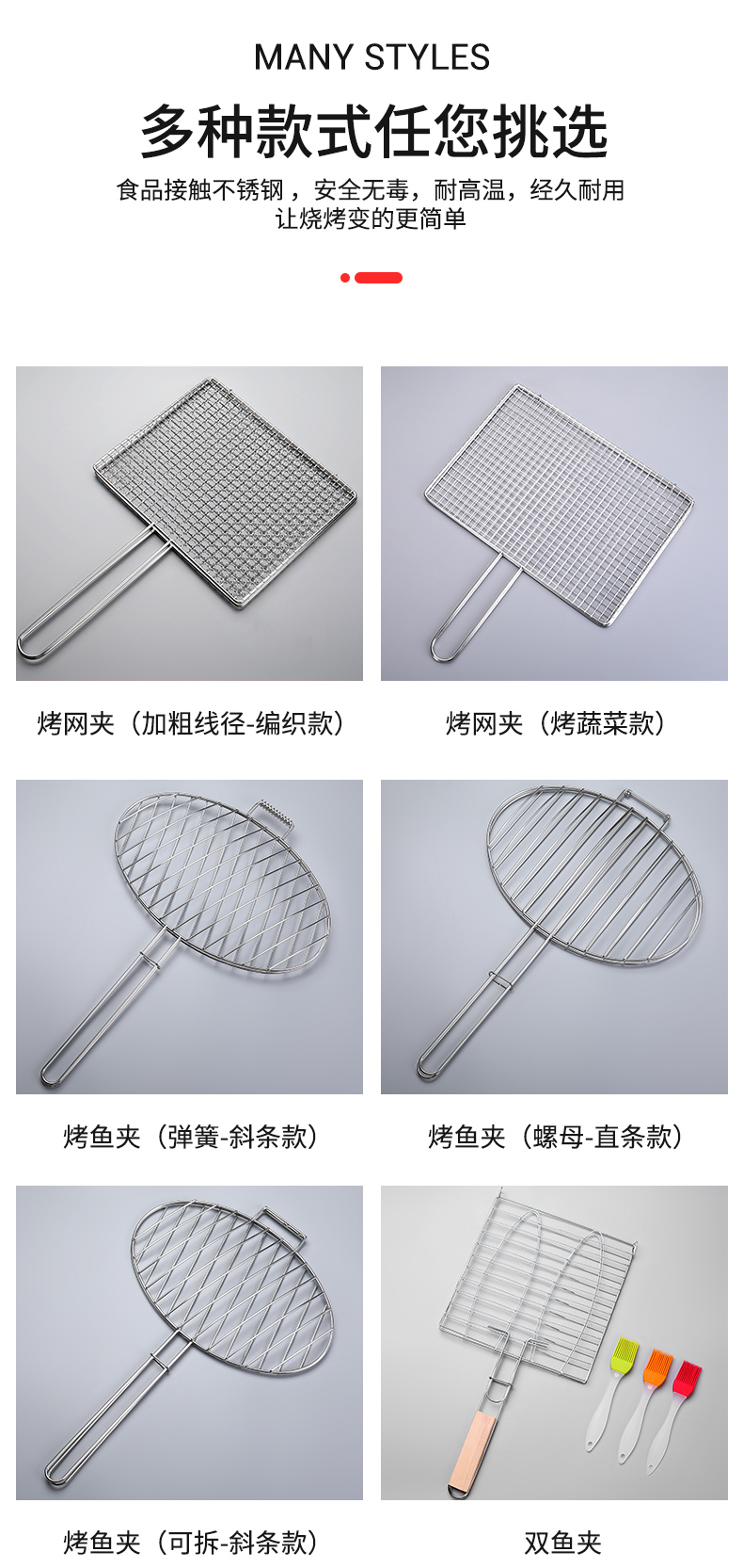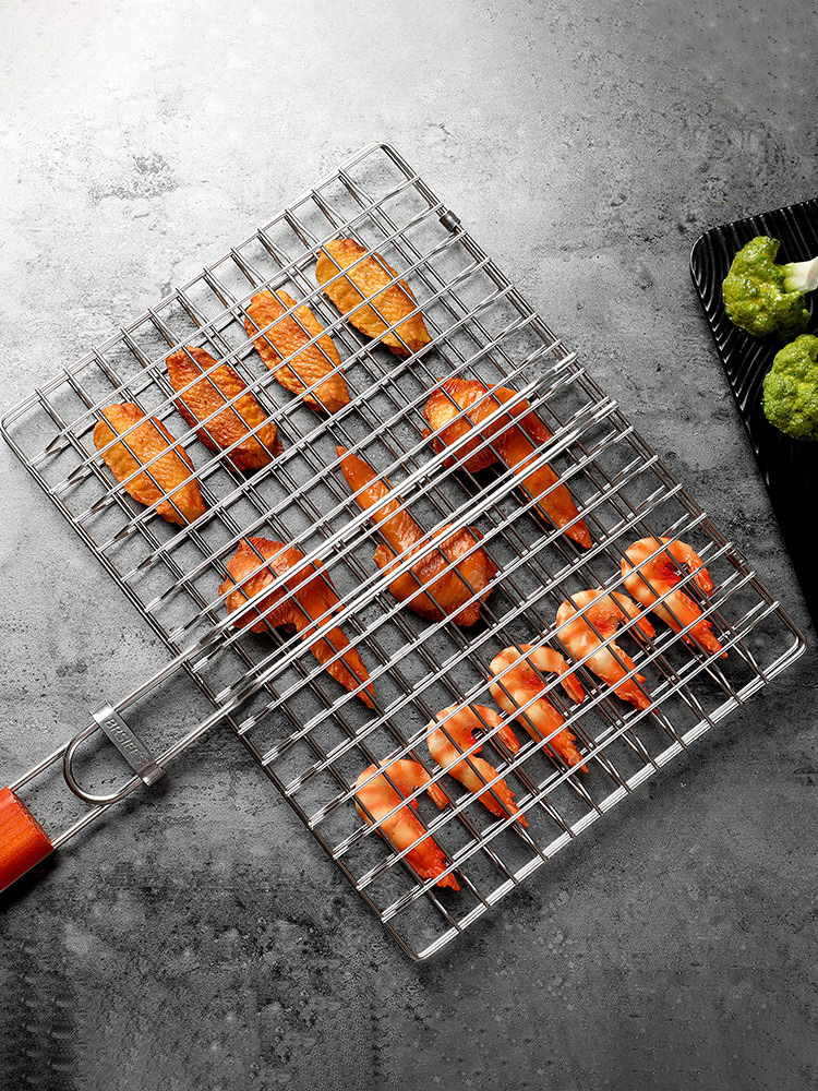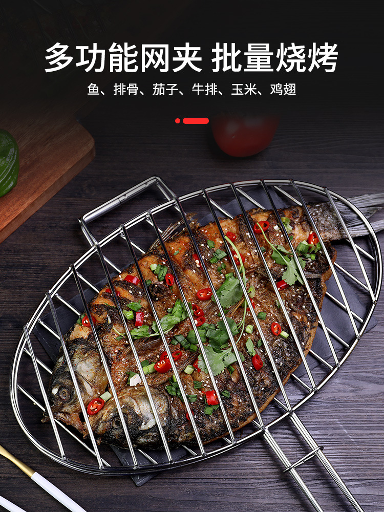 Зажим для гриля из нержавеющей стали, зажим для рыбы на гриле, коммерческая оптовая продажа утолщенной решетки для барбекю, сетчатая ракетка, стойка для овощей для барбекю