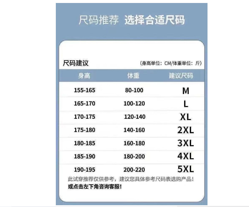 XS; S; M; L; XL; 2XL; 3XL; 4XL; 5XL