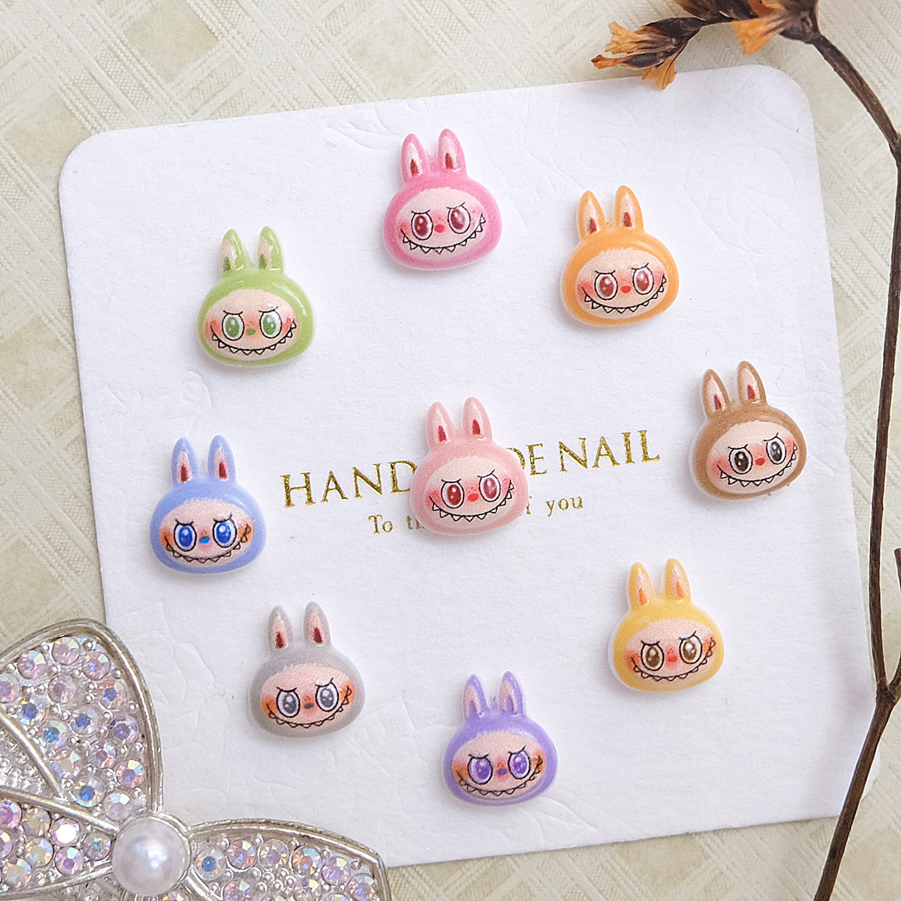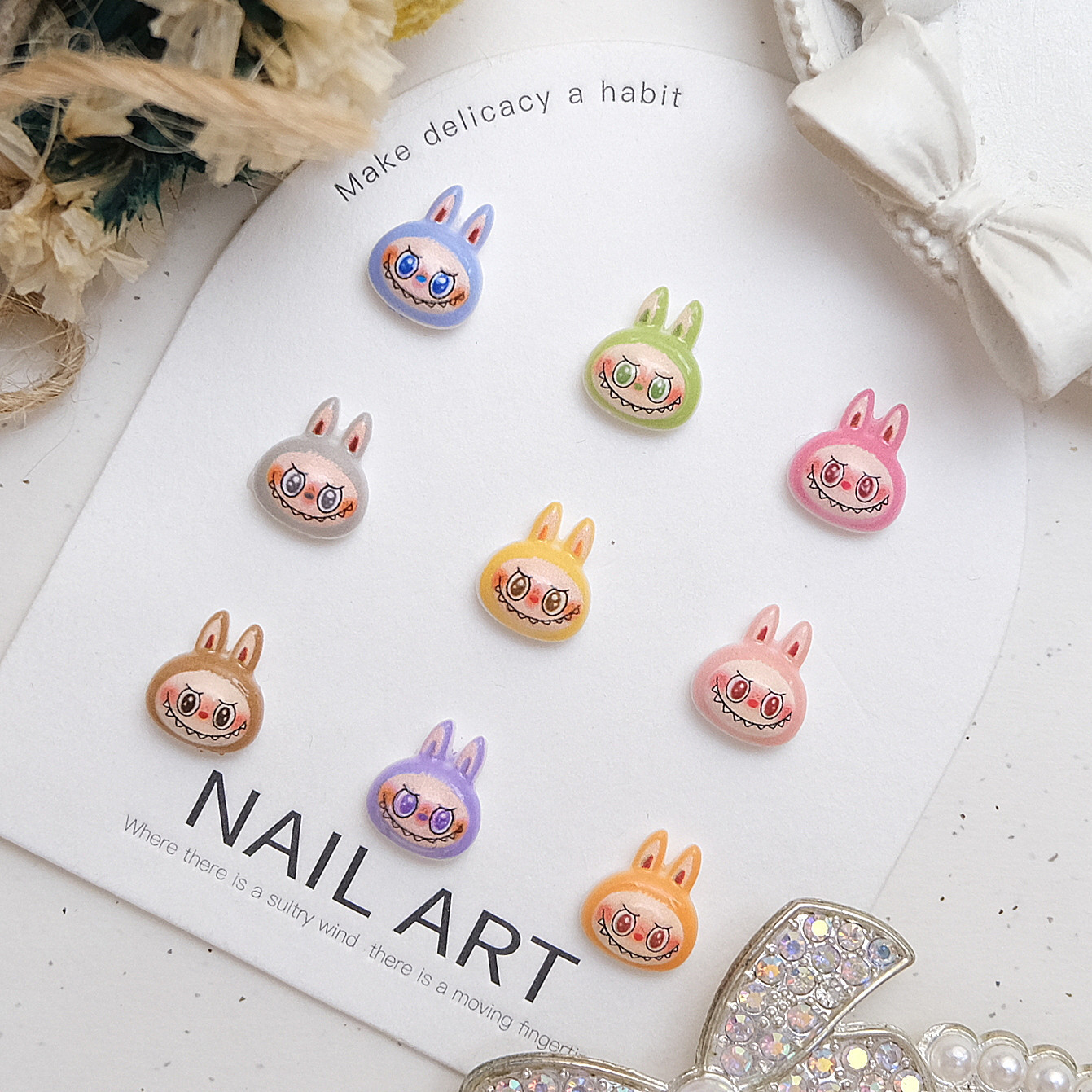 Аксессуары для нейл-арта с мультяшным Лабубу, милые и крутые маленькие монстры, симпатичные большие рты, смола, DIY, носимые аксессуары для ногтей, оптом