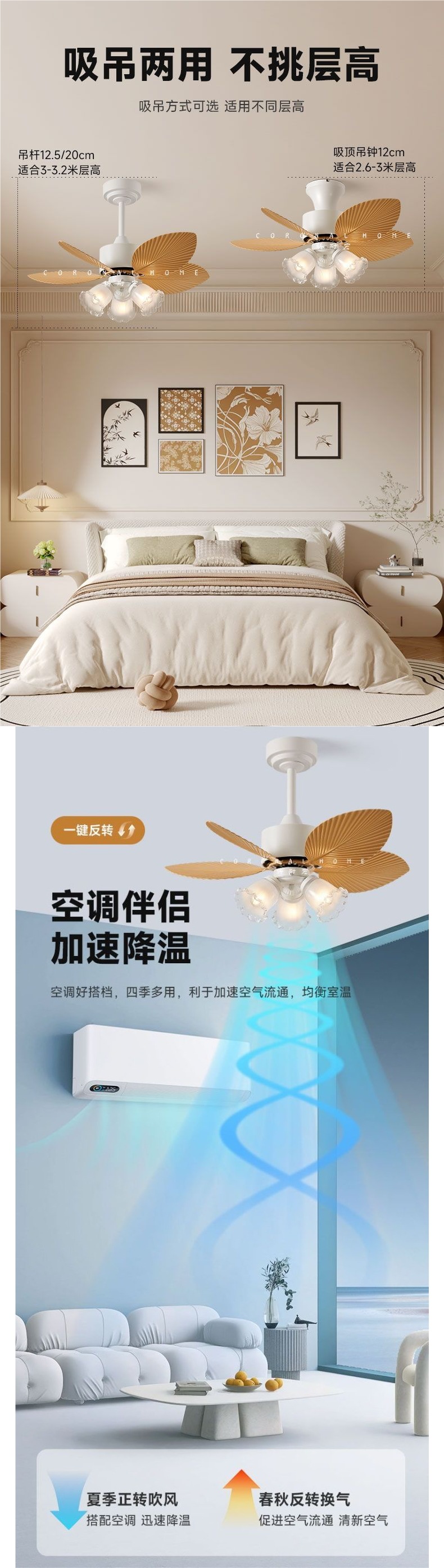 Лампа для французского ресторана, потолочный вентилятор, лампа для ресторана, спальни, кабинета, ретро, американский средневековый кремовый стиль, бесшумный «все в одном»