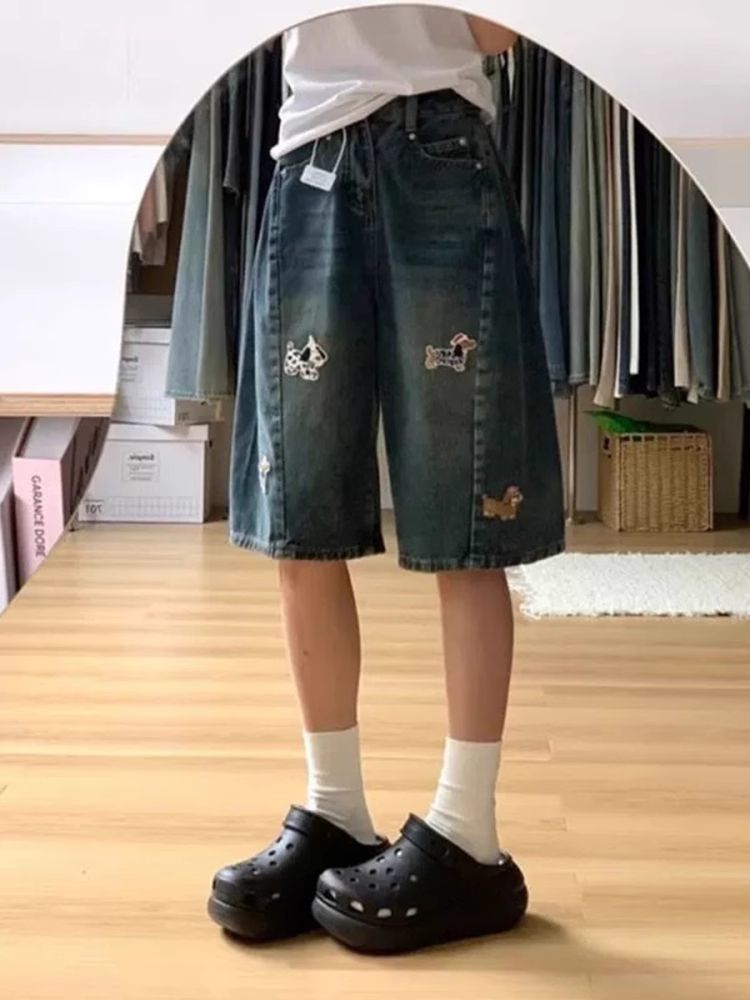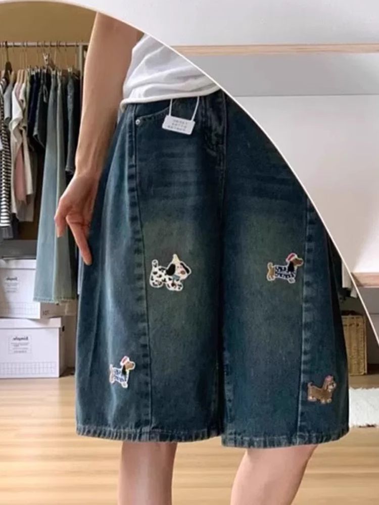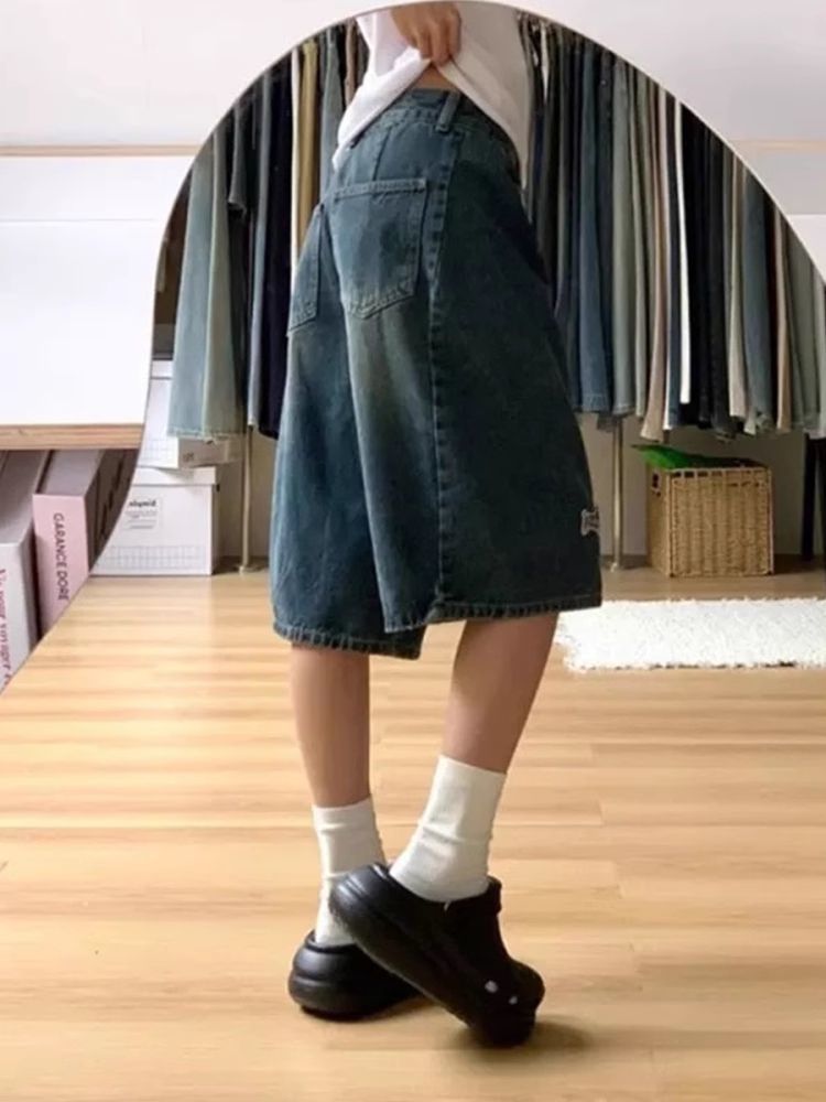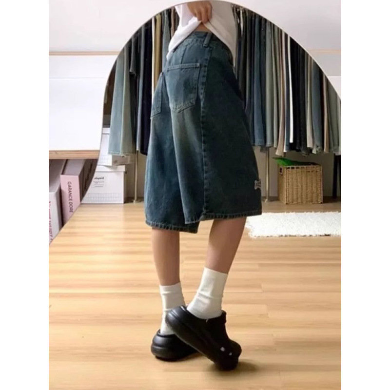 Винтажные женские джинсовые шорты в американском стиле, летние тонкие утягивающие прямые широкие шорты до колена с высокой талией больших размеров.
