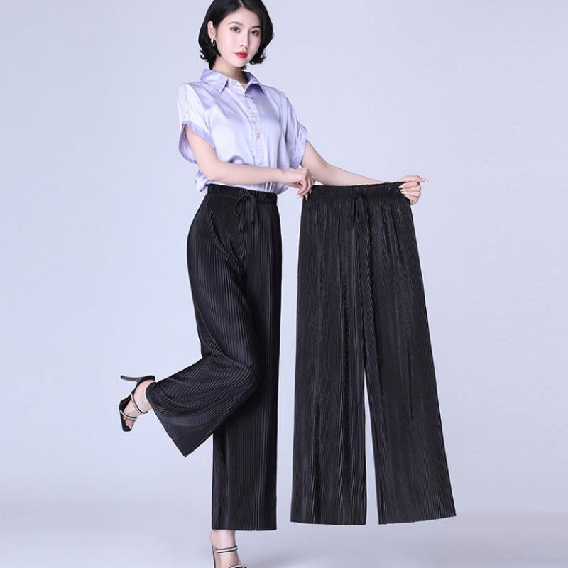 Длинные брюки три четверти/девять четвертей/длинные летние женские тонкие плиссированные широкие брюки, свободные повседневные брюки для похудения, женские