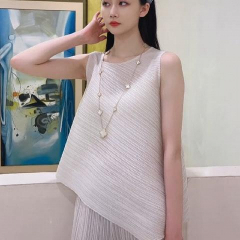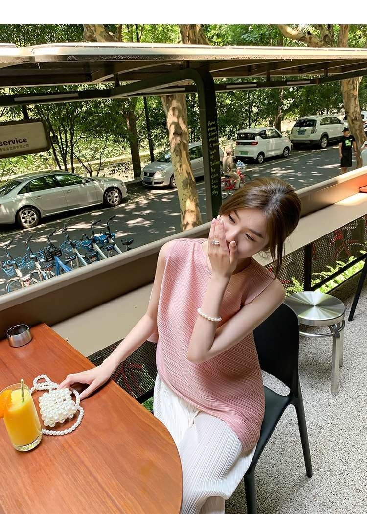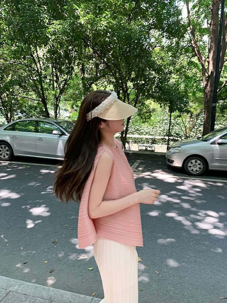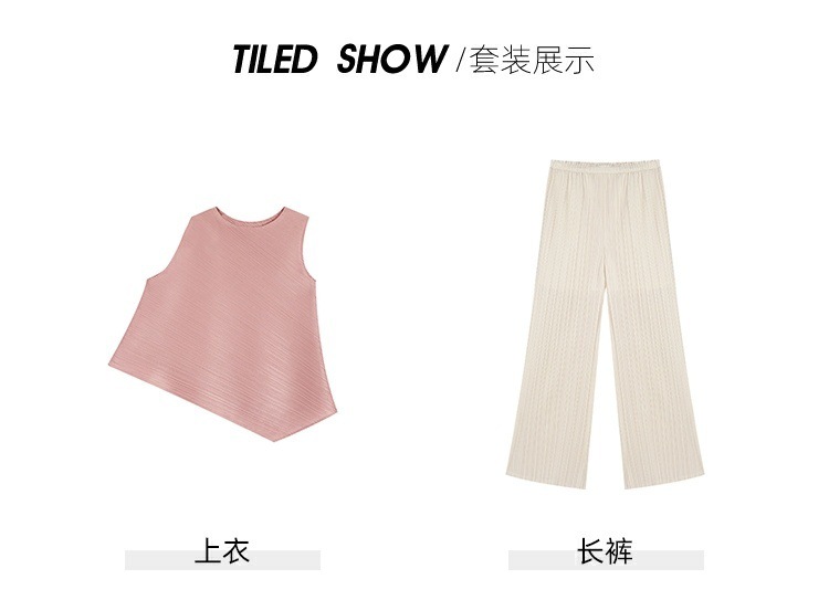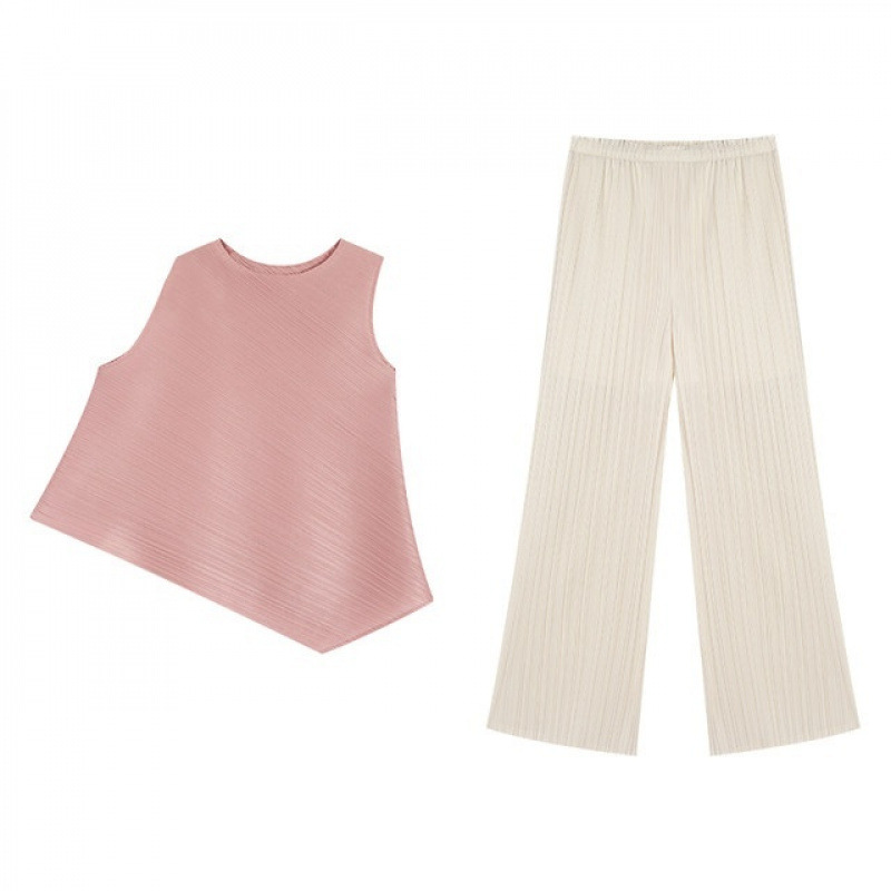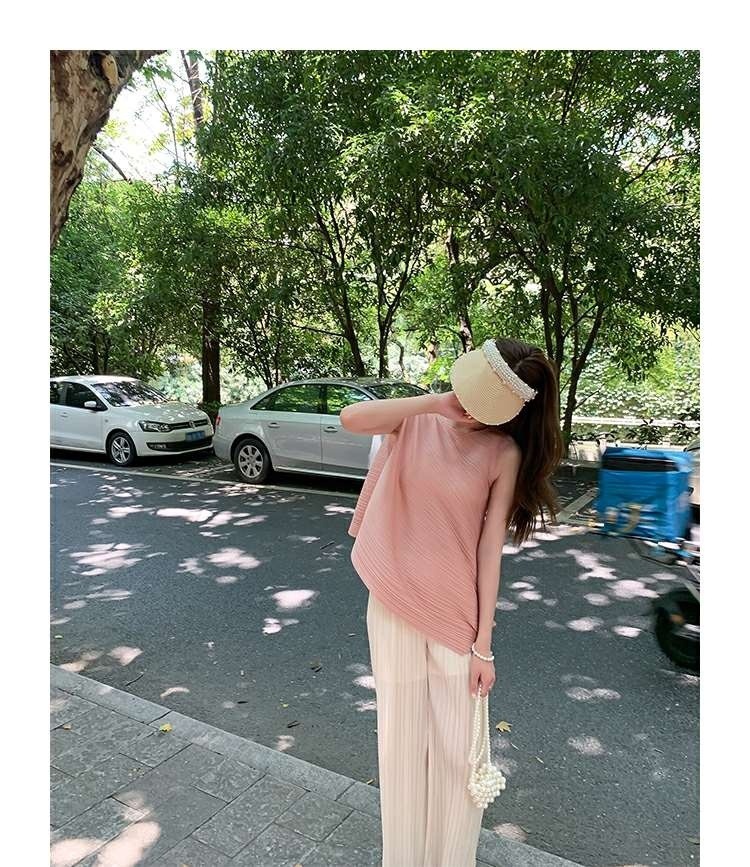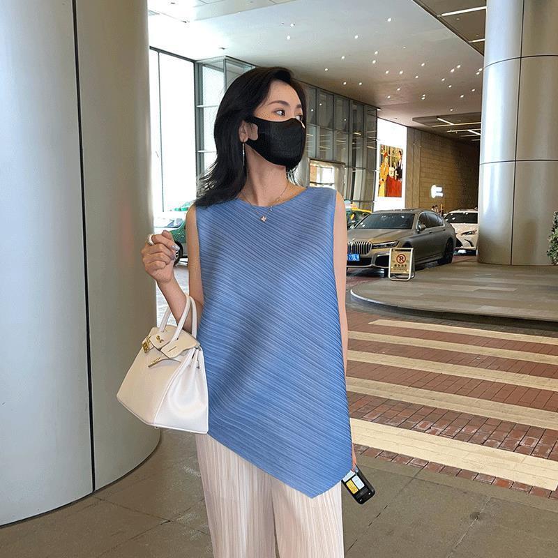 Mengmengjia, плиссированная футболка нестандартного дизайна Miyake, женский летний жилет без рукавов, топ + драпированные широкие брюки, комплект