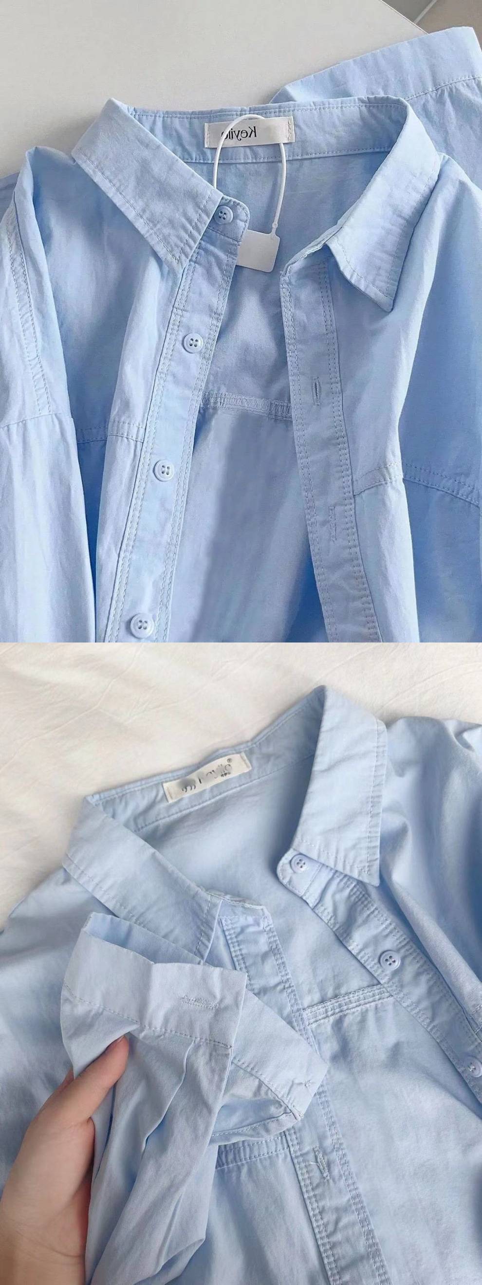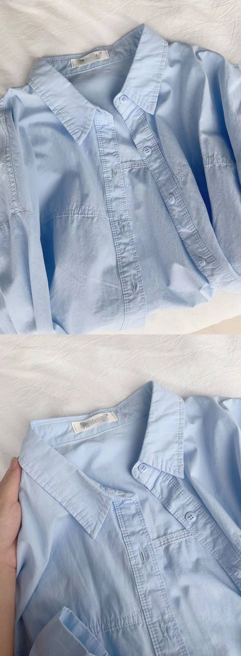 Женская рубашка светло-голубого цвета, длинный рукав, новый стиль 2025 года, шикарная, свободного кроя, очень красивая, как жакет.