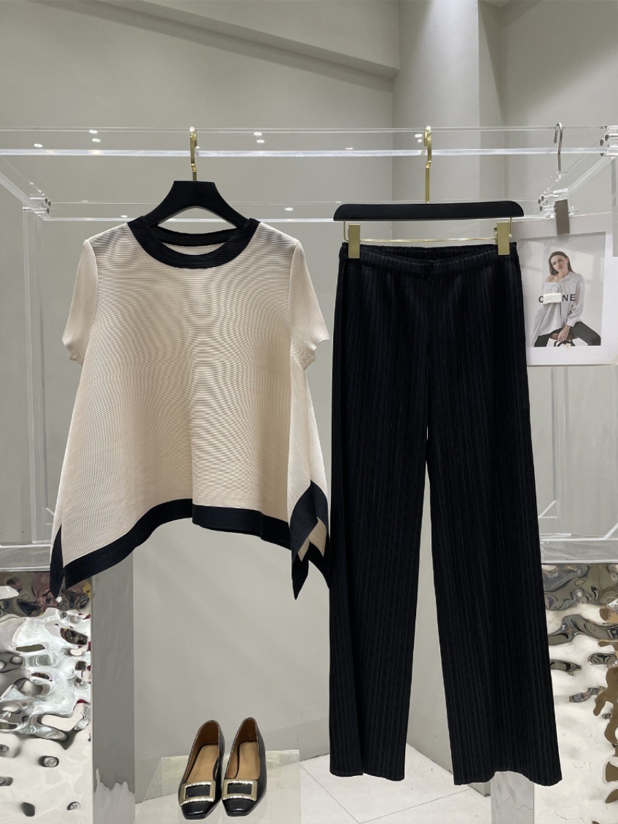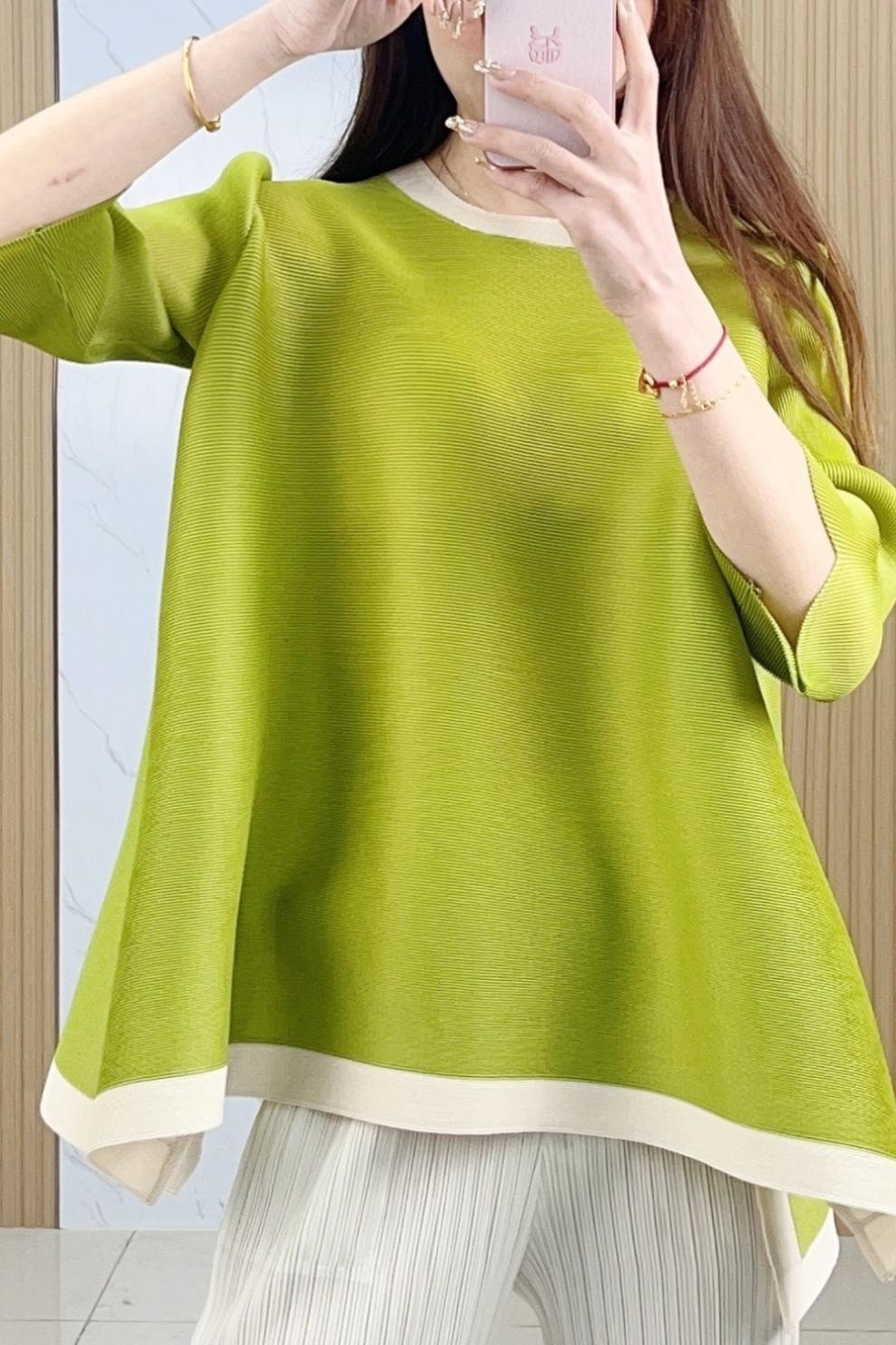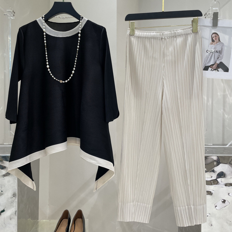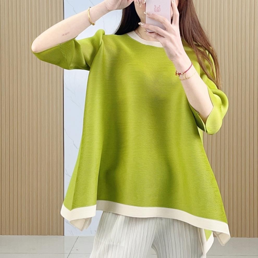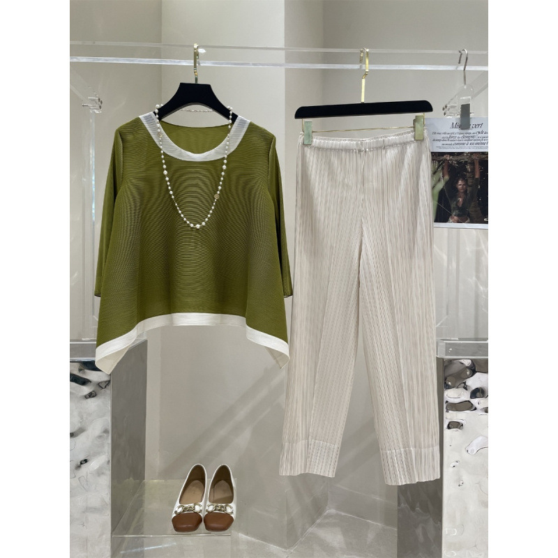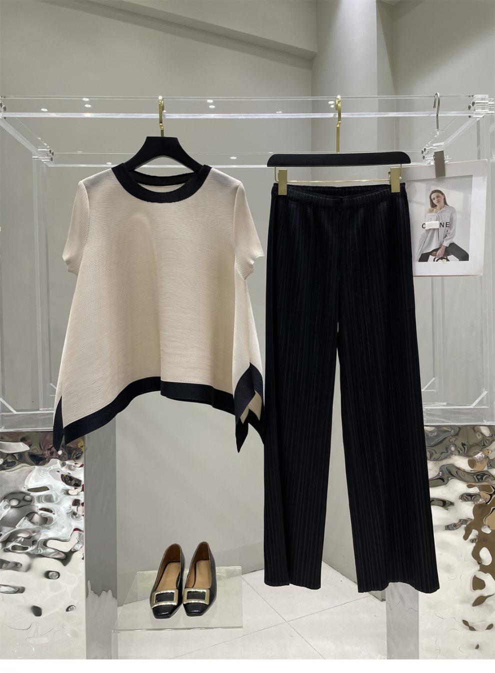 Весна и лето 2025 года, новая плиссированная серия Miyake контрастных цветов, свободный, стройнящий и плотно прилегающий, модный элегантный костюм большого размера на резинке.