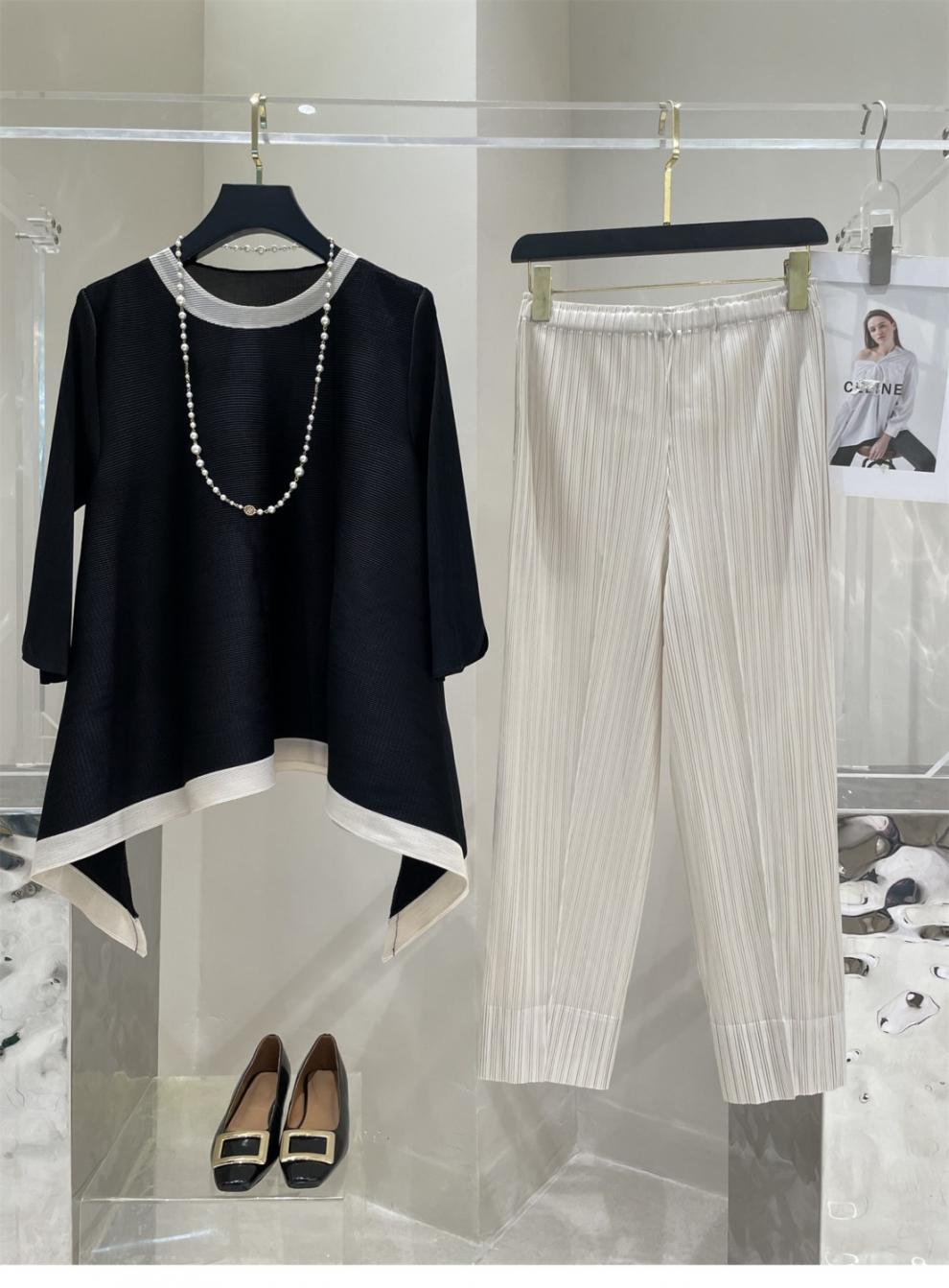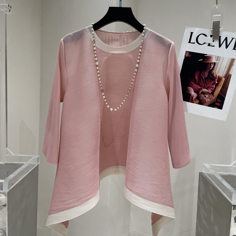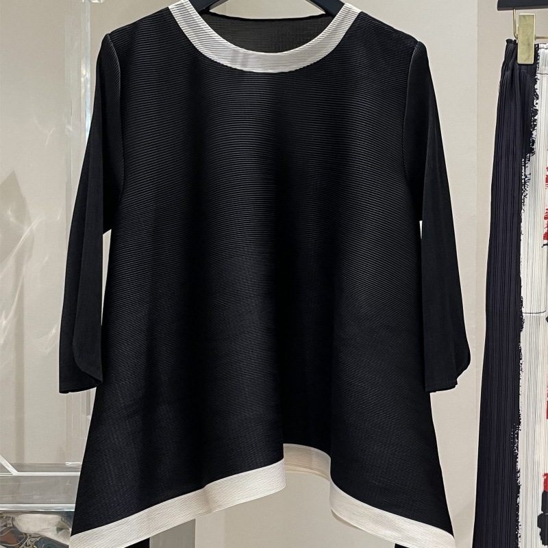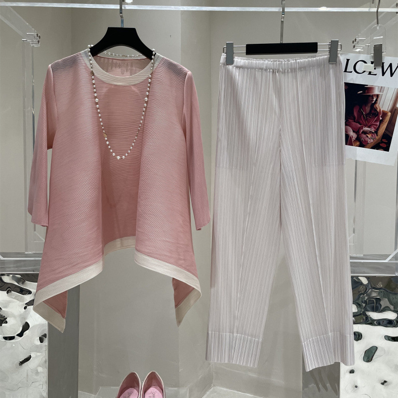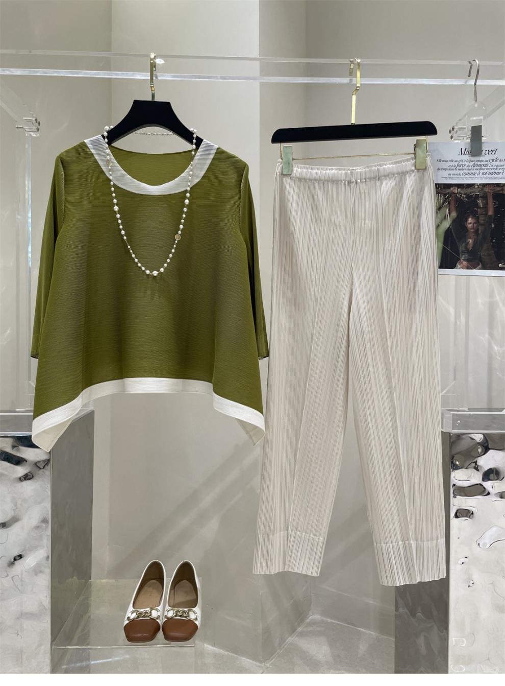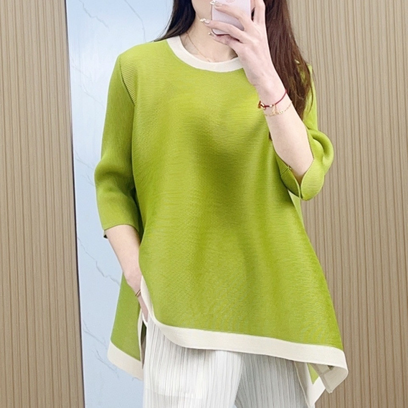 Весна и лето 2025 года, новая плиссированная серия Miyake контрастных цветов, свободный, стройнящий и плотно прилегающий, модный элегантный костюм большого размера на резинке.