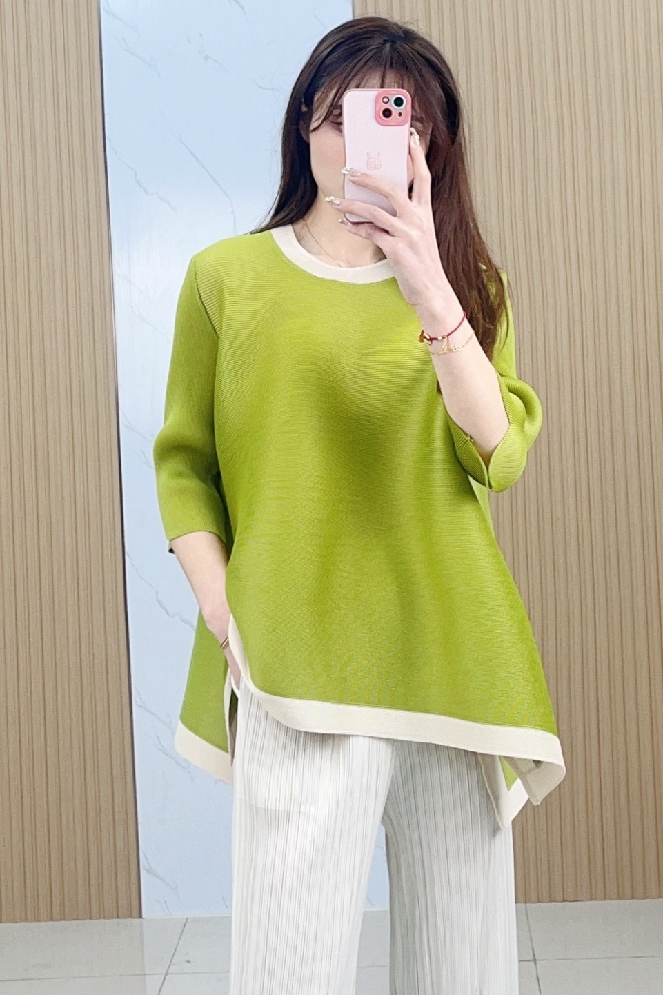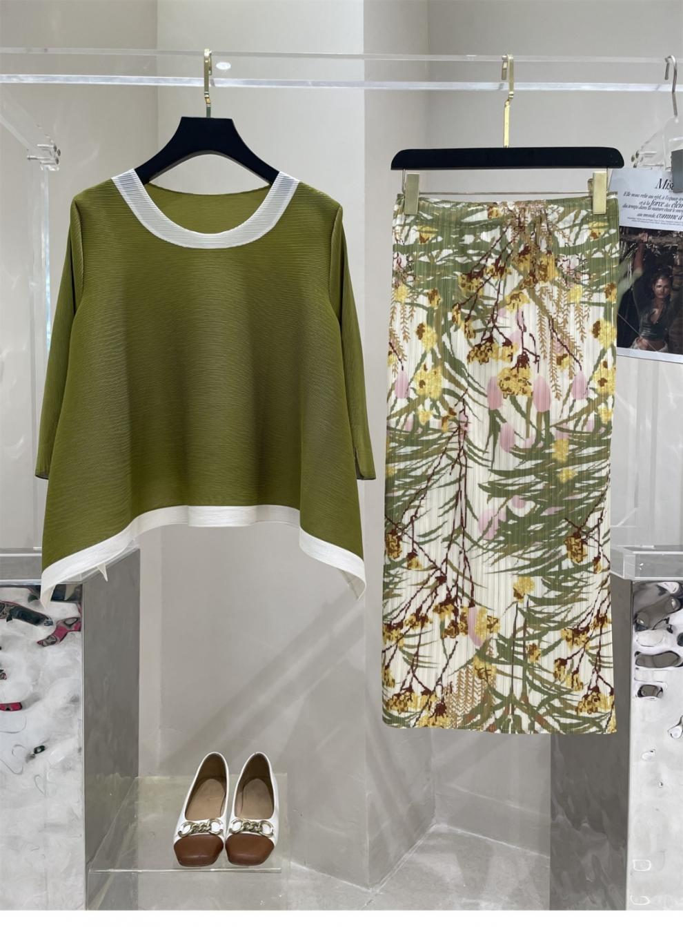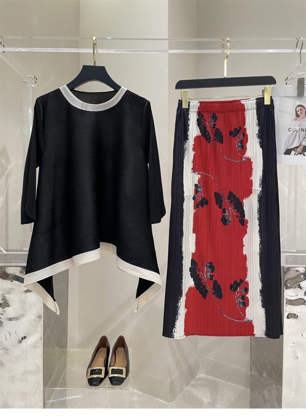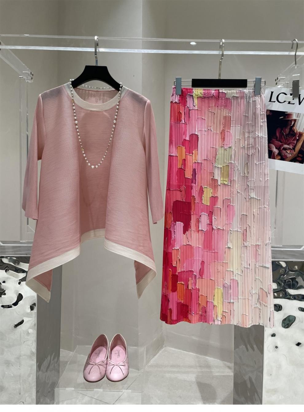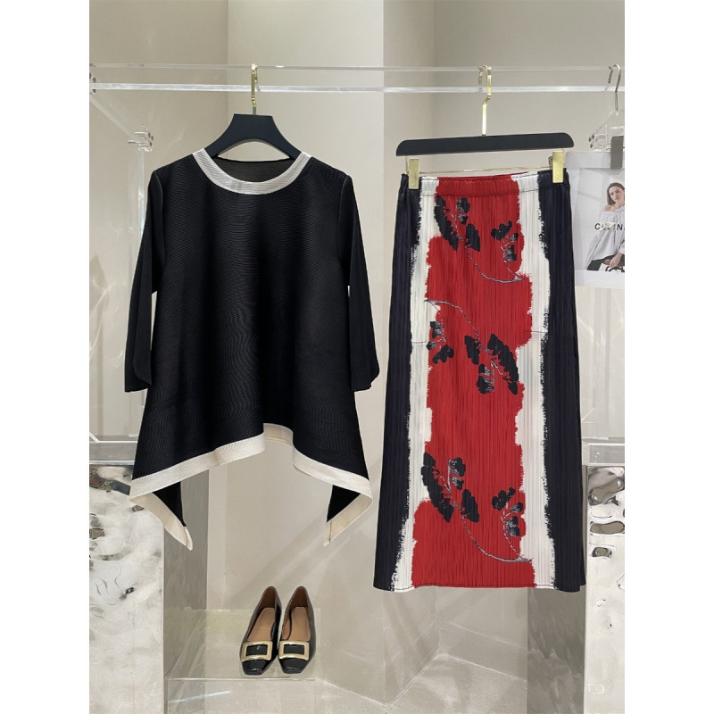 Весна и лето 2025 года, новая плиссированная серия Miyake контрастных цветов, свободный, стройнящий и плотно прилегающий, модный элегантный костюм большого размера на резинке.