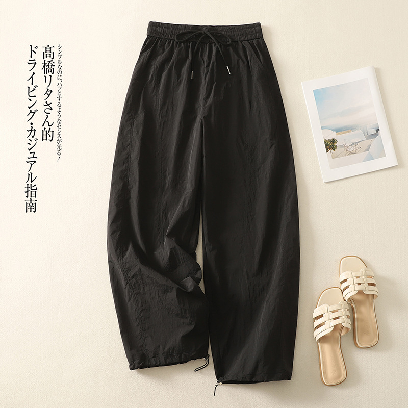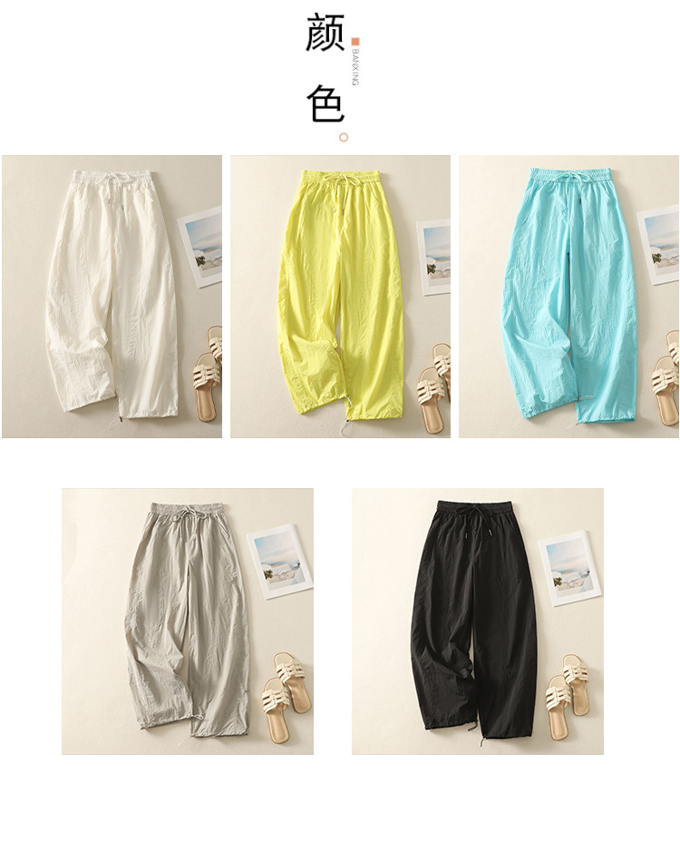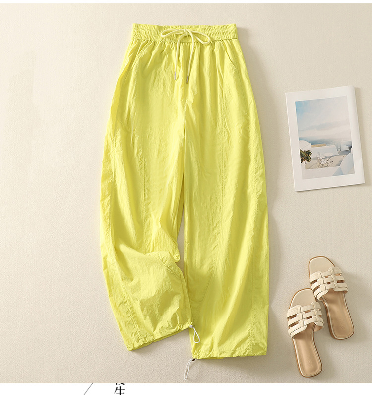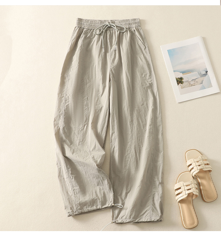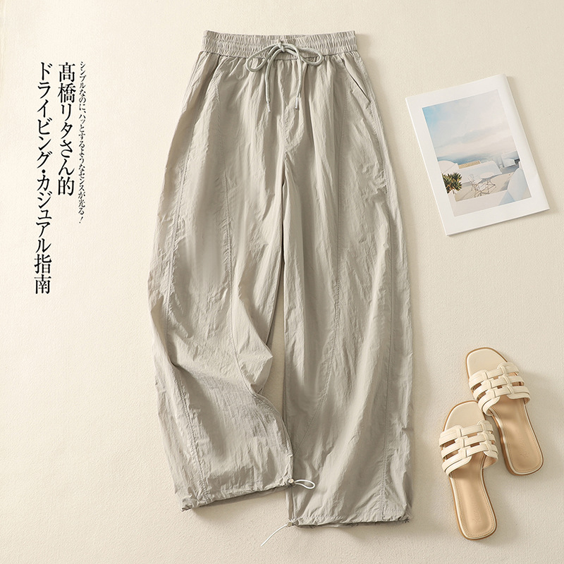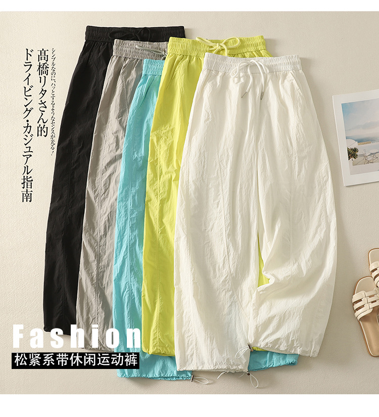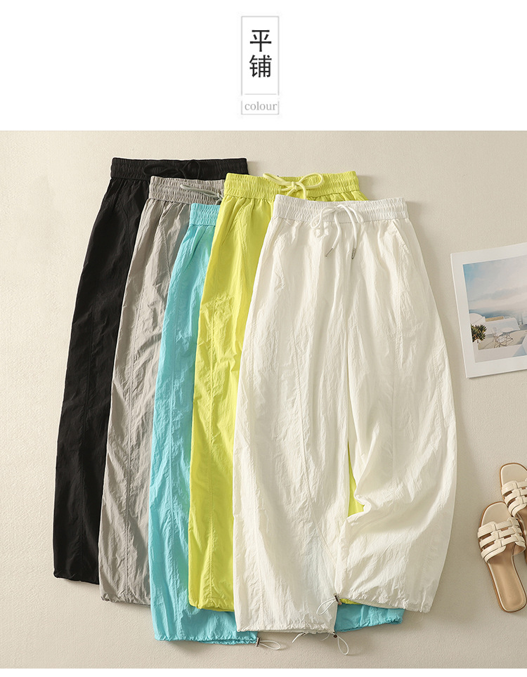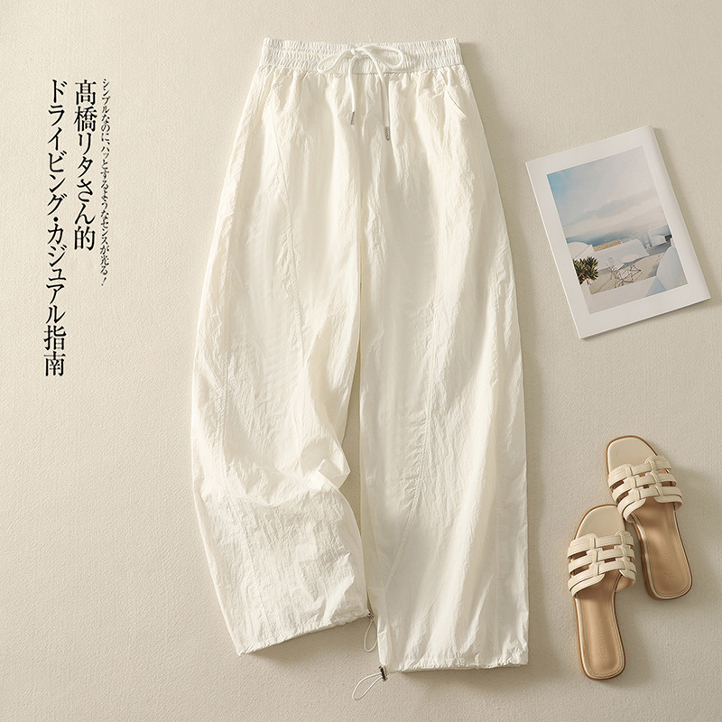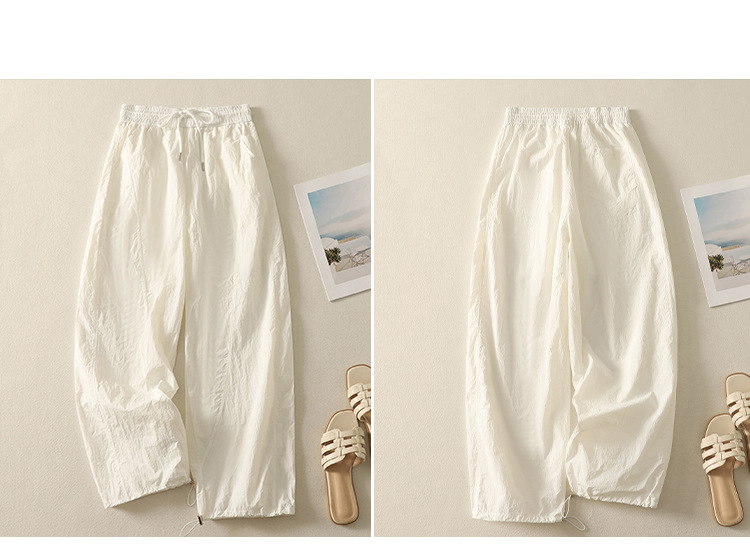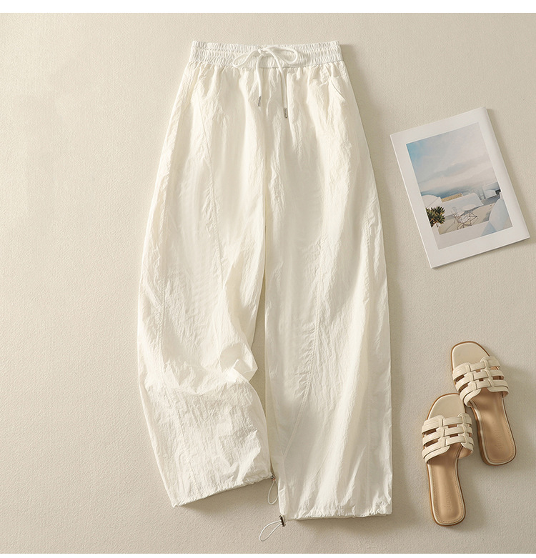 Реальный снимок новых стильных, освежающих и универсальных литературных повседневных свободных утягивающих воздушных брюк 2025 года.