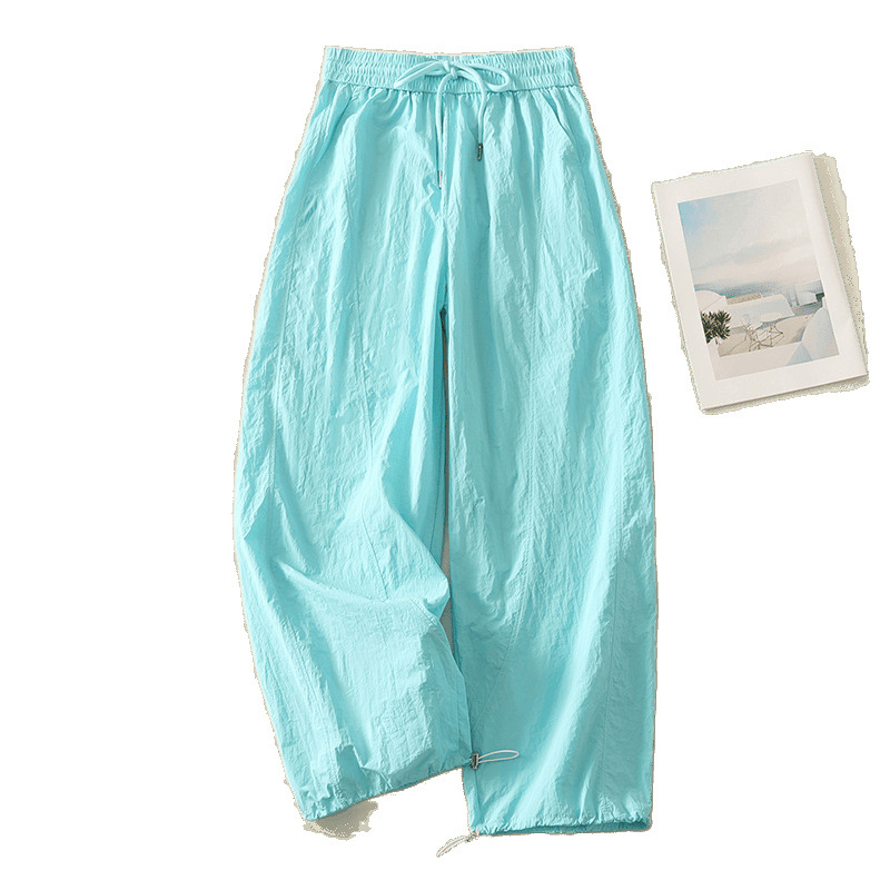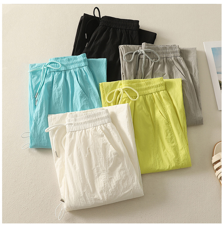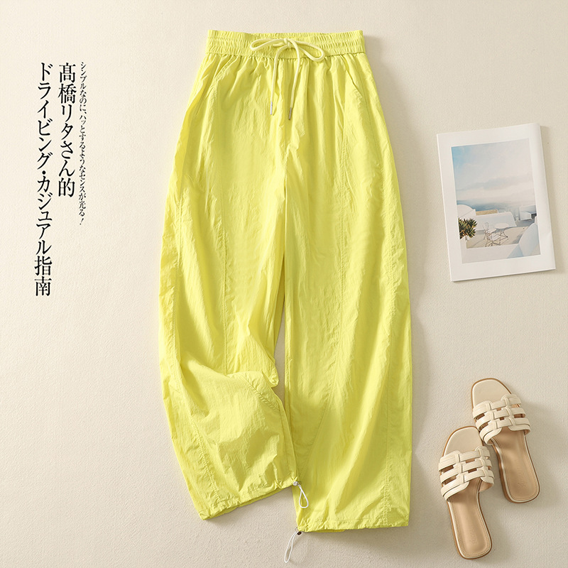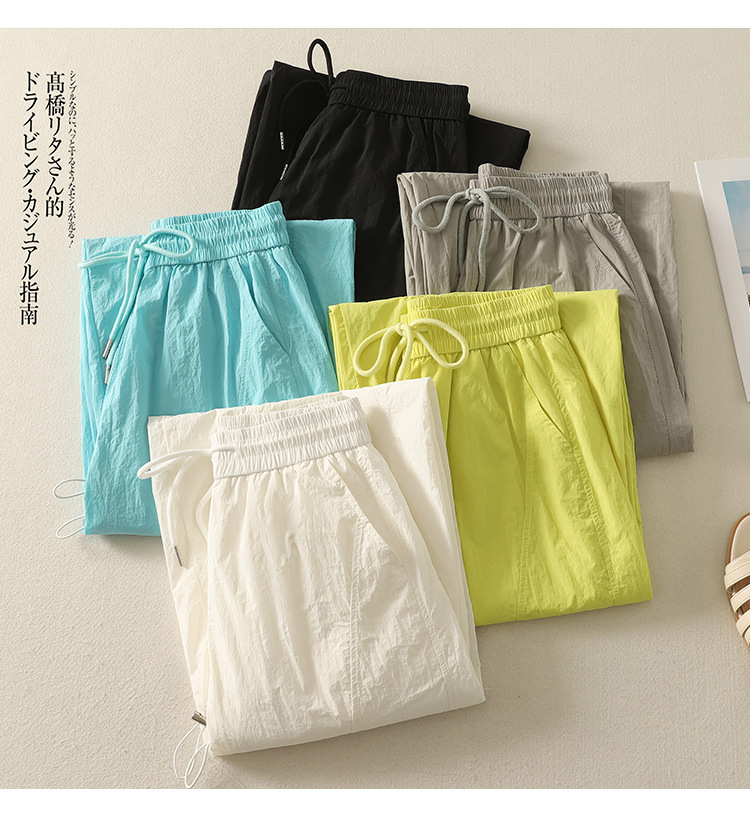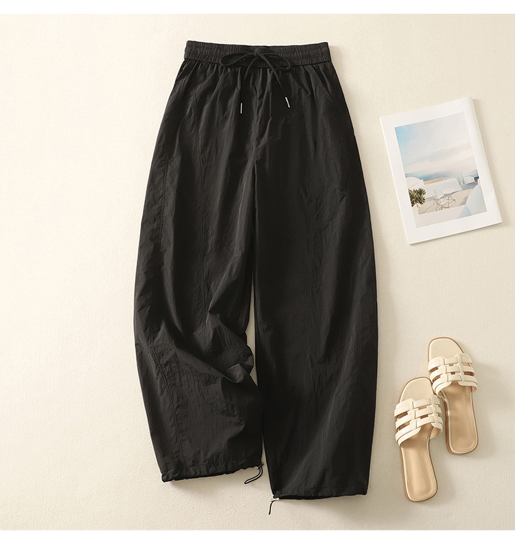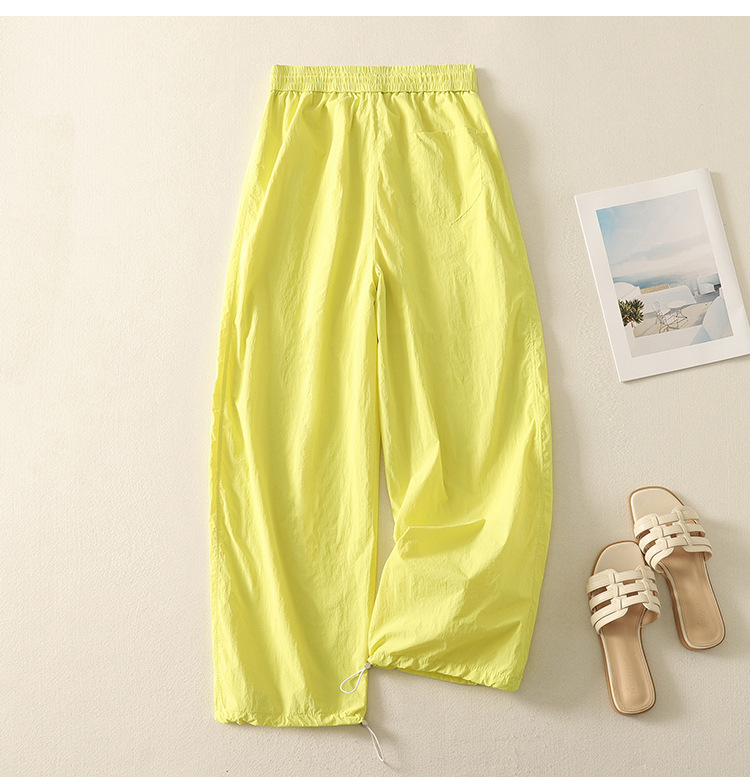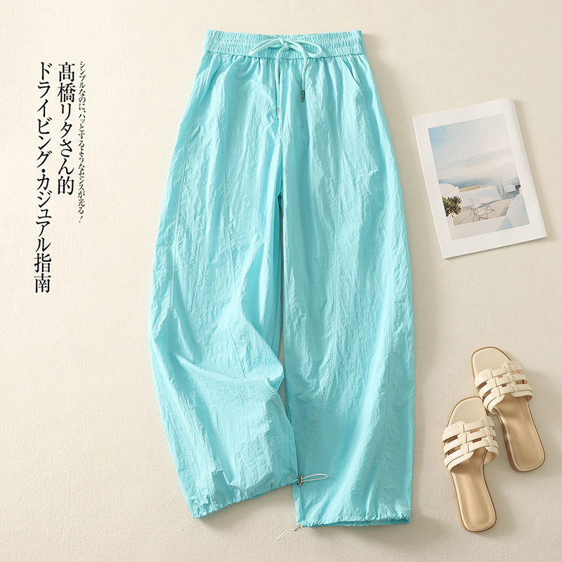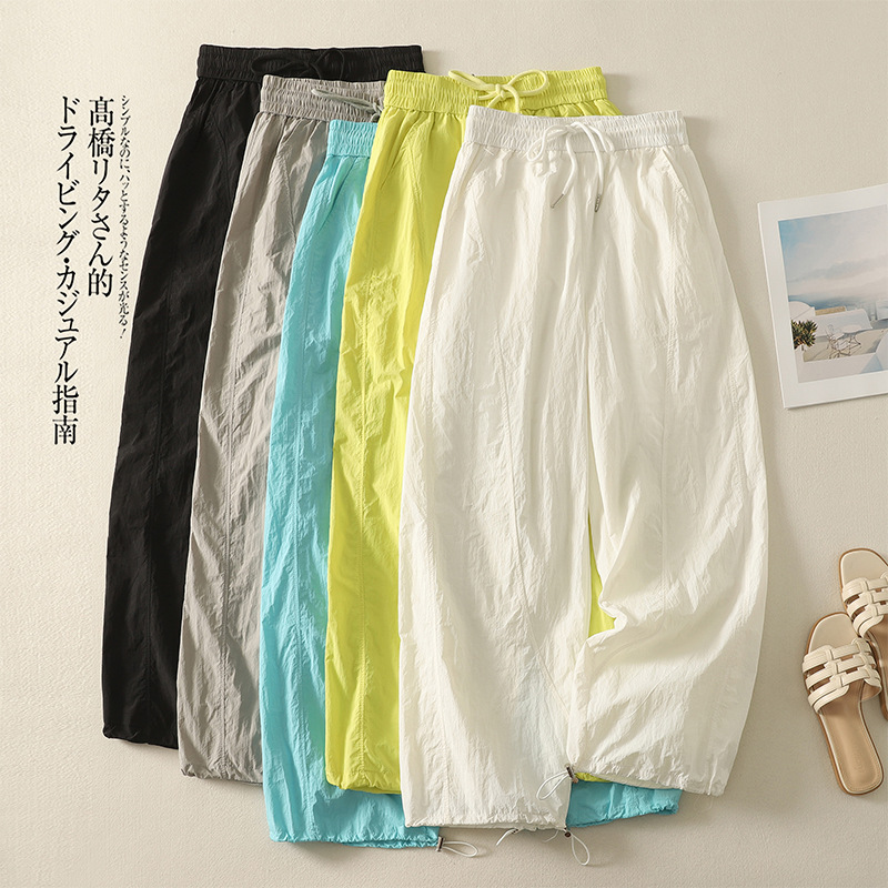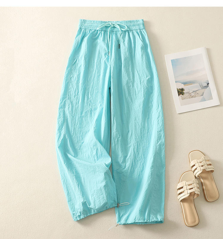Реальный снимок новых стильных, освежающих и универсальных литературных повседневных свободных утягивающих воздушных брюк 2025 года.