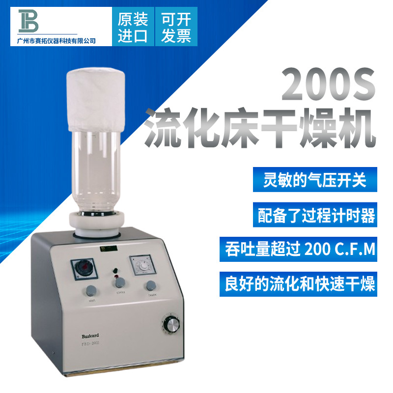 Британский сушильный аппарат с флюидизированной кровлей Burkard 200S с радиальной турбиной, производительность 200 куб. футов в минуту