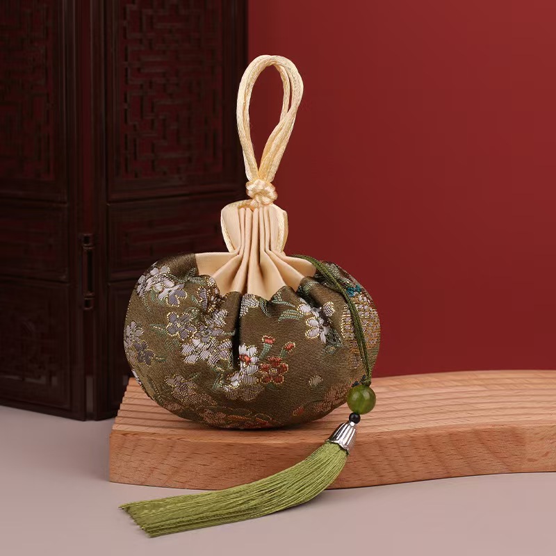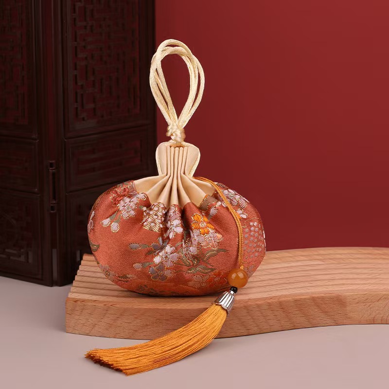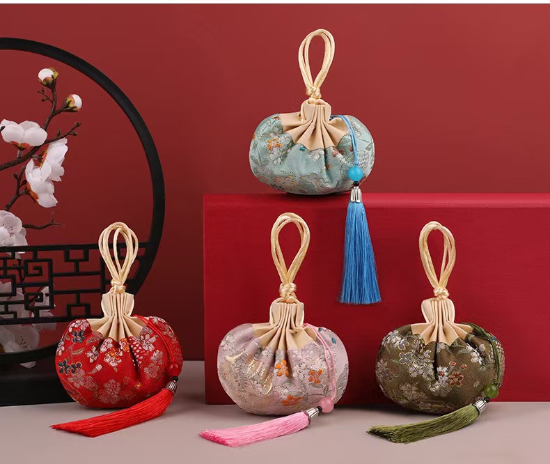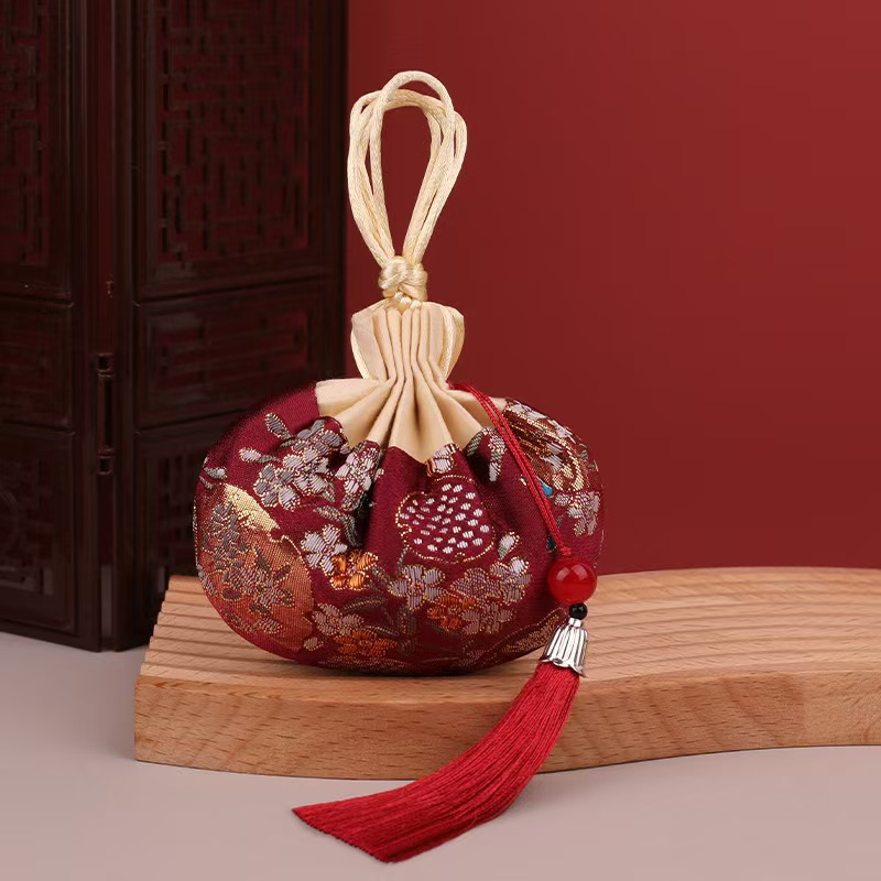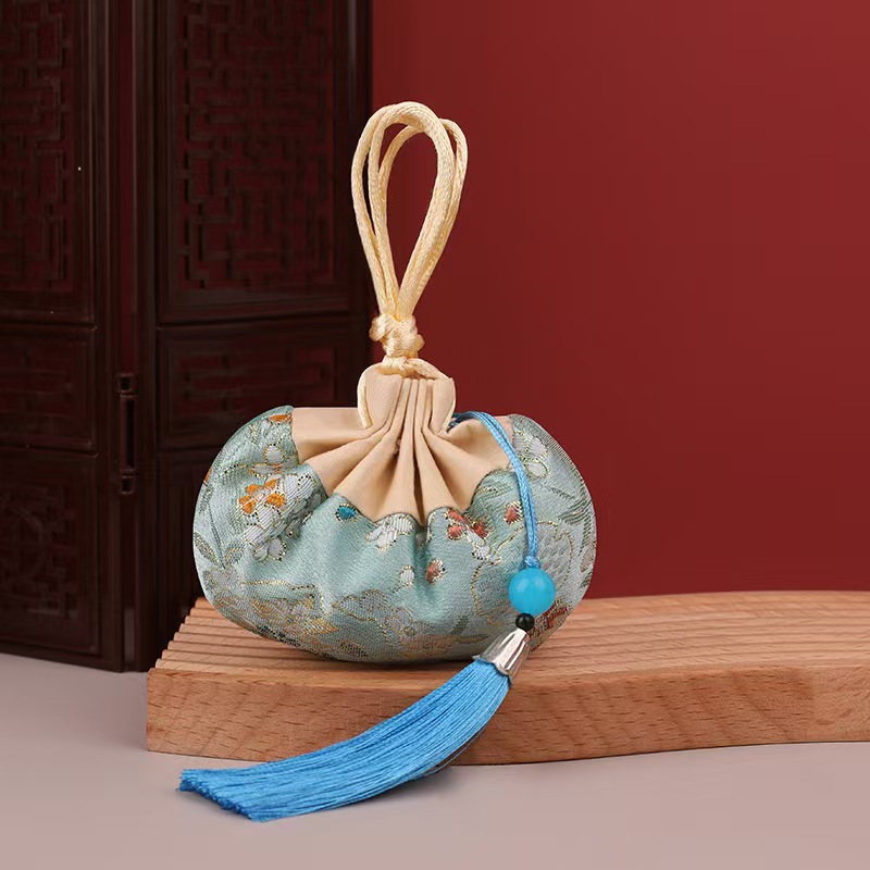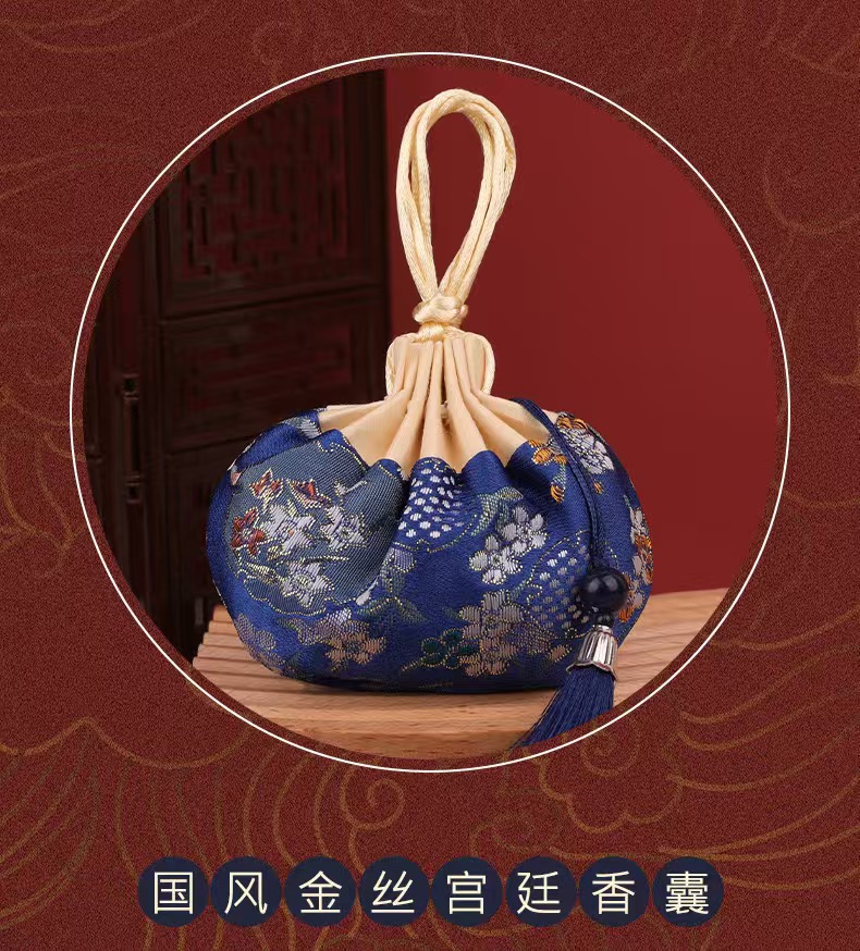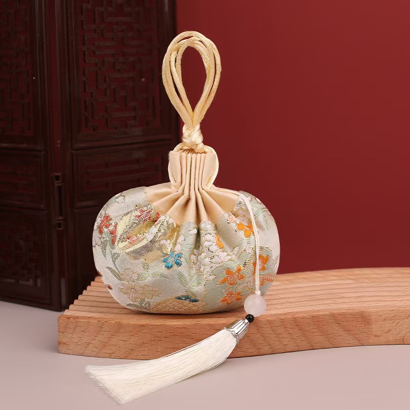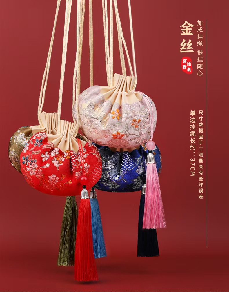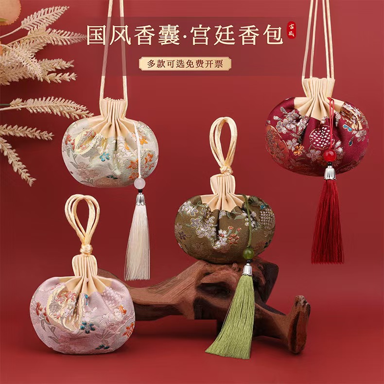 Ароматическая сумка Phoenix Tail Palace с вышивкой и кисточкой для подвешивания на шею, аксессуар Hanfu, сумка с полынью для автомобиля, подарочный ароматический пакетик из парчового атласа.