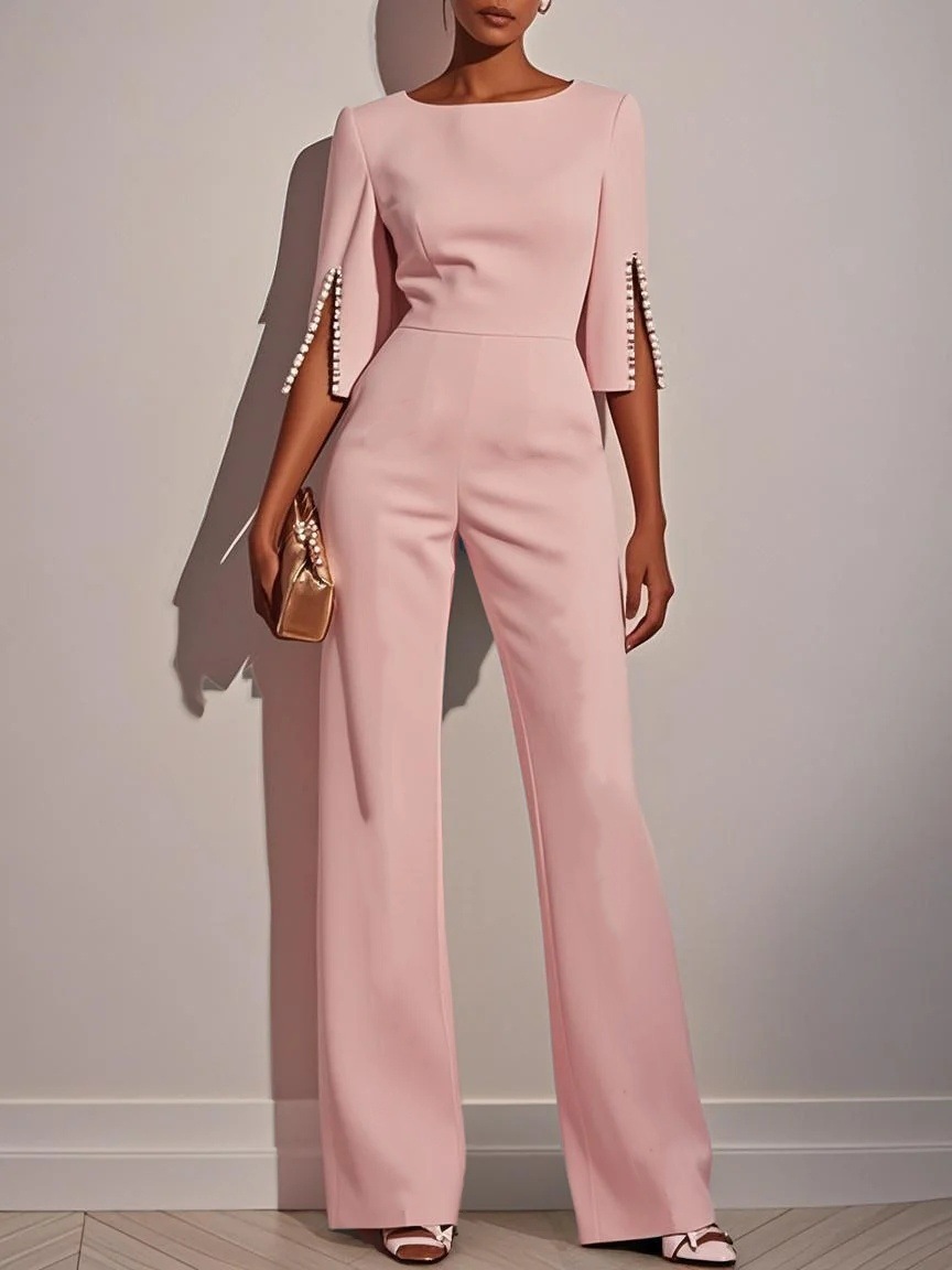 Женский летний комбинезон 2025 года, свободного кроя, с бисерным декором, однотонный, в стиле Amazon.