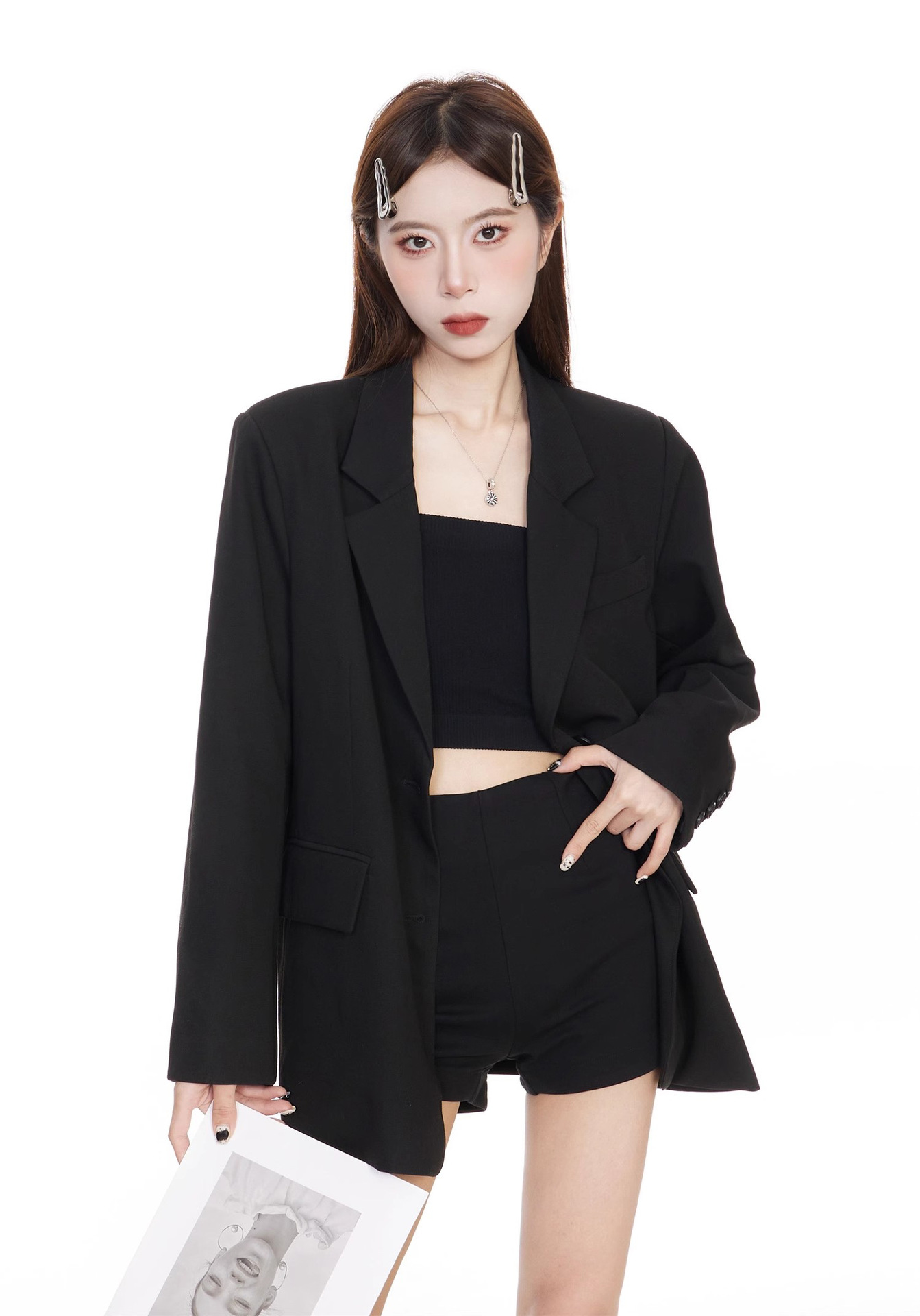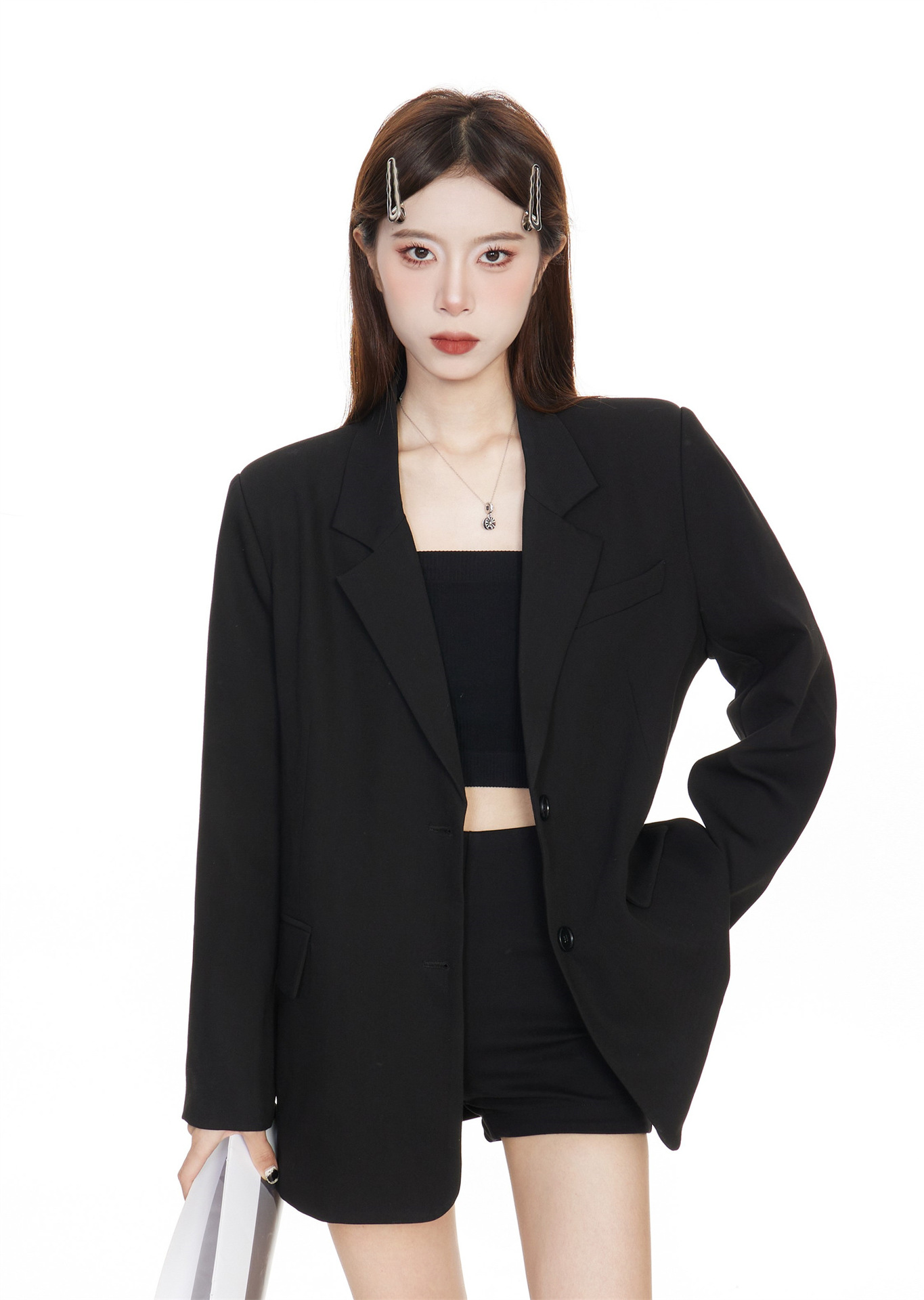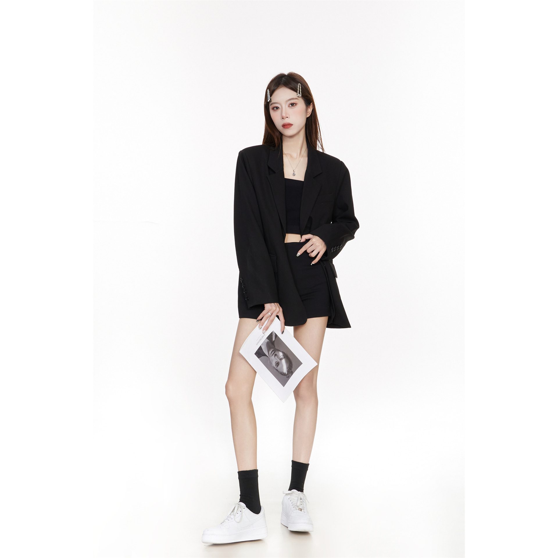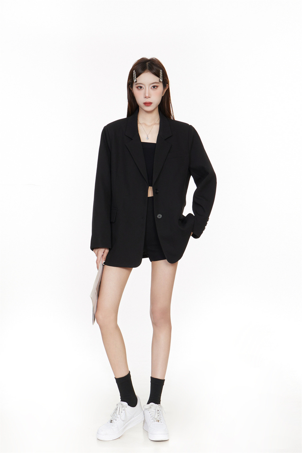 Черный блейзер для женщин, корейский стиль, повседневный дизайн, 2025 высококлассный, элегантный, свободный, стройнящий, костюм для миниатюрных.