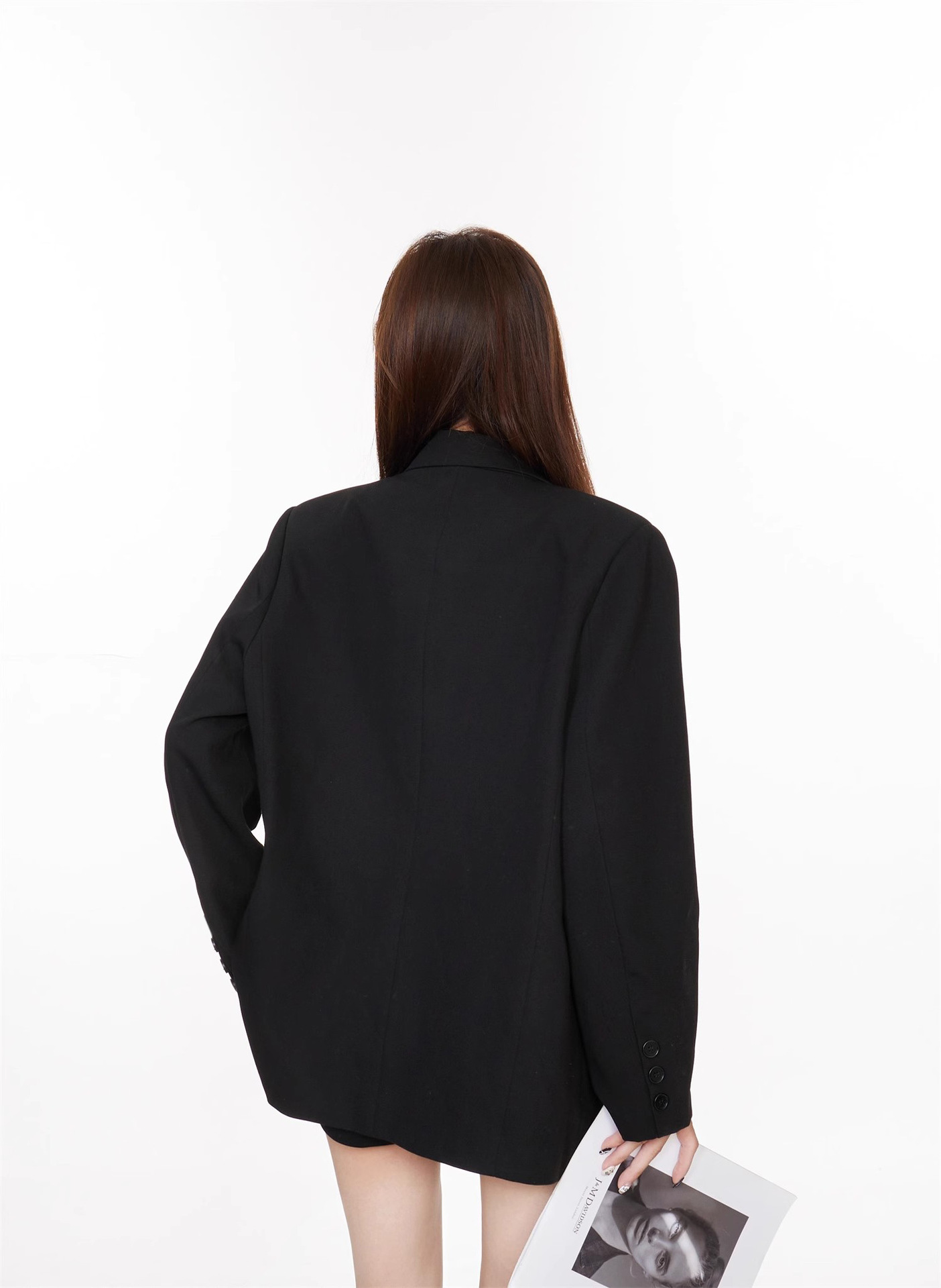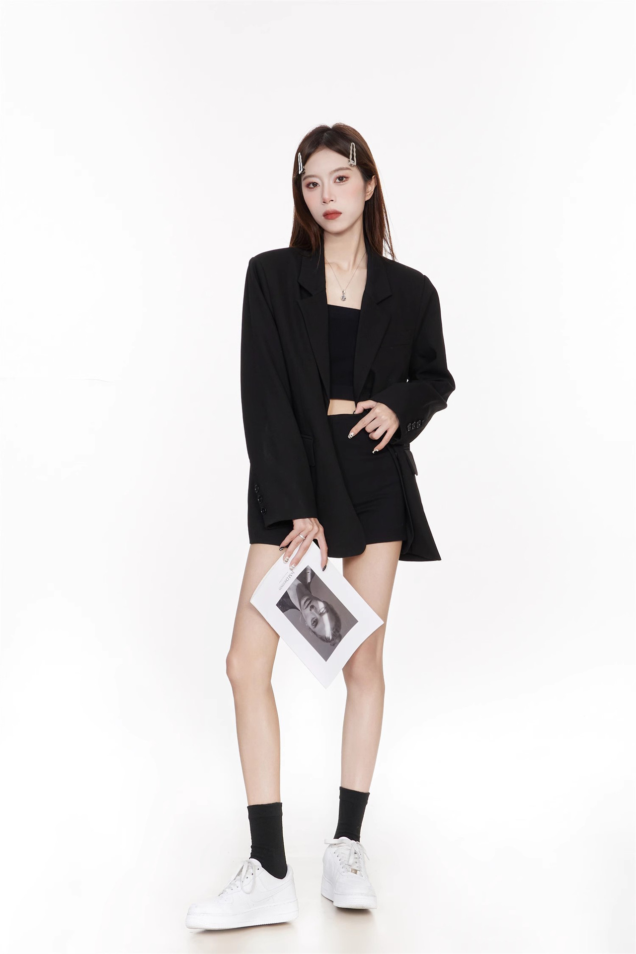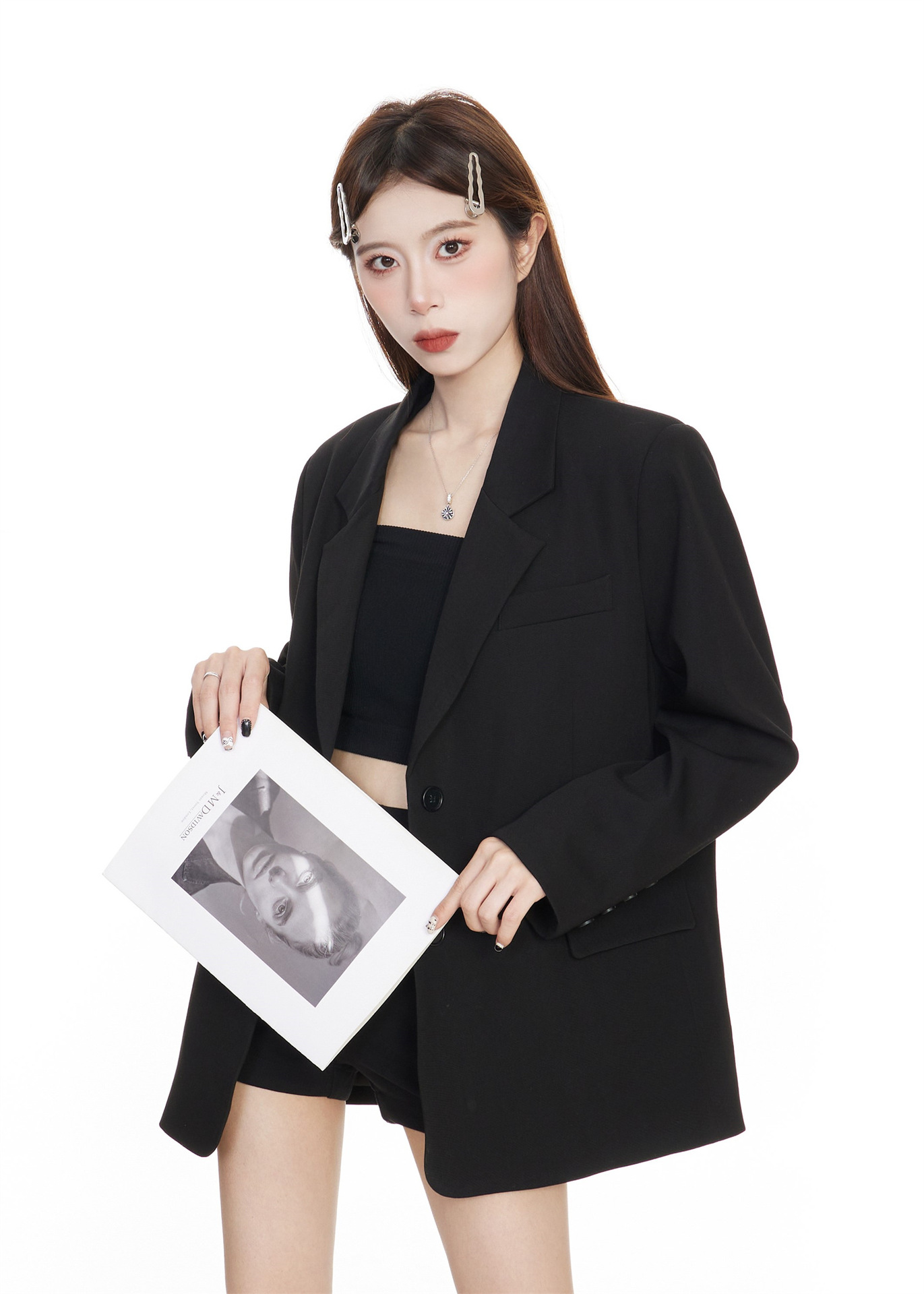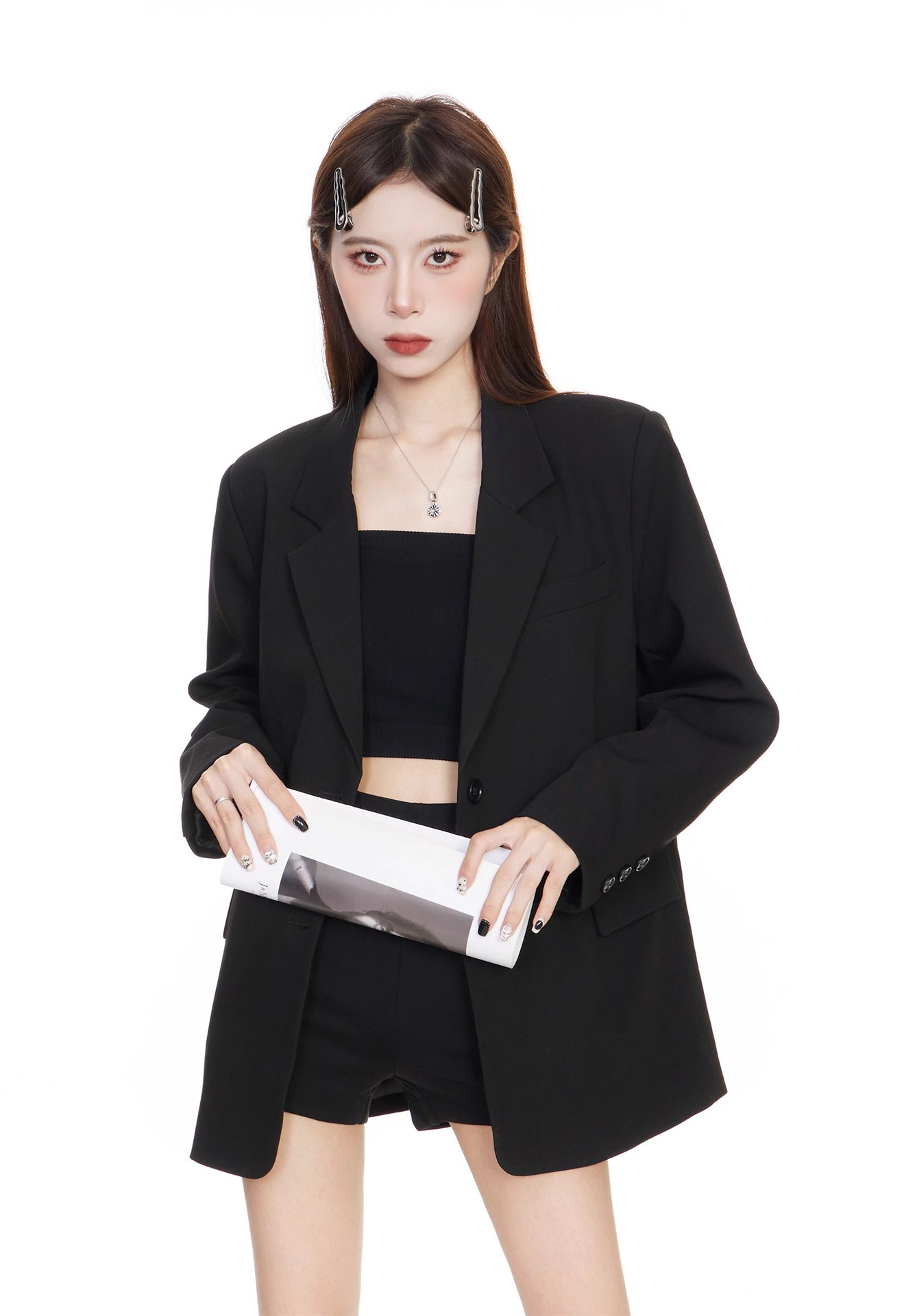 Черный блейзер для женщин, корейский стиль, повседневный дизайн, 2025 высококлассный, элегантный, свободный, стройнящий, костюм для миниатюрных.