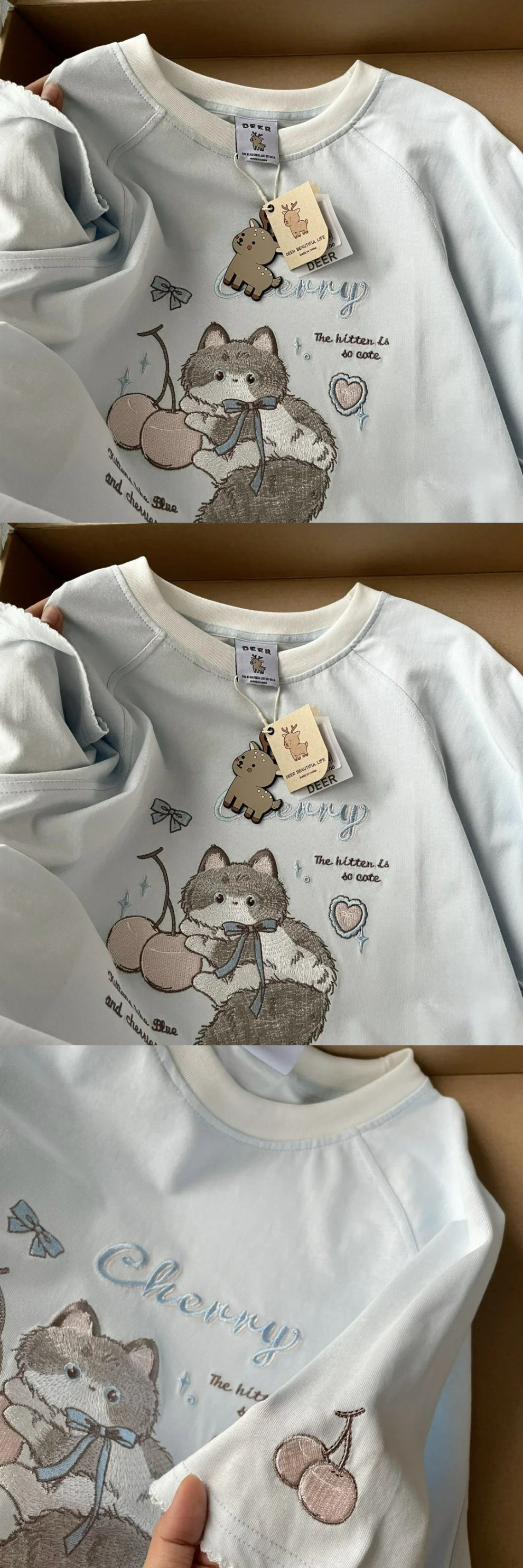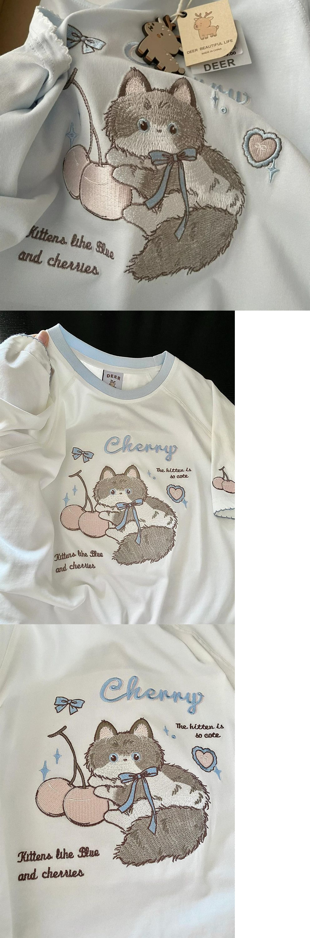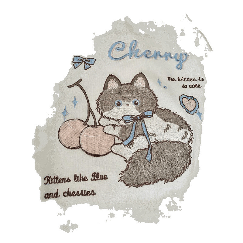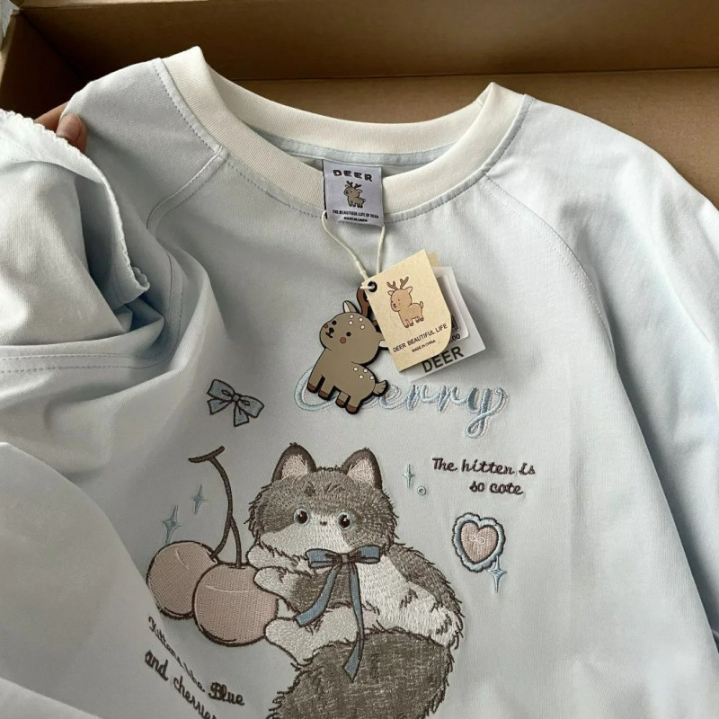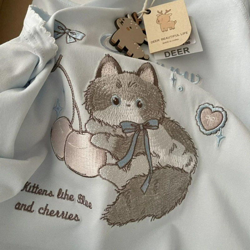 Рубашка с короткими рукавами из чистого хлопка/хлопка/хлопка/хлопка/хлопка/хлопка/хлопка с вышивкой котенка для женщин, летняя новая милая и милая кошка